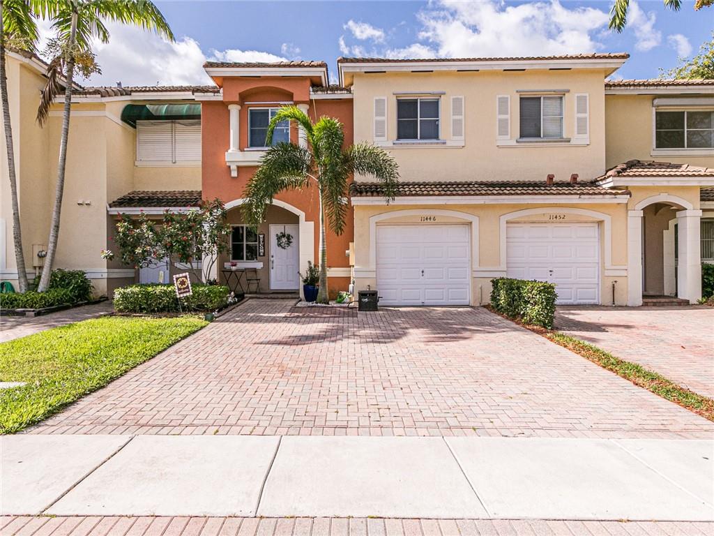 Don’t miss out on this gorgeous move-in-ready fee-simple townhome! This home has 3 beds 2.5 baths, a family room, and 1 car garage along with the most amazing, paved backyard and gazebo. The main level has wood plank tiles throughout, and the whole house is beautifully painted, with no popcorn. Newer Maytag SS appliances in the kitchen. Generous sized bedrooms, vaulted ceilings in the master bedroom Master bathroom has a roman tub, a separate shower with dual sinks, and a walk-in closet. New Maytag washer/dryer. Every electrical outlet is childproof, Decora light switches throughout. Property is located close to the Sawgrass Expwy, Sawgrass Mall, and great restaurants and more! Location, location, location Maint includes ADT alarm, pressure washing once a year, landscaping, and amenities.