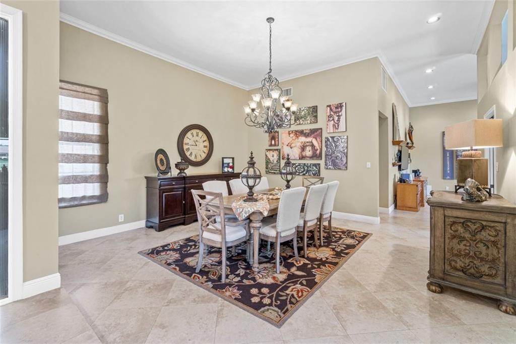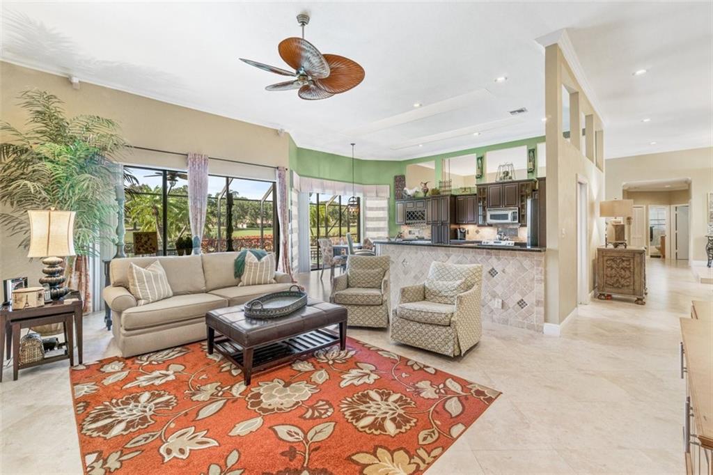 Simply a beautiful home sited on a breathtaking Waterfront/Golf Course Lot! Gorgeous Wide & Long Views of the waterways and the golf course beyond take center stage throughout the home via walls of windows & glass doors. The large & open family room/kitchen area is perfect for enjoying Florida's indoor/outdoor living/entertaining. The luxurious primary suite is impressive with a sitting area, and a spa bathroom with his/her vanities, marble floors, and a separate tub & shower. The backyard is glorious with a pool, large screened porch, summer kitchen, expansive backyard, and peaceful views of the water and golf course. The golf course was recently renovated and updated. Luxurious resort-style living awaits you with this fabulous Eagle Trace home. Some lighting maybe exclued