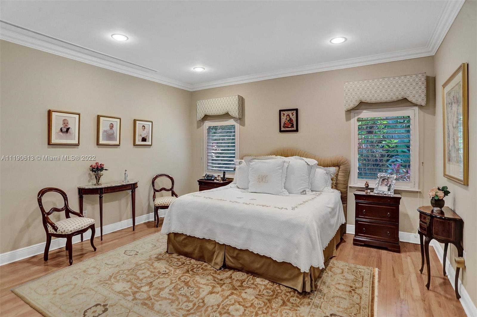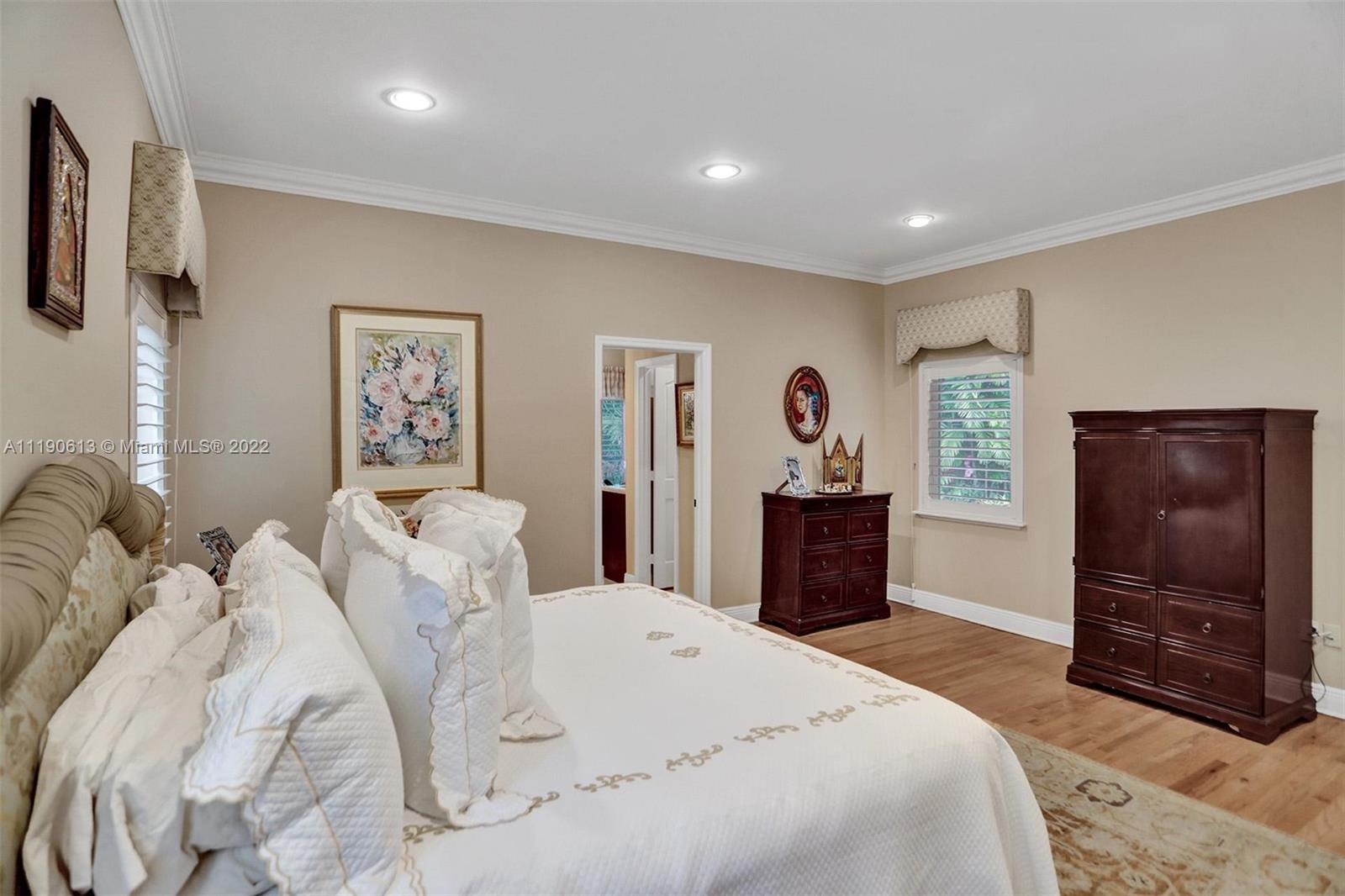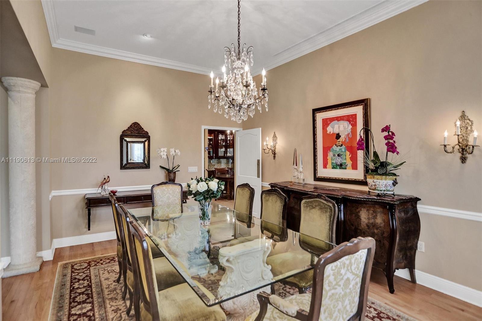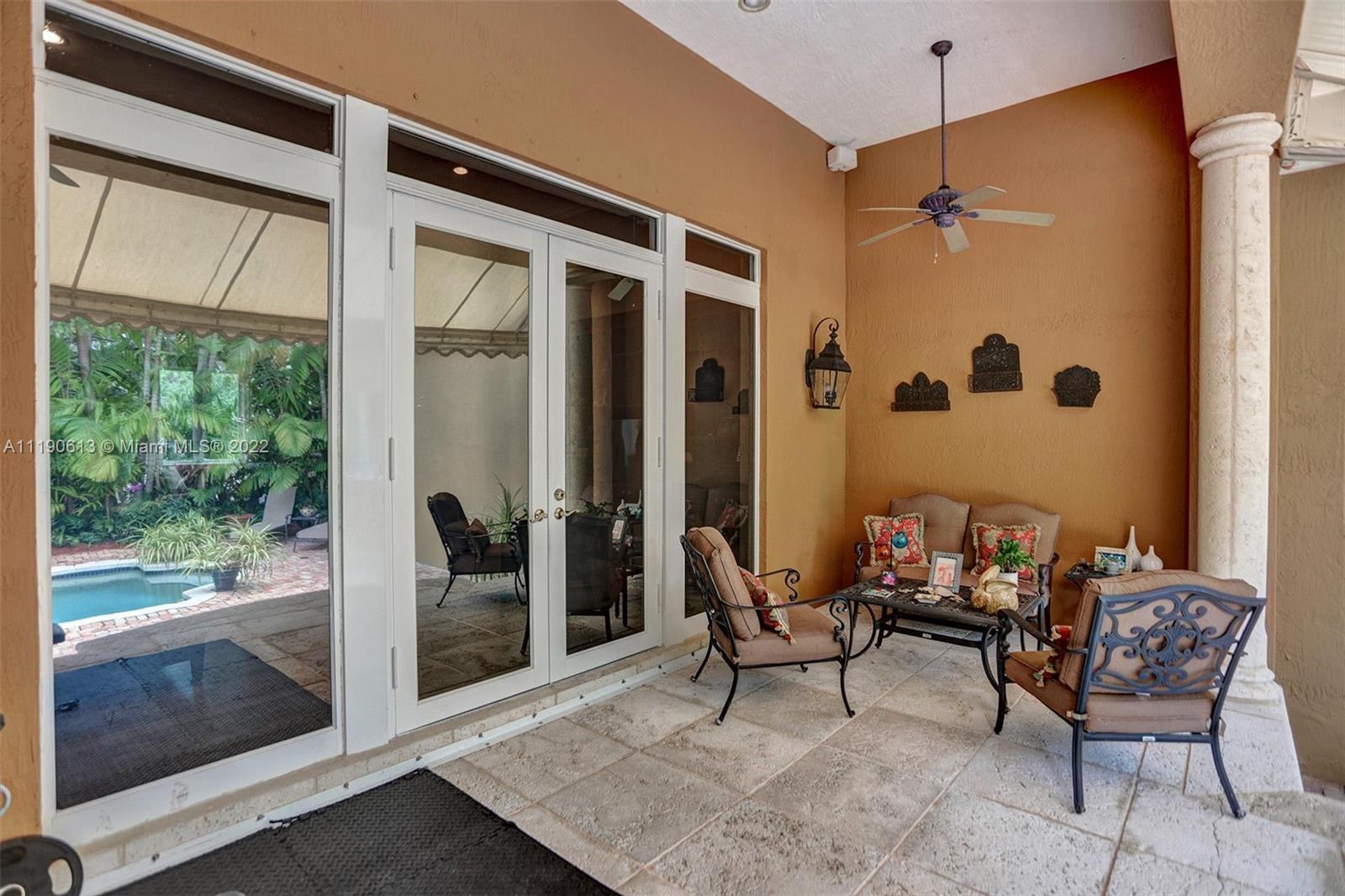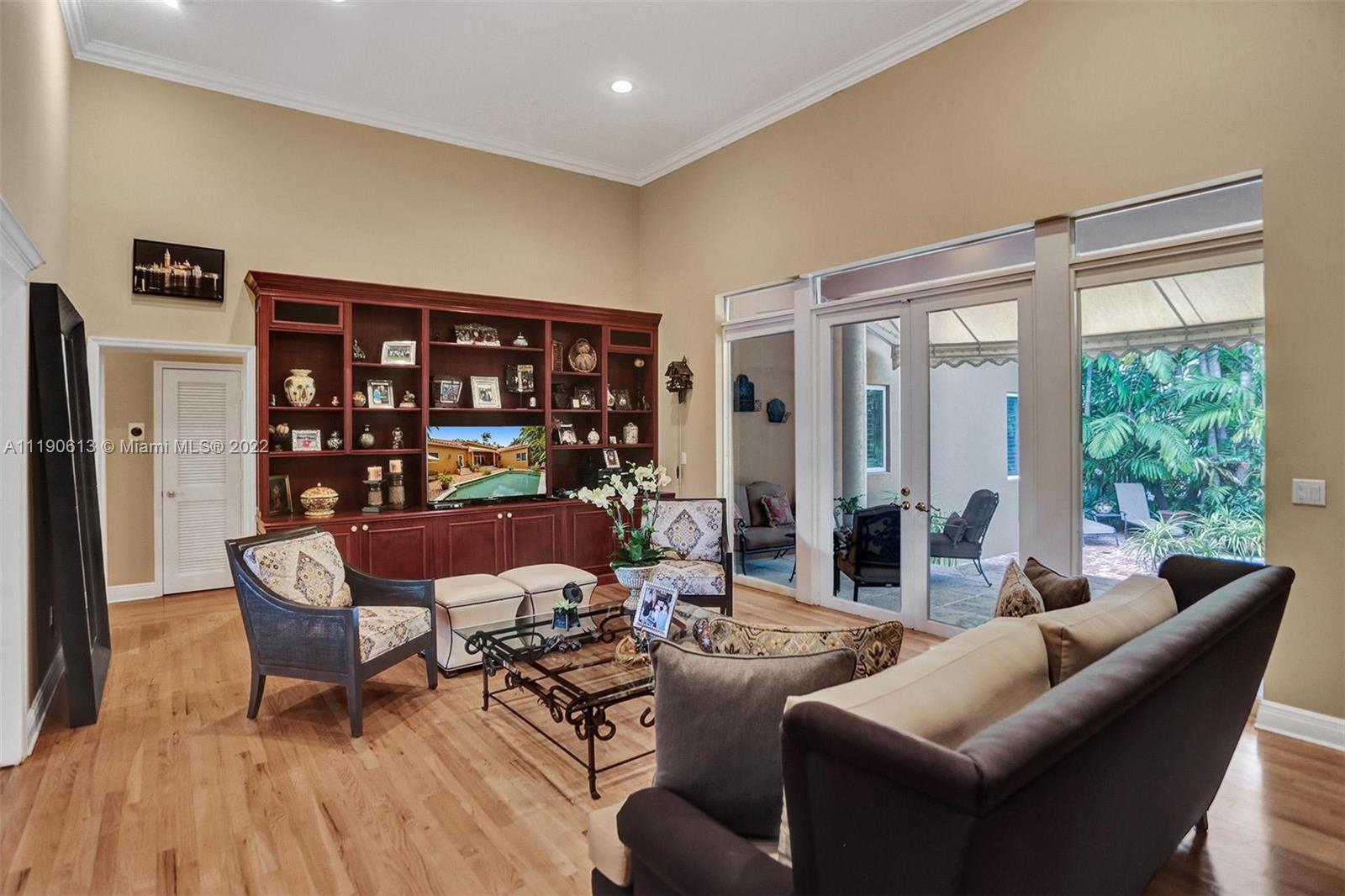 Stunning residence in a sought-after central Coral Gables area location awaits. An inviting foyer leads to a spacious living room, formal dining, entertainment room, and a large kitchen with cooking island with an informal dining area. The principal suite and two bedrooms with a hall bath are on one wing of the home; the 4th bedroom or office is opposite, with an adjacent hall/guest/cabana bath. Soaring ceilings throughout, and a bonus gardener's bath in the garage. Poolside, a covered terrace and pergola with a summer kitchen make the tropical outdoors quite inviting. Expanded and updated in 2002, the property offers a fabulous lifestyle in a desirable residential area, yet close to all the Downtown Gables amenities that our treasured City Beautiful offers.
