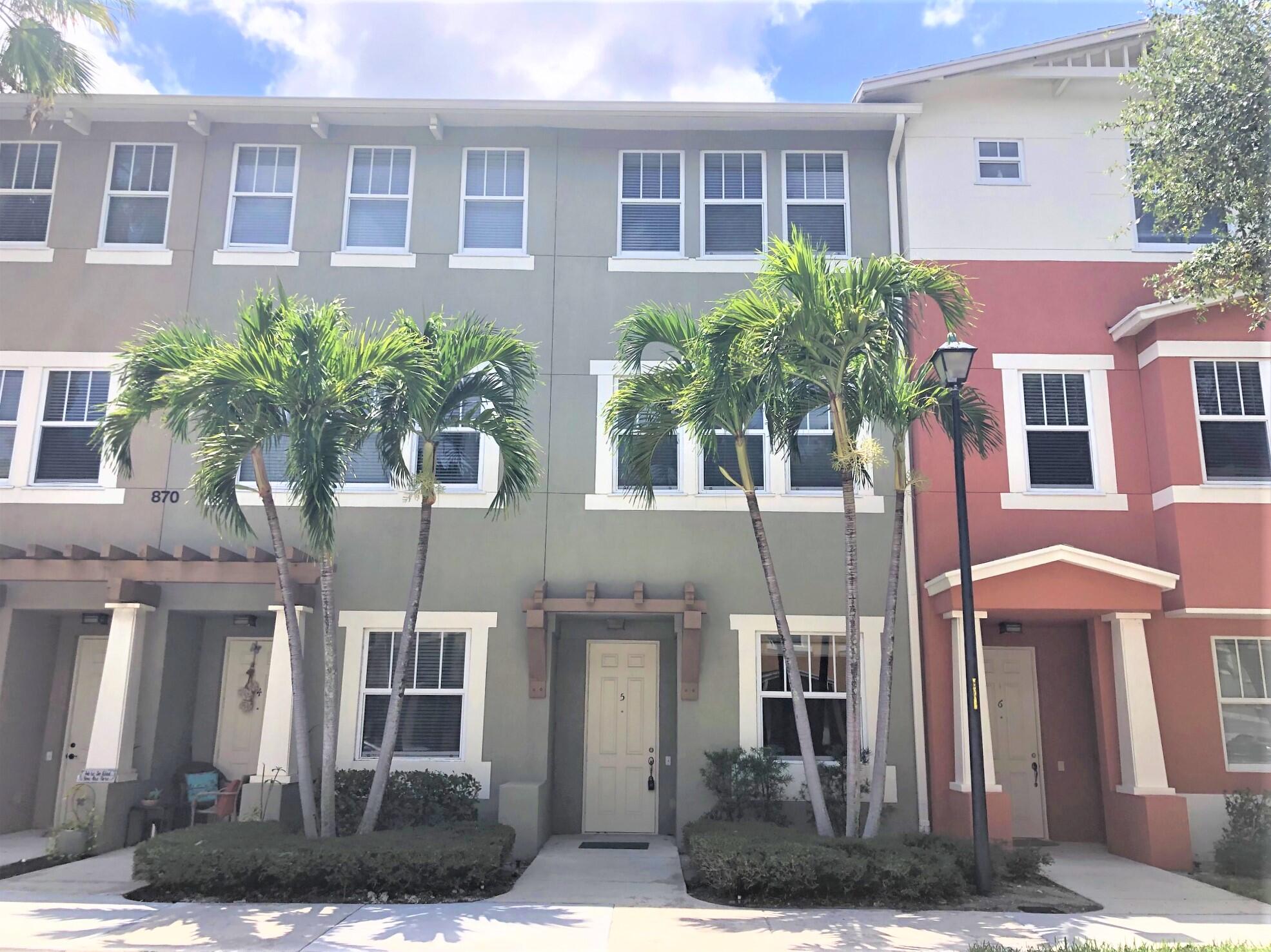 Beautiful 2 bed 2.5 bath Carmel model townhouse in CitySide. New AC system installed 3/7/22. Featuring an office / den on 1st floor. Stainless appliances, 42'' cabinets & granite counters in kitchen. New plank flooring throughout main living areas. Oversized 1 car garage w/ additional driveway parking. Centrally located building with lake views from kitchen & bedroom. Walk to Palm Beach Outlet Shoppes, Target, Whole Foods & restaurants. 5 minutes from I-95, downtown & PBI airport. CitySide amenities include: 24hr manned security gate w/ nightly roving patrol, HUGE lakeside pool w/ covered BBQ area, renovated gym, clubhouse, on site management & maintenance, beautiful lakeside jogging path. HOA dues include fiber optic cable & wireless internet service, water, trash removal, insurance.