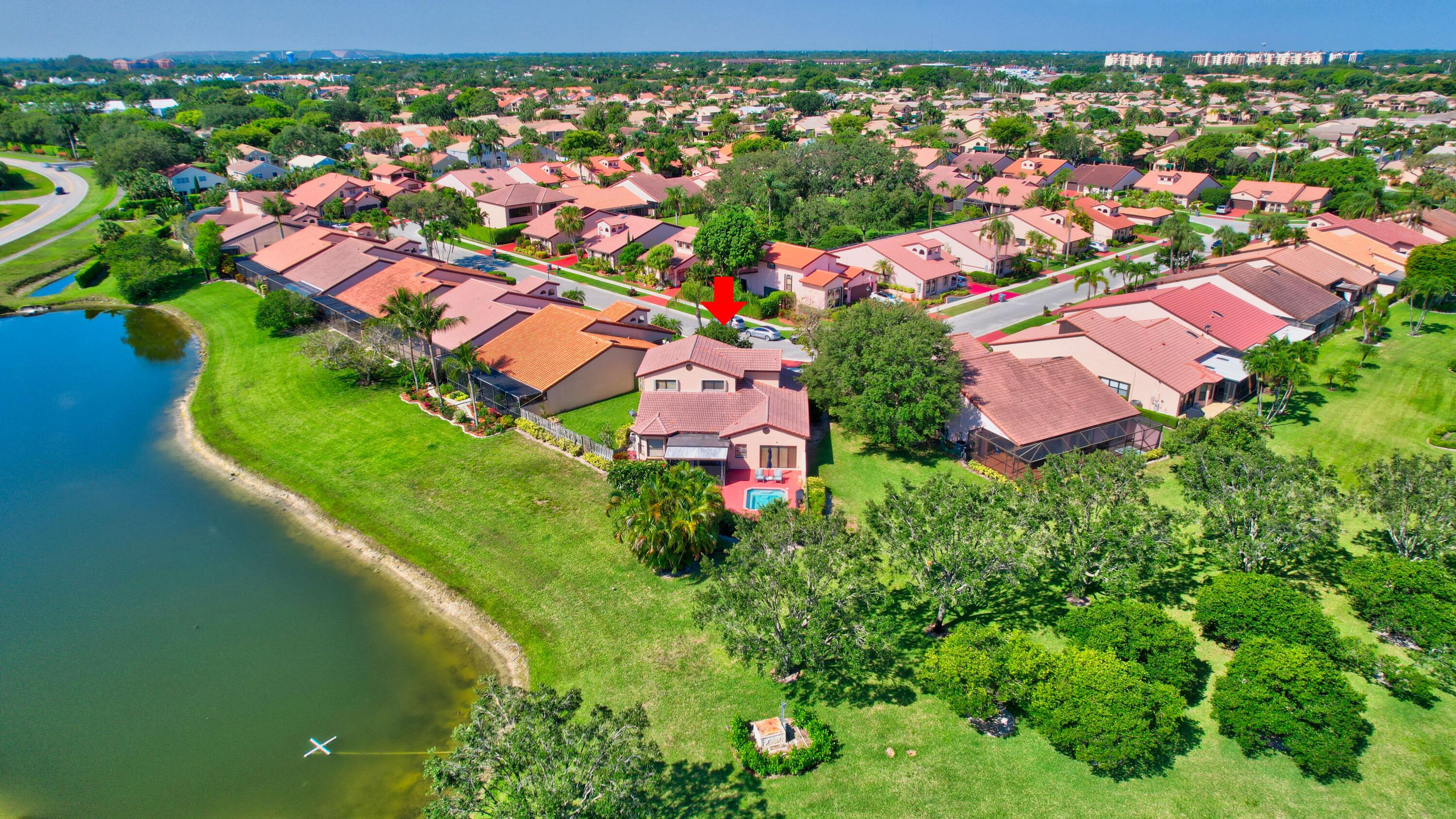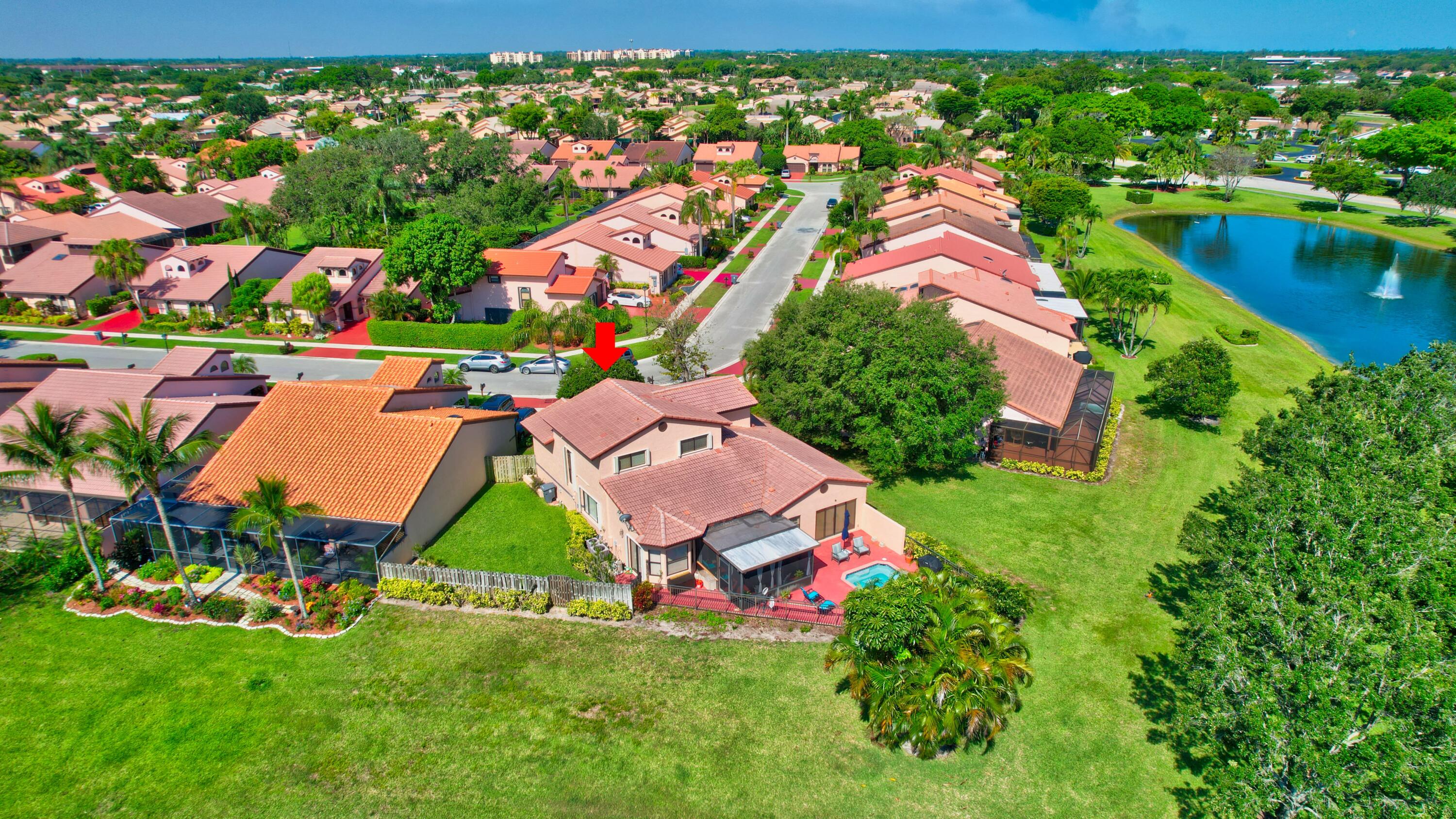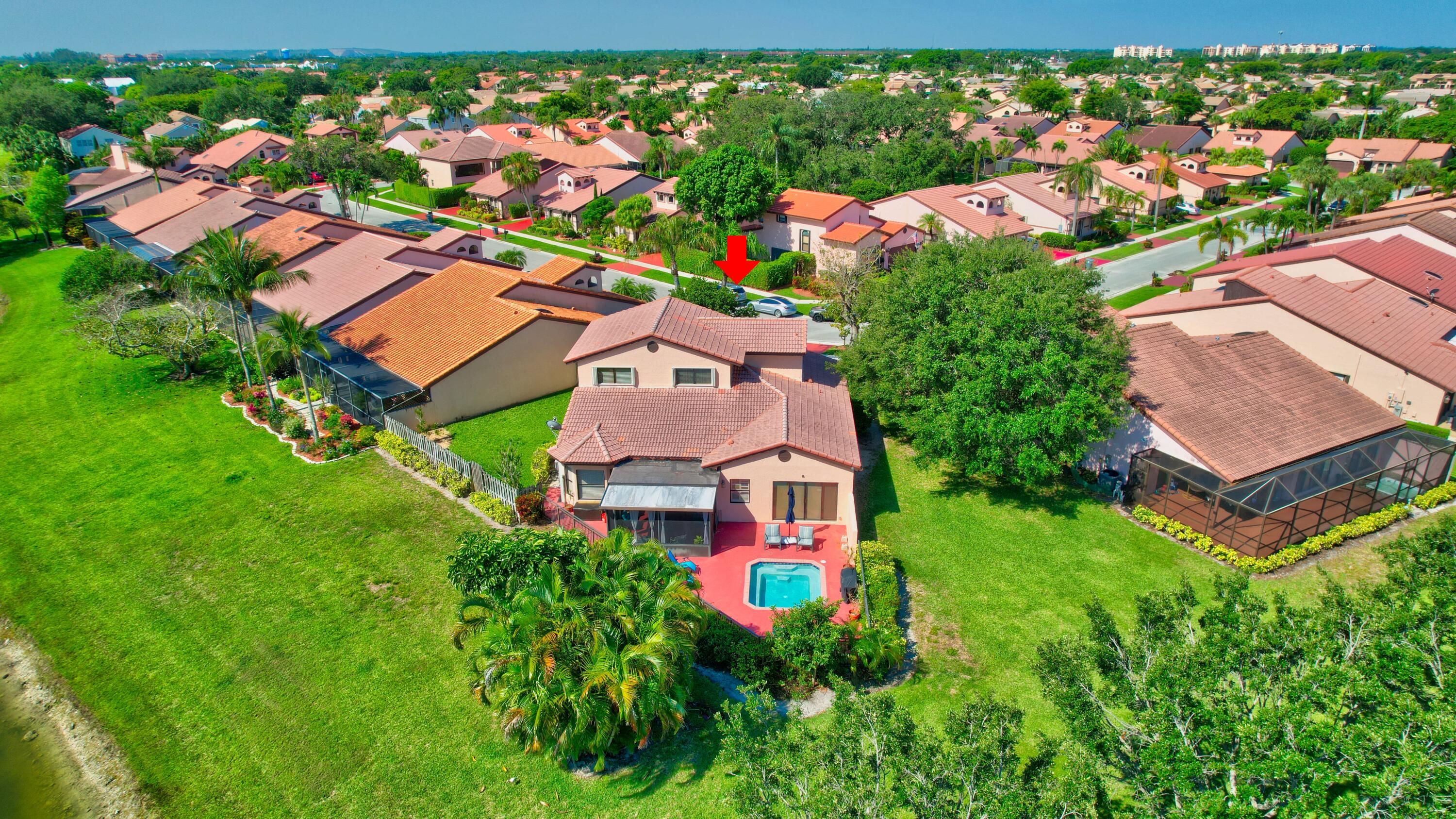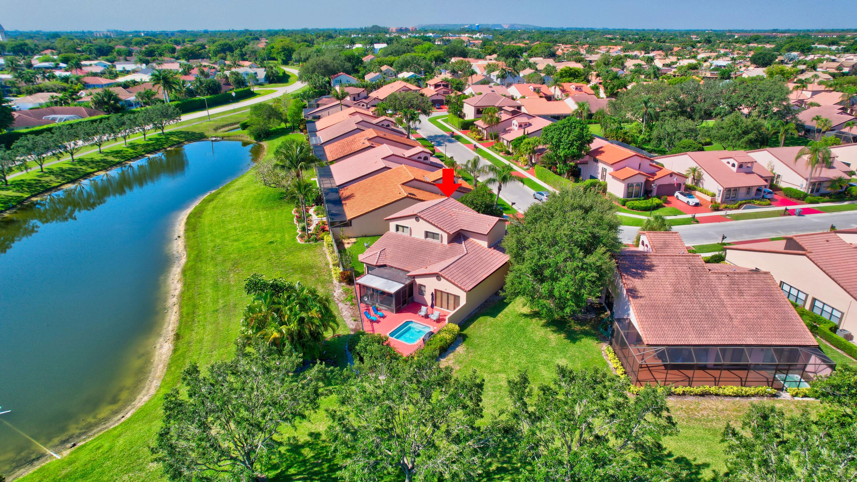 This 4 bedroom 2 1/2 bath property is located in highly desirable Boca Del Mar in central Boca Raton. Low HOA! Enjoy the lake views while relaxing in the spa on the large pie shaped lot. This expansive property features 3 upstairs bedrooms and primary bedroom and bathroom on the ground level. Light and open floor plan, two car garage, and lot's of storage space. Amazing top boca raton school zone!!