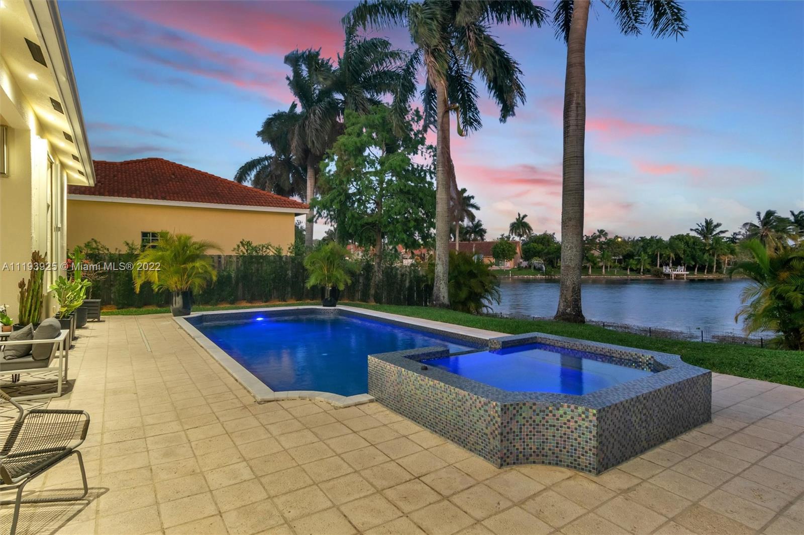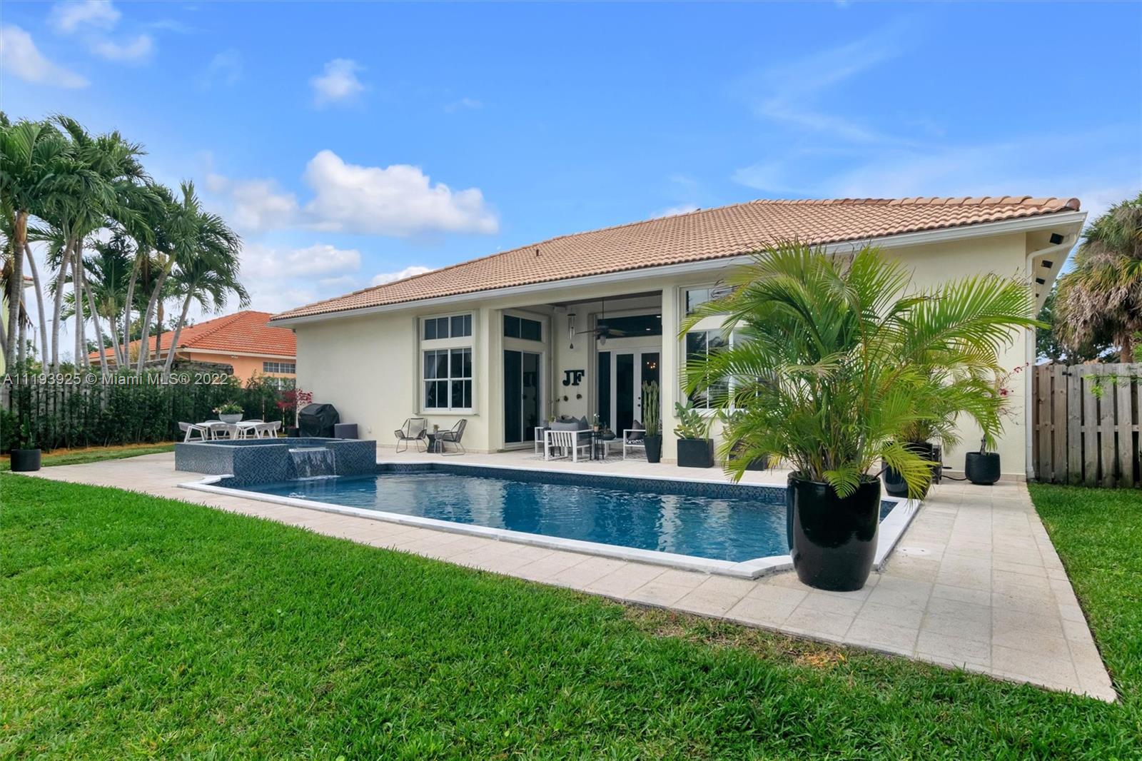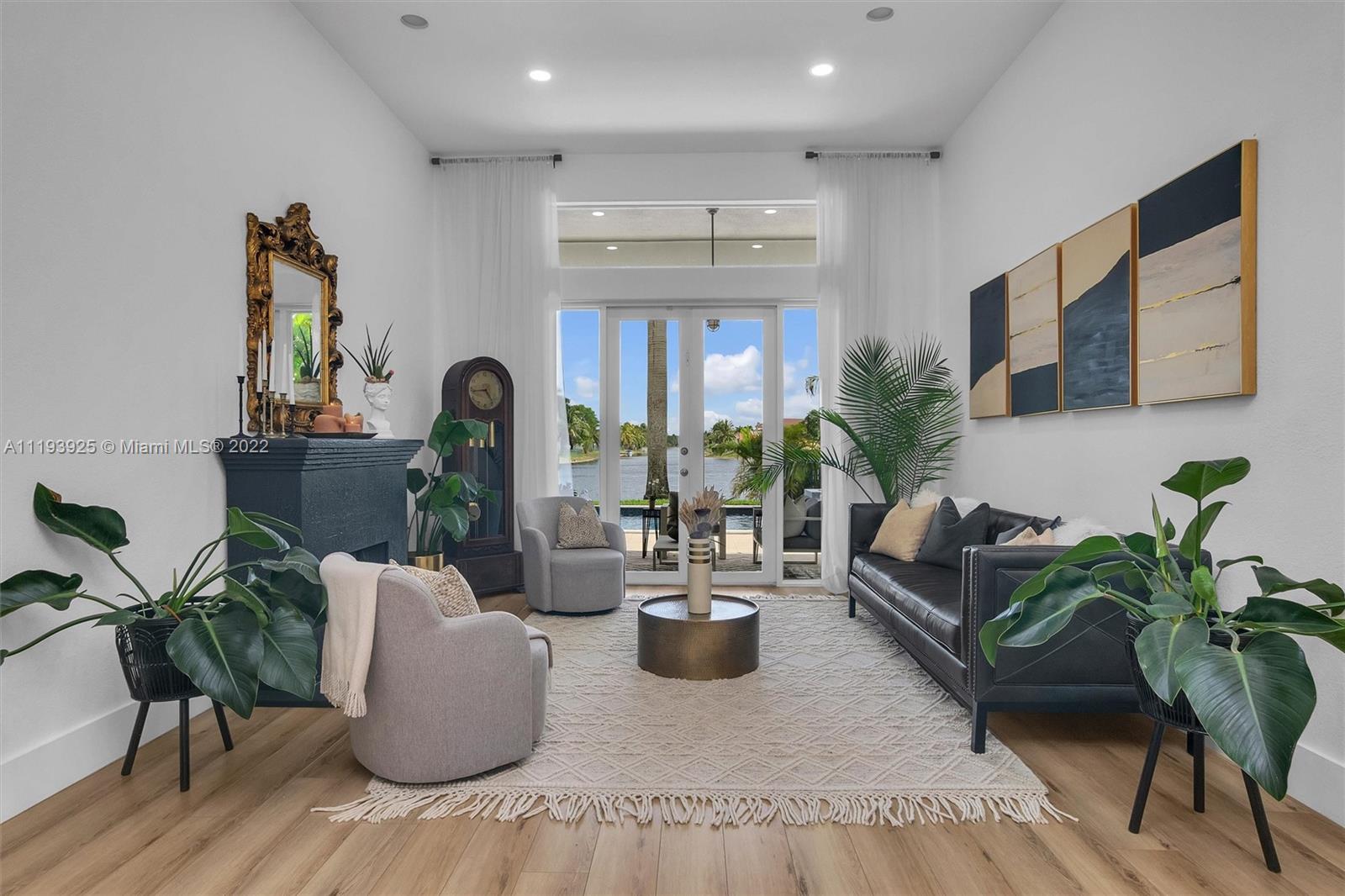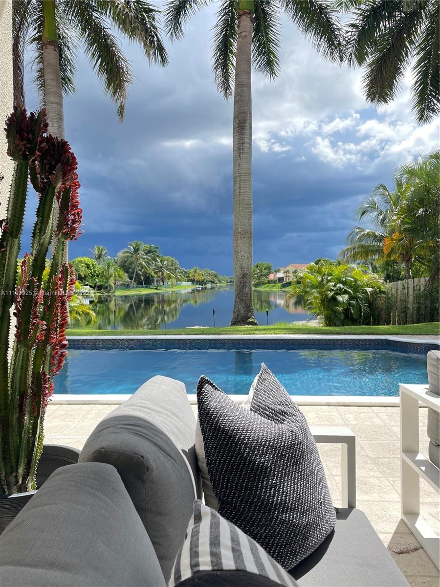 Welcome home just bring your bags. This single story waterfront home has 3245 total SQFT The friendly split floor plan is originally 4bed and 3baths but was converted into 3 oversized bedrooms done with the developer. You will love the open concept with 12ft ceilings 8ft doors and lots of natural light This home includes designer finishes throughout not sparing any details with wifi smart appliances a custom hood and marble countertops. An inviting 15x30 pool and 10 seated spa was recently remodeled in a deep mediterranean blue with reflective tiles. Your paradise backyard includes a covered lanai and a 26x63 patio with plenty of seating areas overlooking the expansive water view and access to the cabana bath The lot size still offers a surplus of green space for the dogs and kids to play.