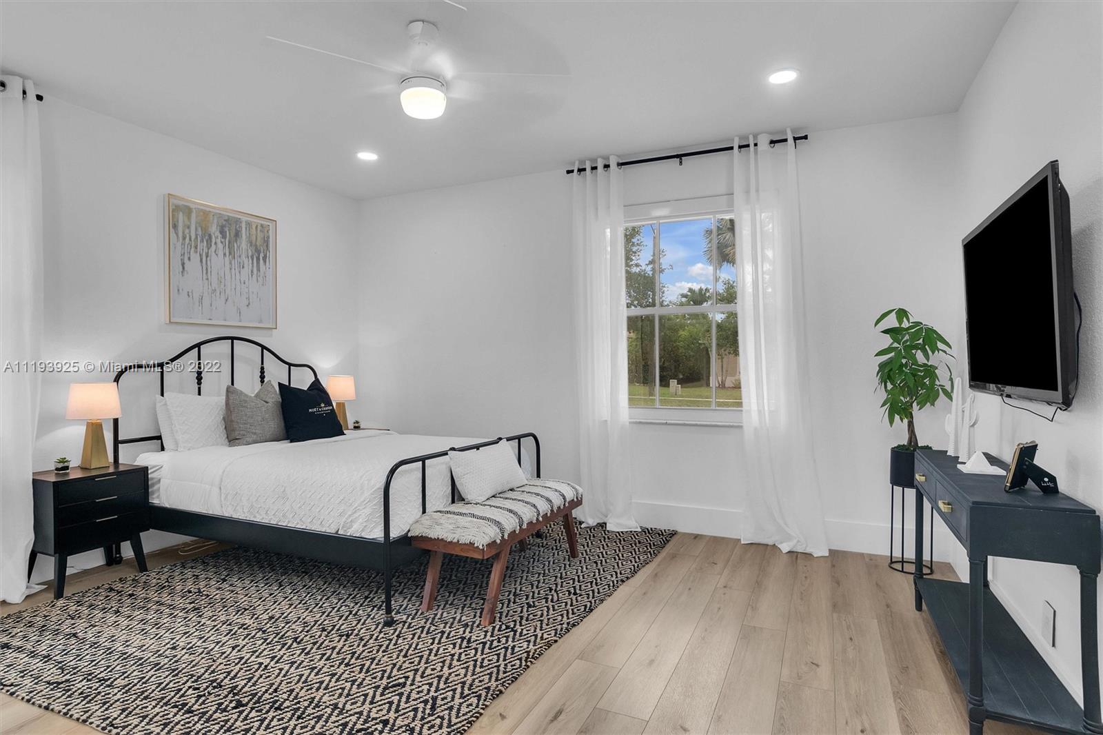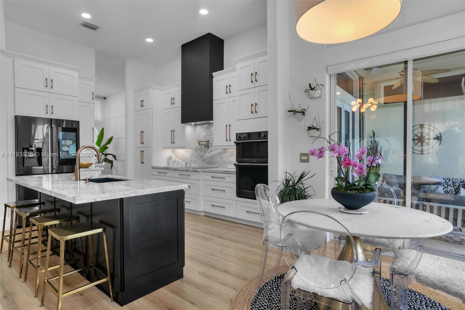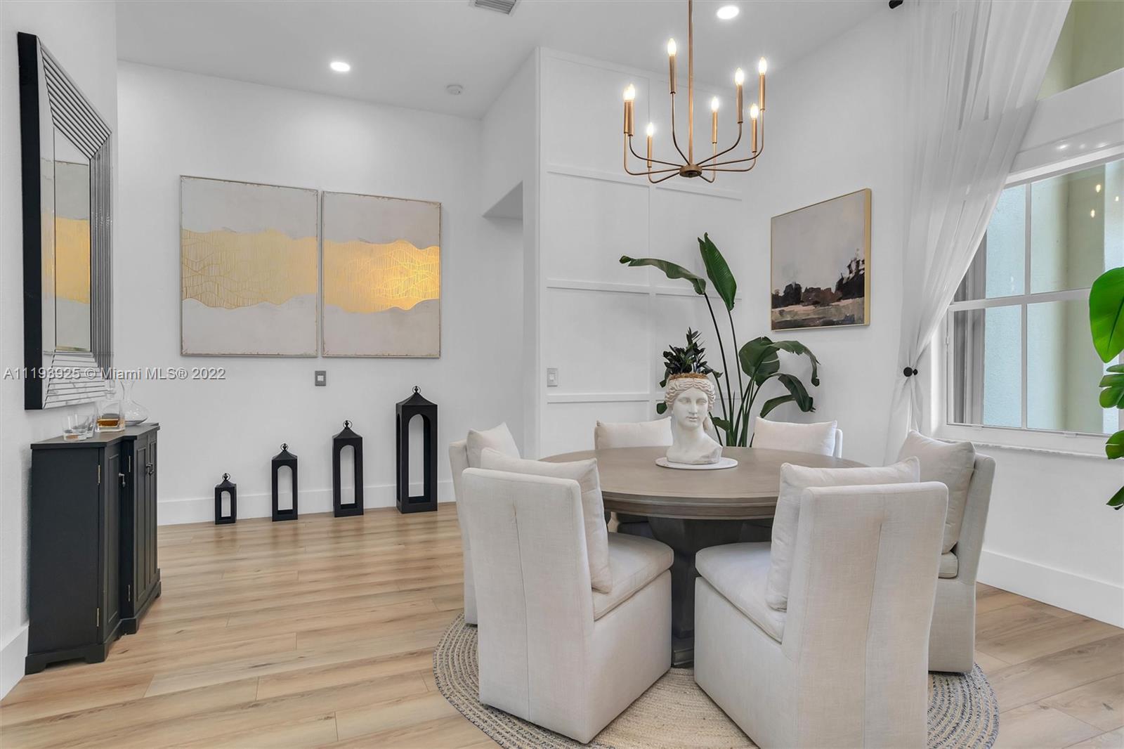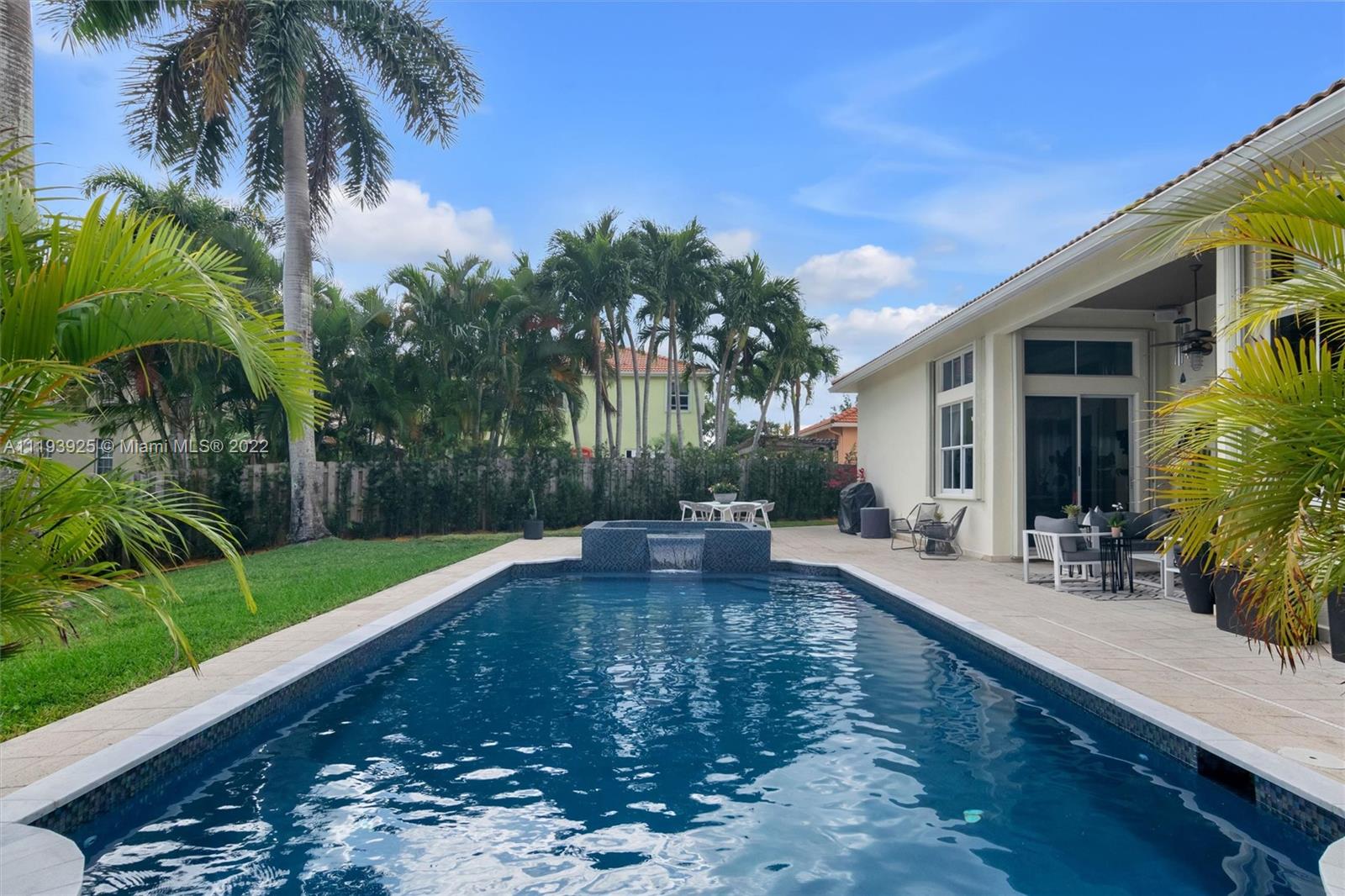 Welcome home just bring your bags. This single story waterfront home has 3245 total SQFT The friendly split floor plan is originally 4bed and 3baths but was converted into 3 oversized bedrooms done with the developer. You will love the open concept with 12ft ceilings 8ft doors and lots of natural light This home includes designer finishes throughout not sparing any details with wifi smart appliances a custom hood and marble countertops. An inviting 15x30 pool and 10 seated spa was recently remodeled in a deep mediterranean blue with reflective tiles. Your paradise backyard includes a covered lanai and a 26x63 patio with plenty of seating areas overlooking the expansive water view and access to the cabana bath The lot size still offers a surplus of green space for the dogs and kids to play.