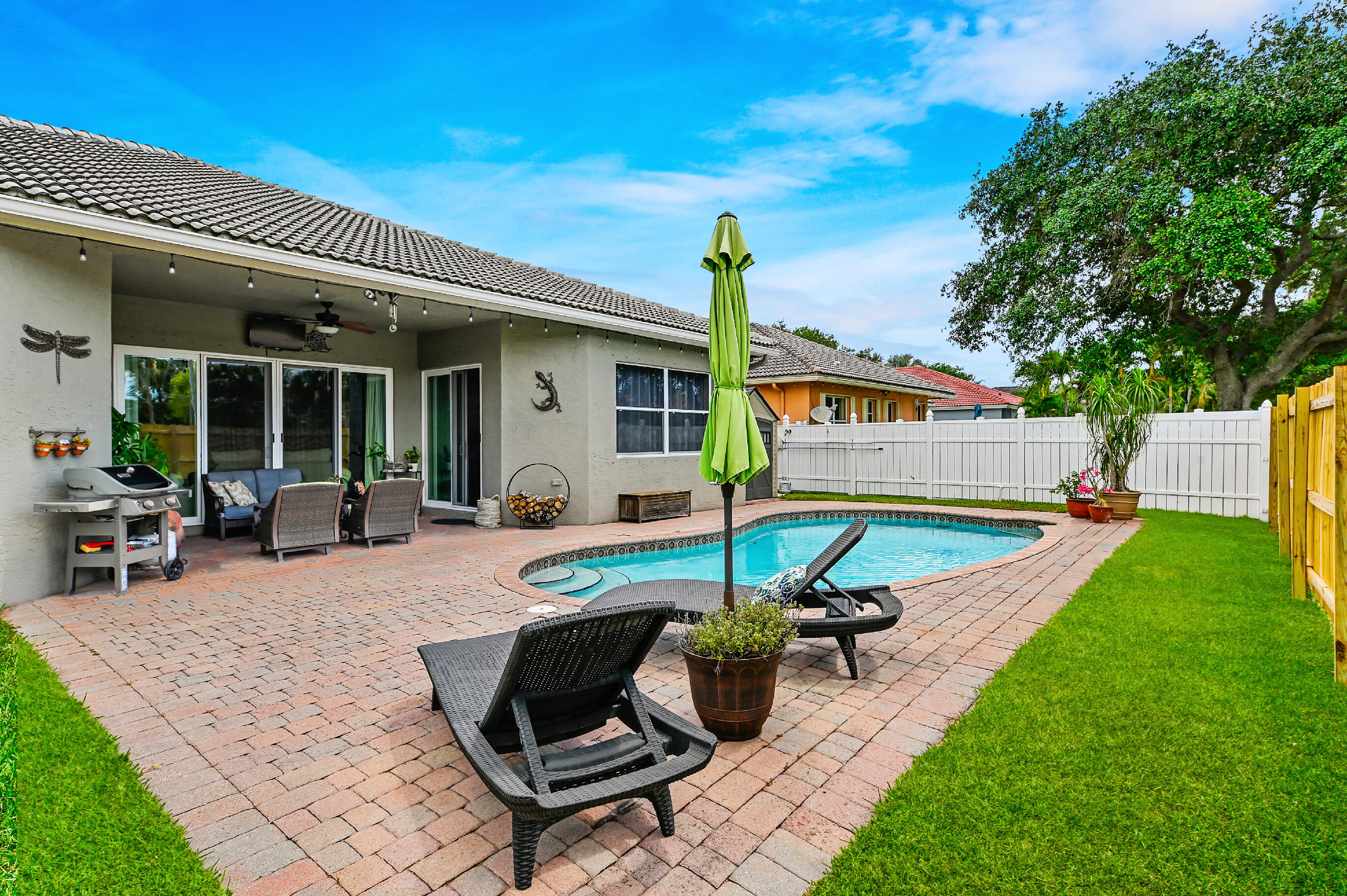 IMMACULATELY maintained 4 bedroom 3 full baths 1 story home with open floorpan in the desirable Waterside of Coral Creek. Super low HOA of $31.67 monthly. New kitchen, baths, floors, and fence. Beautifully redone Large master bath with roman tub and shower. Master walk in closet. Large laundry room with sink.Enjoy your backyard on a 9000 square foot lot with a pool and roofed back patio area. Great for entertaining! Paved driveway and a 2 car garage.Come see today.Property will not disappoint and will not last! 1.5 miles from Promenade shops, restaurants, and theater.