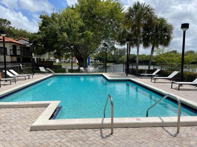 Spacious Townhouse with private, fenced-in patio. Large master bedroom with balcony. 3) Bedrooms, each with their own full bath. Electric and accordion storm shutters. Highly sought after, quiet and centrally located, guard gated community with A-rated schools. Close to Town Center Mall and countless shops and restaurants. Lovely community pool with spa and a wonderful scenic trail for walking, jogging and biking, which even leads to the Boca Racquet and Swim Center.