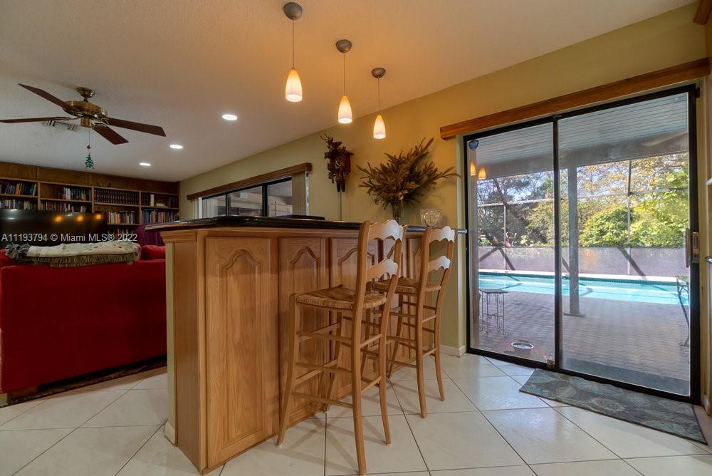 Enjoy your own little touch of Eden inside Coral Springs! Private, secluded, lush backyard in this desired, tree-lined neighborhood in Oakwood. Single-family home is a one story, 4 bedroom, 2 bathroom, 2 car garage with pull down attic. Closets throughout house are designed for maximum clothing and storage. Dining and living room are open and spacious. Kitchen has open concept with granite counters, white appliances, wood cabinets, pantry and elevated island for seating/entertaining. Sliding doors in the family room lead to screened patio and heated pool. Patio is perfect to enjoy nature all year round. Hurricane accordion shutters. Property backups to Oakwood Park, which is maintained and owned by the city. Very peaceful, and very loved home. Good schools, shopping & dining. No HOA.