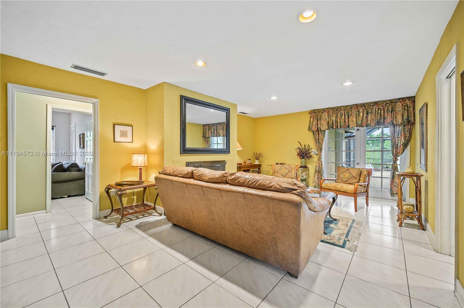 Amazing opportunity in the highly sought after gated community of Hammock Oaks! This waterfront property boasts the perfect canvas and magnificent back drop to create your own masterpiece. Ideal design and floor plan, this home offers thoughtful living space, spacious bedrooms and kitchen with breakfast area overlooking the pool/patio area. Charming characteristics also include a wood burning fireplace, welcoming family room, formal dining room, slate tile foyer entrance and french doors leading out to a tropical paradise. Enjoy a private sunset shimmering off the water from the patio area like a true Floridian. Other features include 2 car garage, circular driveway and screened in pool area. Excellent location in South Coral Gables nearby shops, great hospitals and top notch schools.