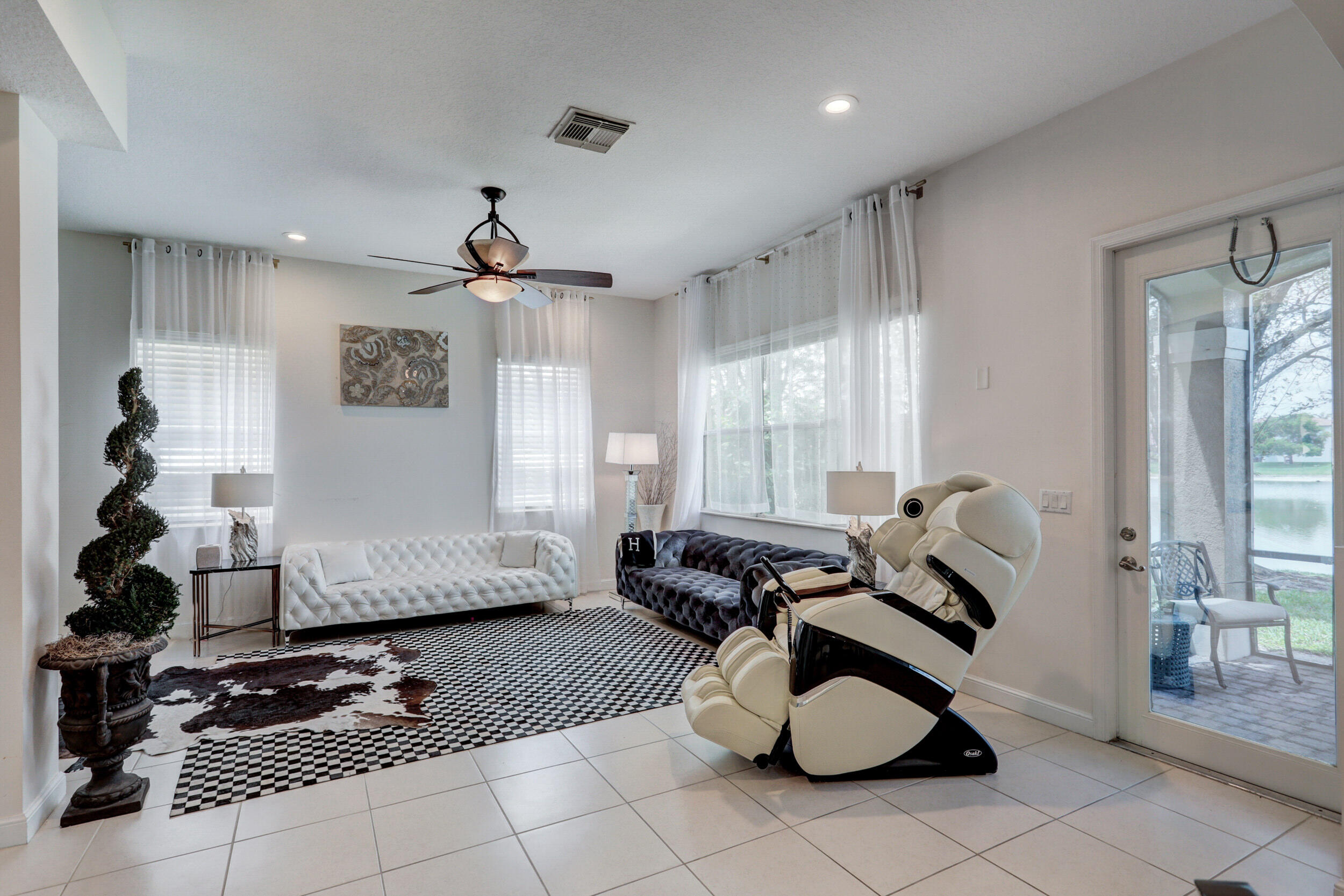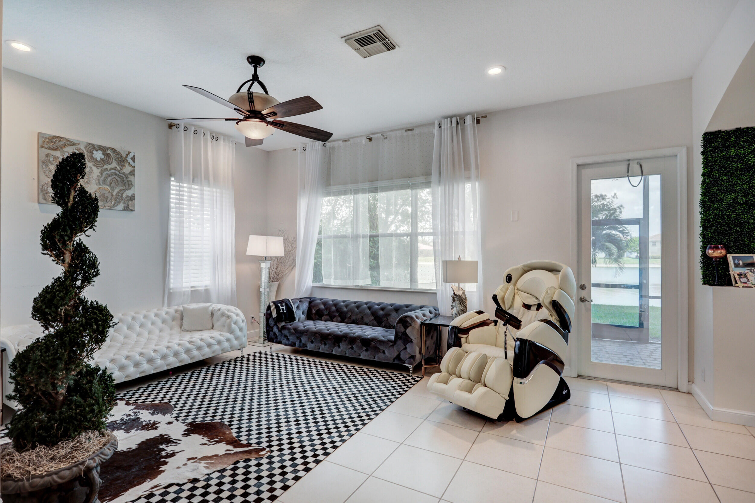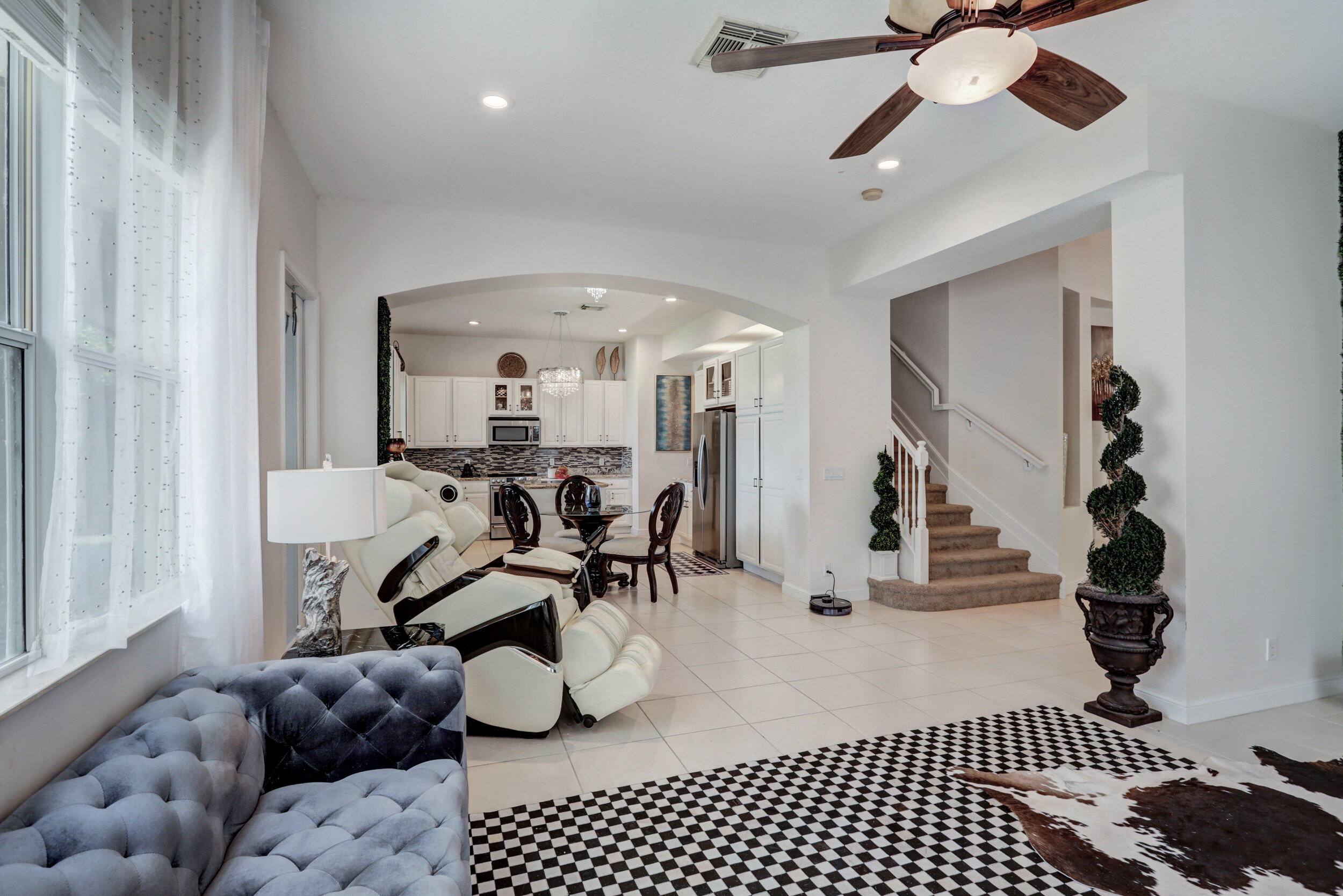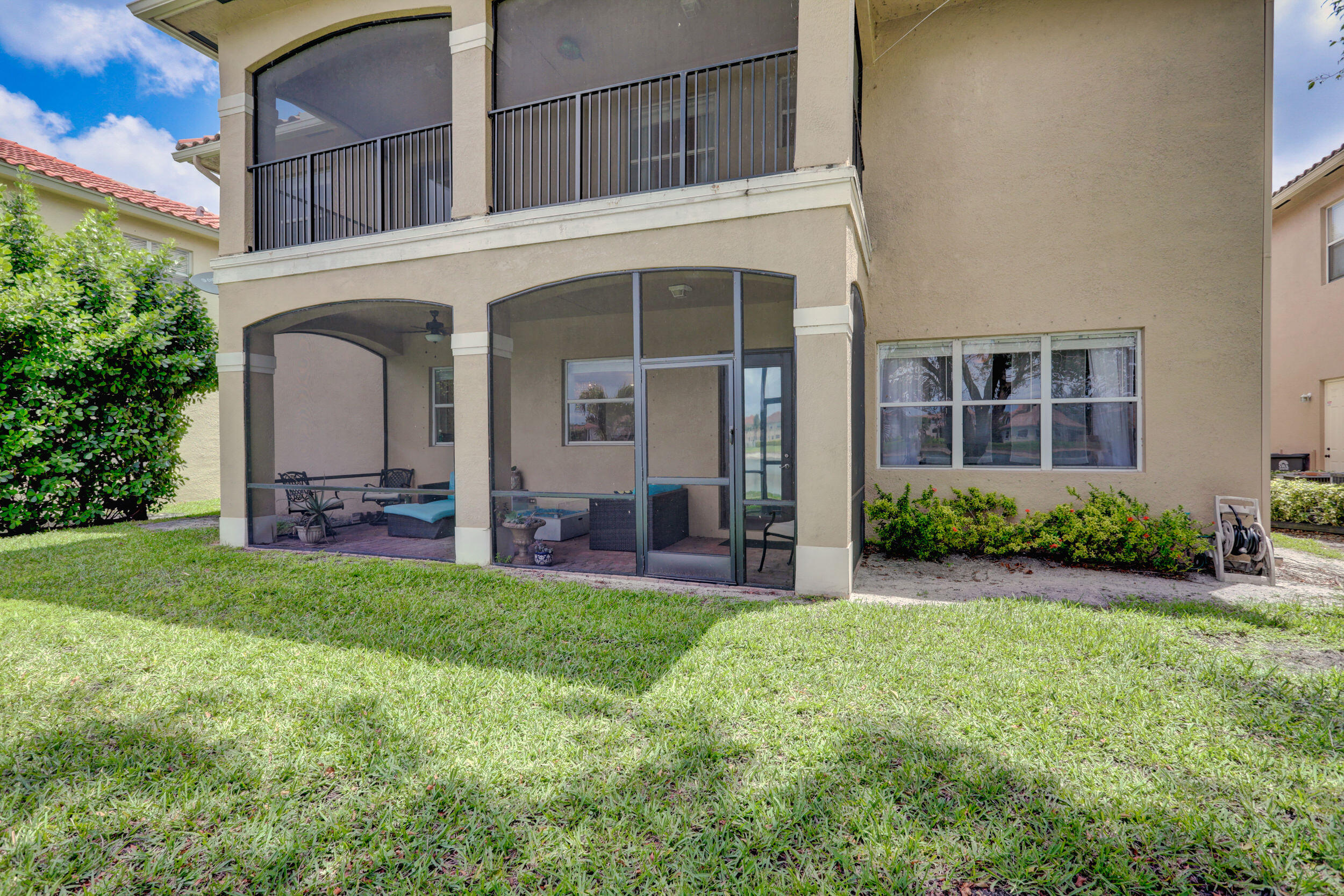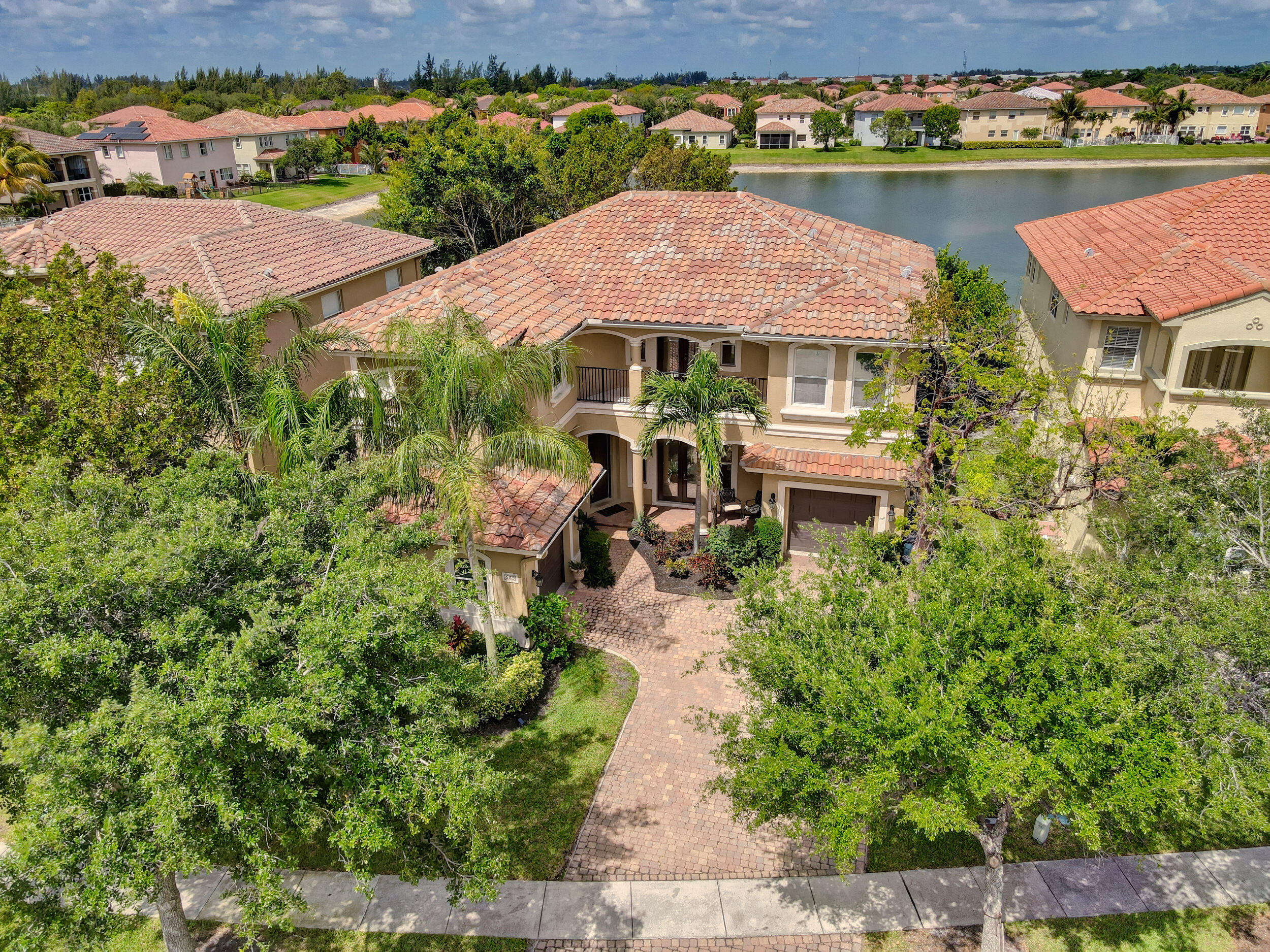 Elegant and modern 5 bed/4 bath home with 3 car garage on the water! With lavish Spacious floor plan that includes a roomy loft for extra entertainment space. This home has 3 beautiful, oversized balconies. Come inside and be greeted by soaring ceilings! This home features renovated Kitchen with brand new Stainless Steel appliances, newer AC systems,the main level offers a cozy bedroom with private entrance. Outside you will enjoy a great screened in patio which is perfect for entertaining. The Primary bedroom has 3 large wall in closets with an added bonus room which has been turned into a closet/ makeup room. The community is well maintained and offers its residents many resort style amenities such as a clubhouse, and pool.