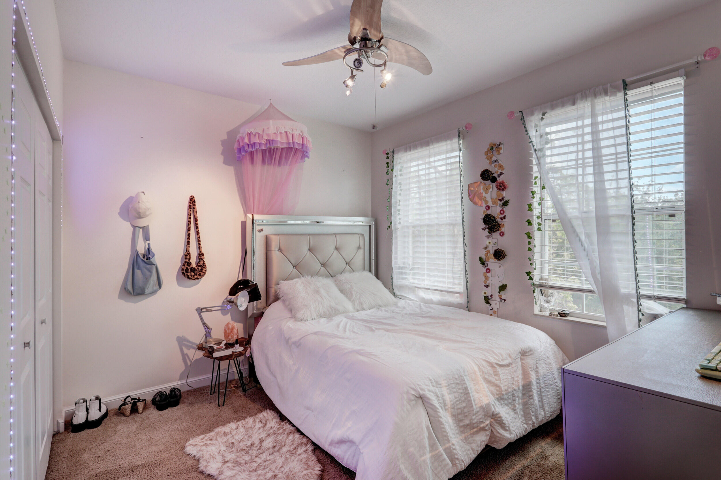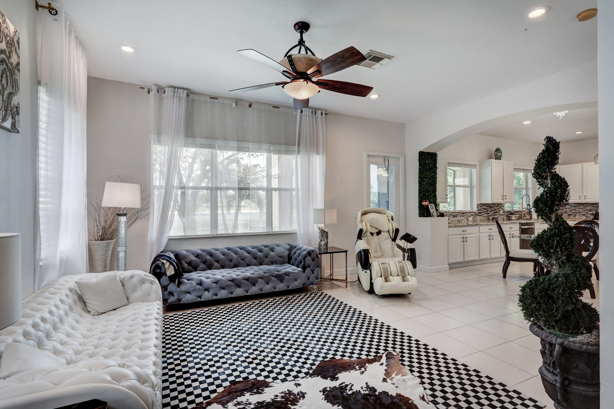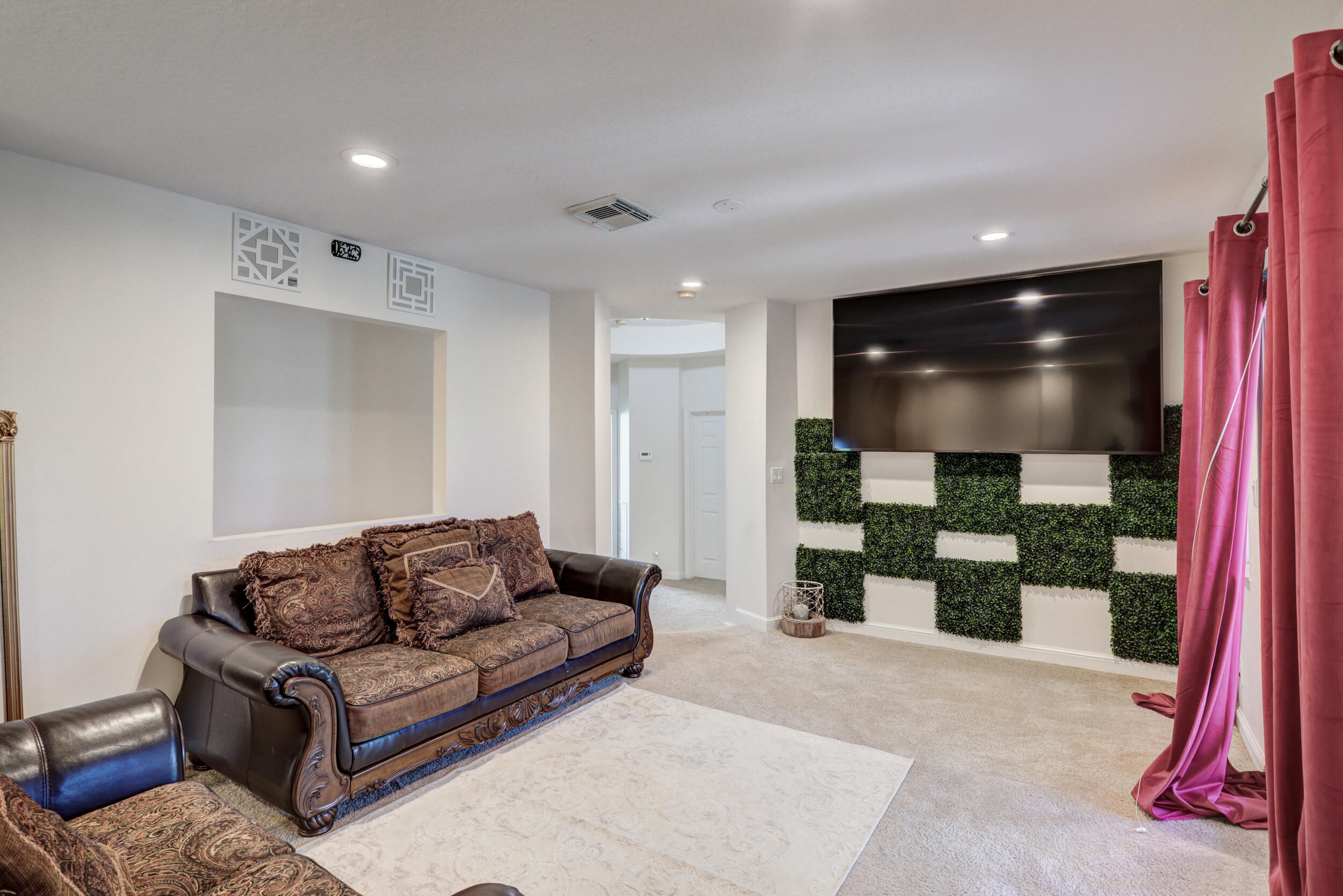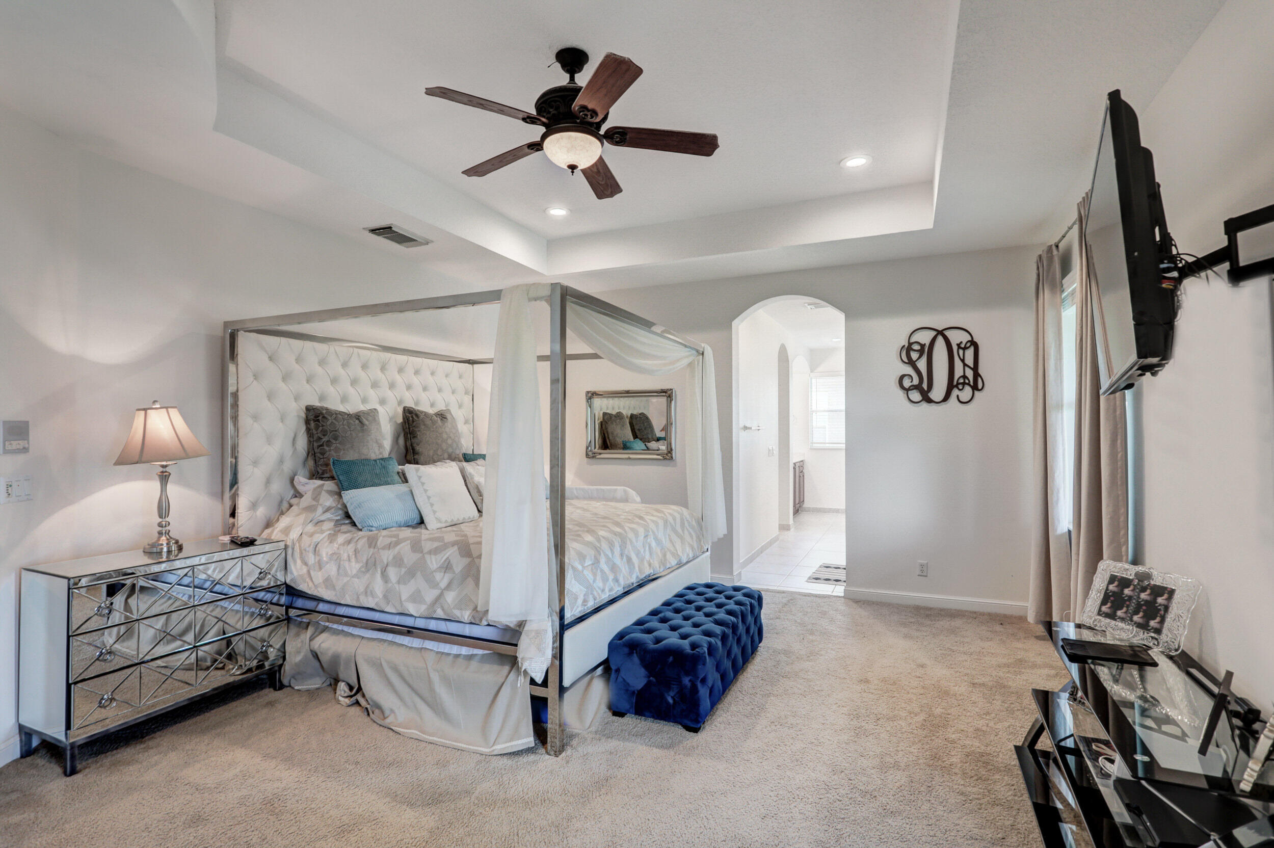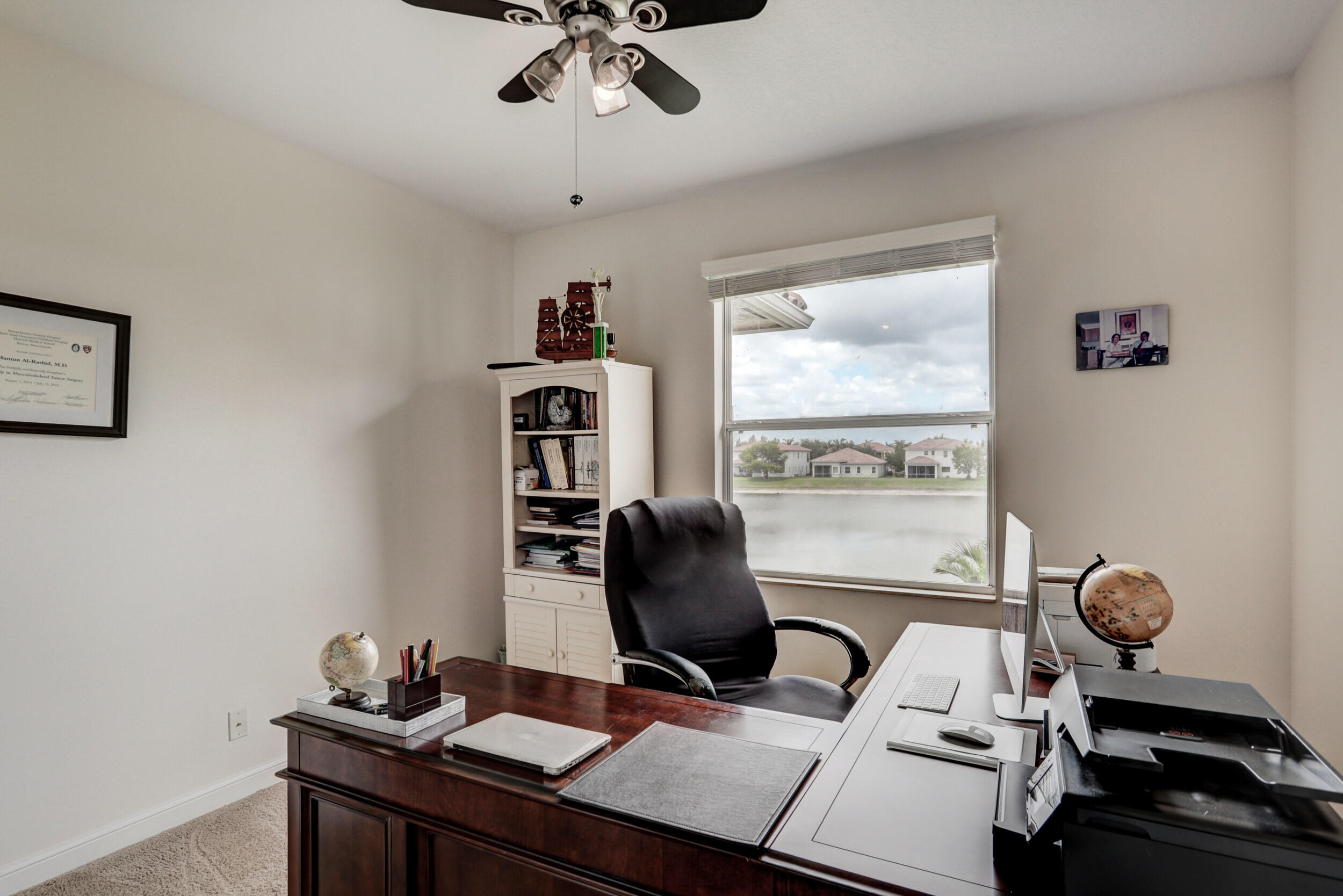 Elegant and modern 5 bed/4 bath home with 3 car garage on the water! With lavish Spacious floor plan that includes a roomy loft for extra entertainment space. This home has 3 beautiful, oversized balconies. Come inside and be greeted by soaring ceilings! This home features renovated Kitchen with brand new Stainless Steel appliances, newer AC systems,the main level offers a cozy bedroom with private entrance. Outside you will enjoy a great screened in patio which is perfect for entertaining. The Primary bedroom has 3 large wall in closets with an added bonus room which has been turned into a closet/ makeup room. The community is well maintained and offers its residents many resort style amenities such as a clubhouse, and pool.
