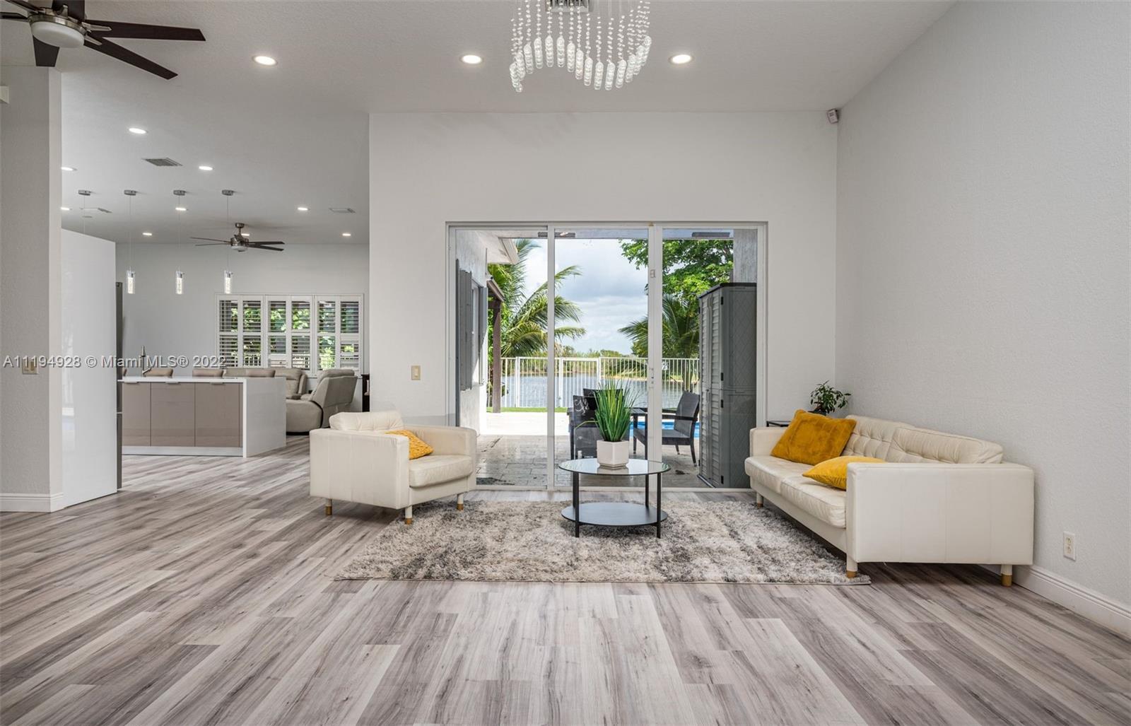 Panoramic Wide Water Views from Oversized (14,089) Cul-de-Sac Lot located in Savanna. New Roof (2019). The floor, kitchen and bathrooms was upgraded in 2020. Accordion Shutters. TROPICAL PLANTS. High Ceilings. New washer and dryer. New A/C (2022). Solar panel installed in 2021 producing 11.6kw. Amazing outdoor area with BBQ, fridge, table and chairs covered by pergola with ceiling fans, a second pergola is used as solarium for the pool area. Automatic mosquito misting system in backyard installed in 2021.NOT included in sale are: outside audio equipment, outside bar stools, all other outside furniture, and all indoor furniture. YES, it is included in the sale: hub tub, outdoor kitchen, Grill island, bar island, Outside TV, Security cameras, Automated mosquito misting system.