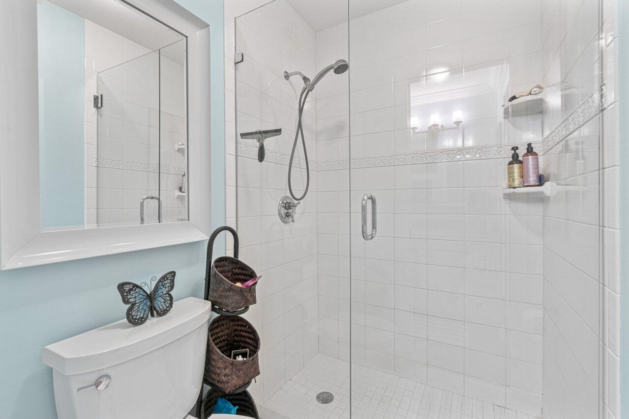 Exceptional town home in the manned gated non mandatory membership country club community of Boca Pointe possessing ALL the desired features in a Florida home! 3 bedrooms 2 and half baths. Upgraded designer grade kitchen with granite and stainless, opening to the dining area and living space with a peninsula island. Living spaces all have wood like laminate flooring, no carpet. All bathrooms are upgraded. Walk in closets. Impact windows (except sliders to the patio). This corner home has extra windows and a huge screed private patio with an extra outdoor storage room . Full size washer and dryer are inside! Resort style community pool. Close to the best shopping, restaurants and schools. Assigned parking with plenty of guest parking. RENTALS allowed 4 times per year 1 PET up to 25 lbs