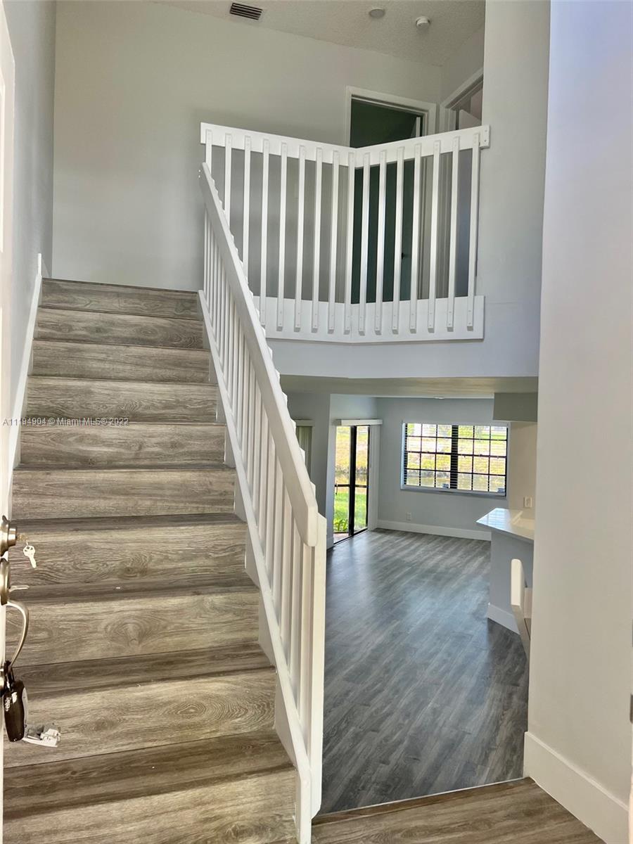 Beautiful and completely updated 3bedroom, 3 bath townhome. located in the gated community of Lakeview Courts at Jacaranda. A 2-story floor plan with one bedroom and full bathroom on the ground floor. This home has been completely remolded including No popcorn ceilings on the ground level and bedrooms, New White kitchen cabinets with Quartz counter tops with a back splash appliances AS IS, all new 3 bathrooms , This property has been freshly painted thru out. New water proof laminate floor & Baseboards thru out the house, Property sold as is with the right to inspect. A must see!! No rent, 1st year of ownership. Agents must provided complete DU or POF