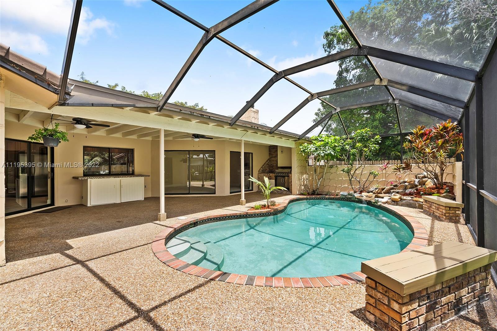 STUNNING POOL RESIDENCE FEATURES 4 BEDROOMS 2 BATHS WITH BONUS ROOM AND OFFICE. BEAUTIFULLY SITUATED ON A CORNER LOT IN THE NEIGHBORHOOD OF MAPLEWOOD WITH NO HOA!! OVER 2700 SQFT UNDER AIR AND AN AMAZING OVERSIZED LOT FOR ENTERTAINING AT 16,468 SQFT. THIS RARE FIND BOASTS HUGE COVERED PATIO OVERLOOKING WATERFALL AND POOL, HIGH CEILINGS, NEW KITCHEN WITH STAINLESS STEEL APPLIANCES, FIREPLACE, LARGE FAMILY ROOM, HUGE BONUS ROOM OR 5TH BEDROOM, NEW FENCE, NEW IRRIGATION SYSTEM, BEAUTIFULLY LANDSCAPED, ELECTRICAL PANEL UPGRADED, NEW FLOORING IN BEDROOMS, AND SCREEND IN PORCH. SO MUCH EXTRA LAND FOR EITHER ADDITION OR EVEN A SEPERATE GUEST HOME IF DESIRIED. SO MANY EXTRAS AND COMPLETELY MOVE IN READY. IN THE HEART OF CORAL SPRINGS WITH PLENTY OF RESTAURANTS, SHOPPING, AND ENTERTAINMENT.