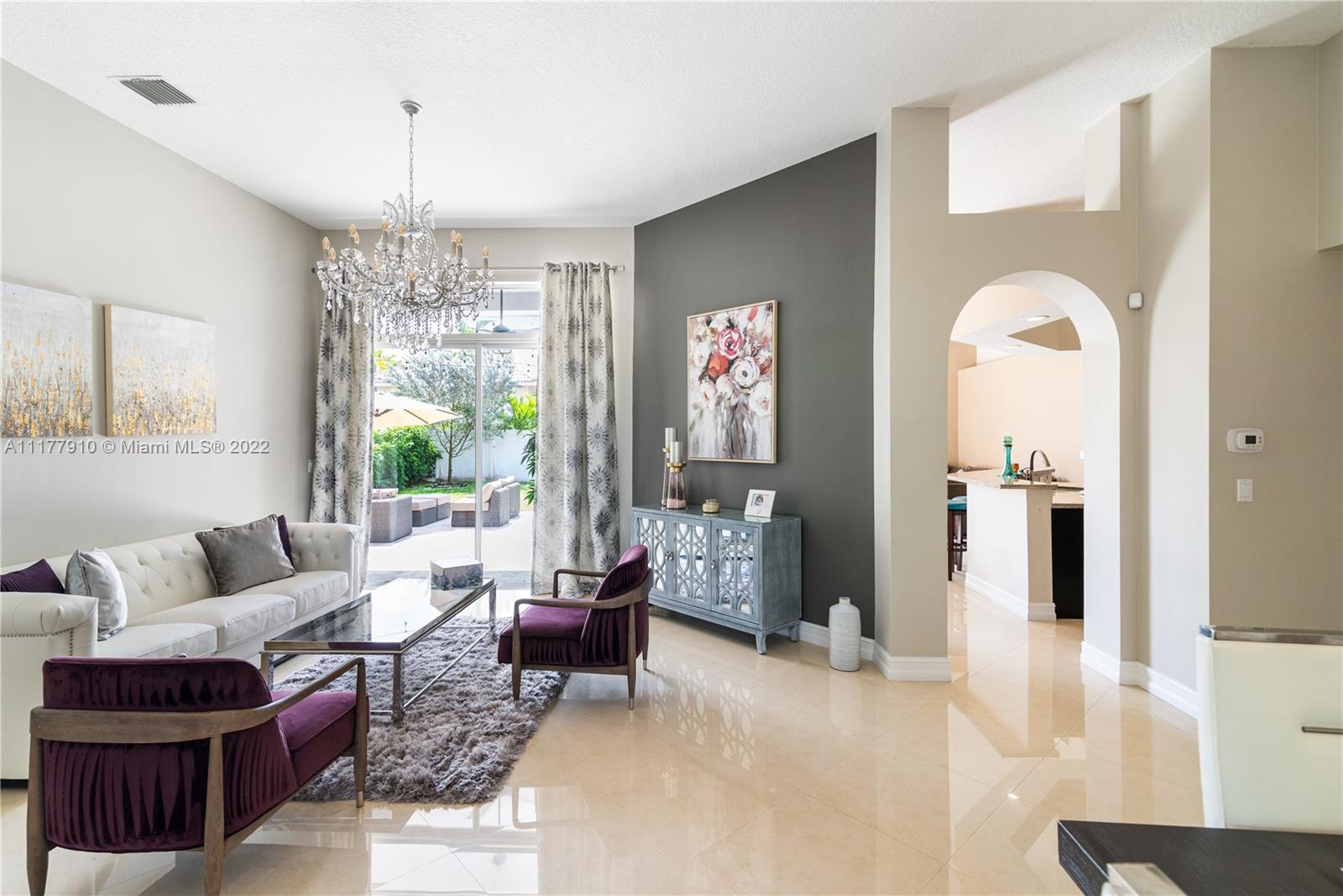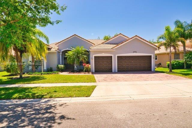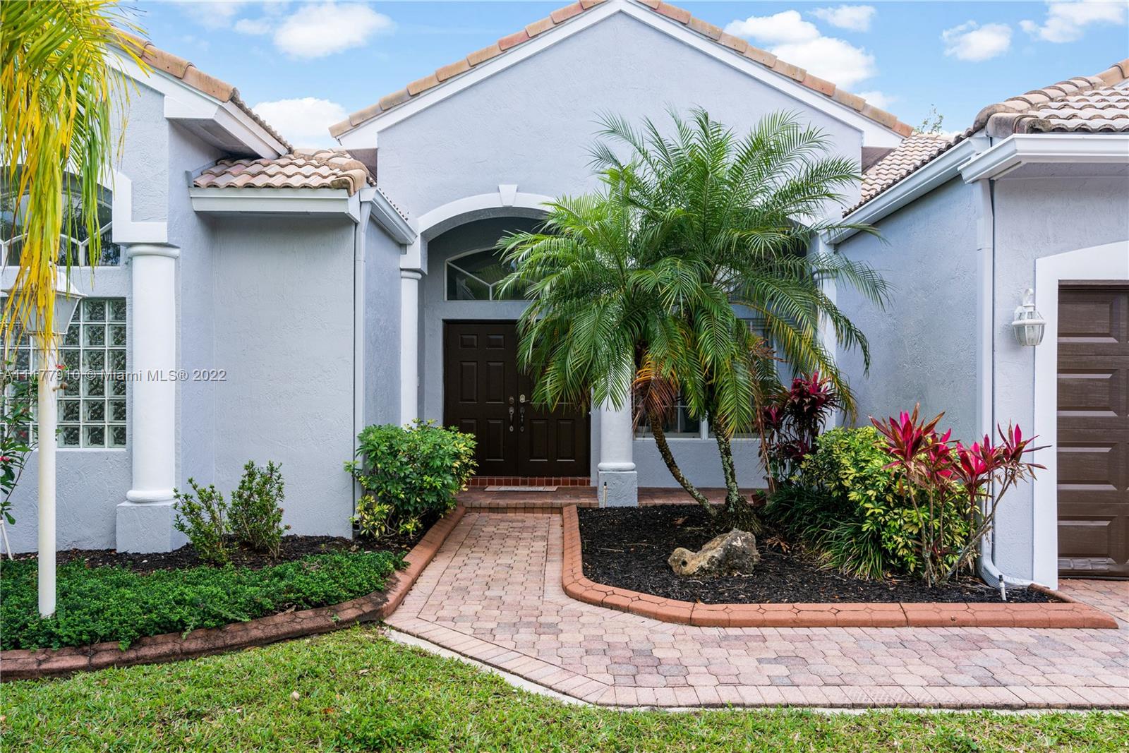 **FABULOUS "YALE" MODEL IN SOUGHT AFTER PEMBROKE FALLS. **THIS POPULAR THREE-WAY SPLIT FLOOR PLAN FEATURES 4 BEDROOMS, 3 BATHROOMS, & 3 CAR GARAGE. **MODERN PORCELAIN TILE THROUGHOUT HOME AND NATURAL FINISH LAMINATE WOOD FLOORING IN BEDROOMS. **OPEN AND SPACIOUS KITCHEN WITH GRANITE COUNTERTOPS, WOODEN CABINETS AND STAINLESS-STEEL APPLIANCES, WINE COOLER, AND BRAND NEW FRIDGE **ELEGANT MASTER SUITE WITH 2 WALK-IN CLOSETS ** EXTENDED PATIO WITH BEAUTIFUL TRAVERTINE DECK PERFECT FOR ENTERTAINING * NEWER A/C UNIT AND WATER HEATER * EXTERIOR FRESHLY PAINTED IN 2022 **"EVERYTHING YOU NEED" GATED COMMUNITY WITH AMAZING RECREATION CENTER ** COMMUNITY OFFERS NATURAL GAS TO THE RESIDENTS ** HOA INCLUDES FIBER OPTIC CABLE, HIGH-SPEED INTERNET ACCESS, ALARM AND MUCH MORE!!