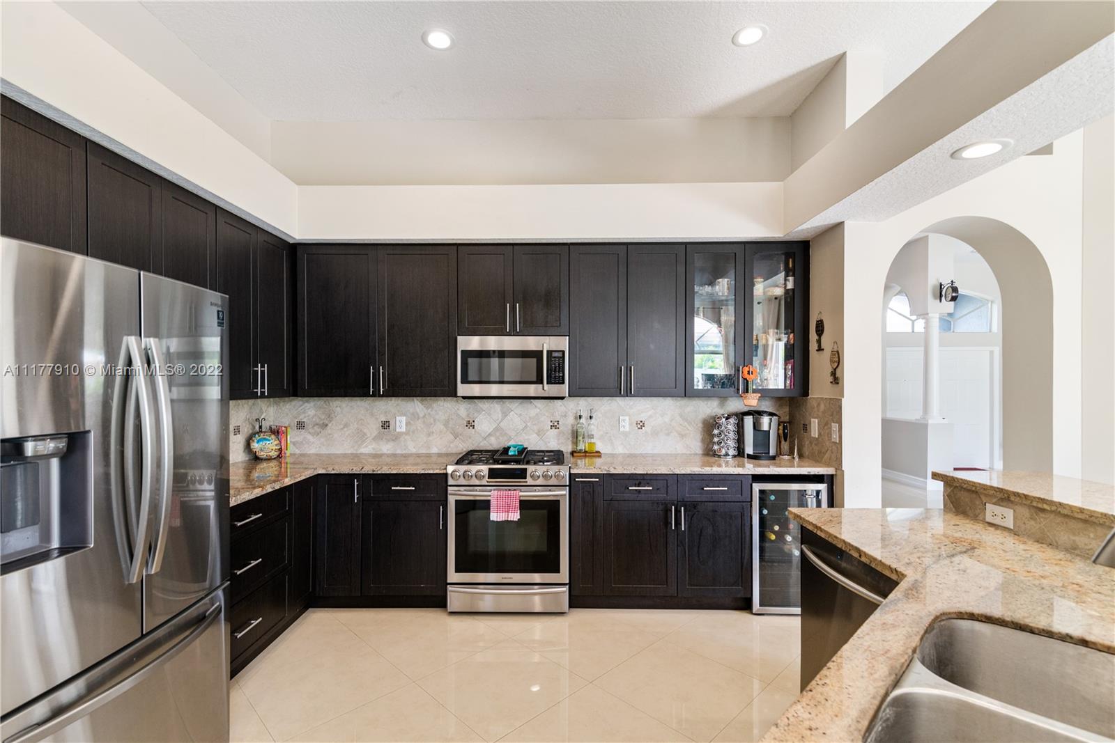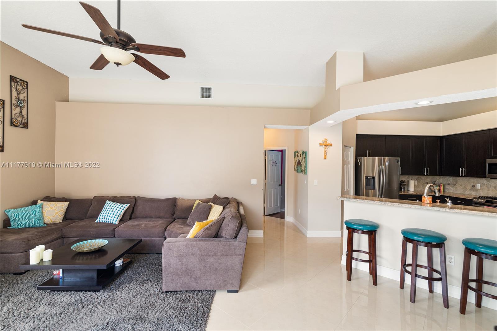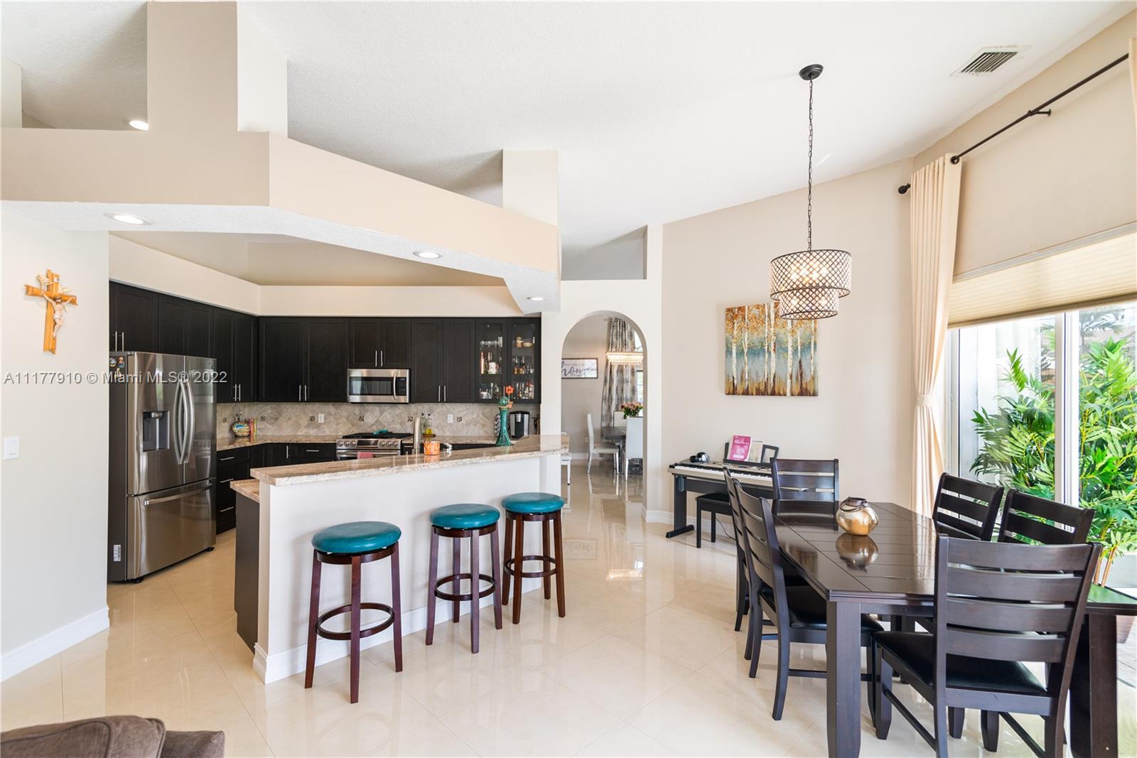 **FABULOUS "YALE" MODEL IN SOUGHT AFTER PEMBROKE FALLS. **THIS POPULAR THREE-WAY SPLIT FLOOR PLAN FEATURES 4 BEDROOMS, 3 BATHROOMS, & 3 CAR GARAGE. **MODERN PORCELAIN TILE THROUGHOUT HOME AND NATURAL FINISH LAMINATE WOOD FLOORING IN BEDROOMS. **OPEN AND SPACIOUS KITCHEN WITH GRANITE COUNTERTOPS, WOODEN CABINETS AND STAINLESS-STEEL APPLIANCES, WINE COOLER, AND BRAND NEW FRIDGE **ELEGANT MASTER SUITE WITH 2 WALK-IN CLOSETS ** EXTENDED PATIO WITH BEAUTIFUL TRAVERTINE DECK PERFECT FOR ENTERTAINING * NEWER A/C UNIT AND WATER HEATER * EXTERIOR FRESHLY PAINTED IN 2022 **"EVERYTHING YOU NEED" GATED COMMUNITY WITH AMAZING RECREATION CENTER ** COMMUNITY OFFERS NATURAL GAS TO THE RESIDENTS ** HOA INCLUDES FIBER OPTIC CABLE, HIGH-SPEED INTERNET ACCESS, ALARM AND MUCH MORE!!