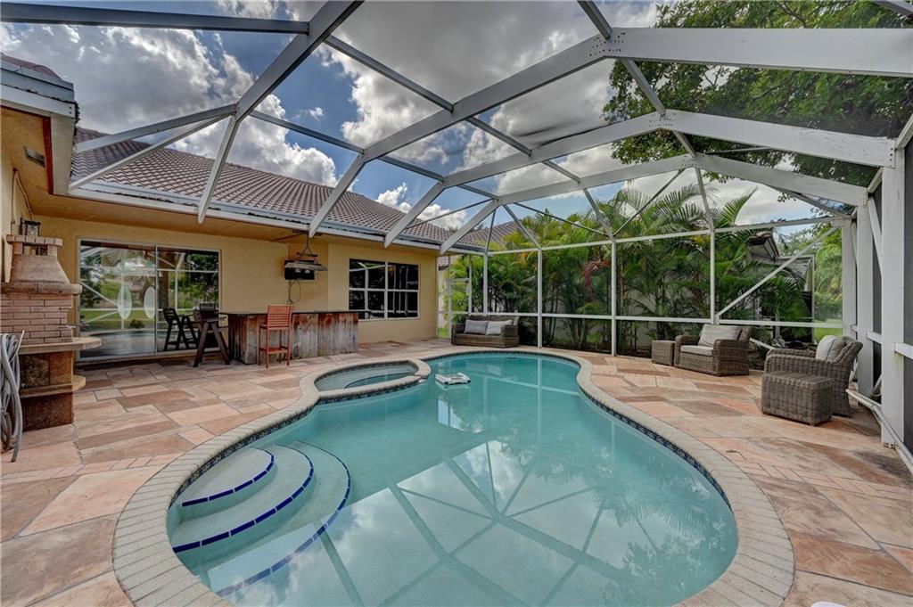 Amazing opportunity to own this beautiful 4/2.5 waterfront/pool home in highly sought after Parkwood X in Coral Creek. Your backyard oasis is surrounded by lush landscaping w/screened-in patio & pool overlooking serene water views. This single story home features: 2014 AC, open concept dining/living room w/decorative wood accent wall & built in bar, real wood floors thru-out, updated kitchen w/Granite counters, SS appliances & breakfast area, vaulted ceilings w/recessed lights & large laundry room. Master suite boasts tray ceiling, His/Her walk-in closets, dual sinks, separate tub & step-in shower. Low HOA fee includes common areas. Close to schools, shopping, dining & Sawgrass.