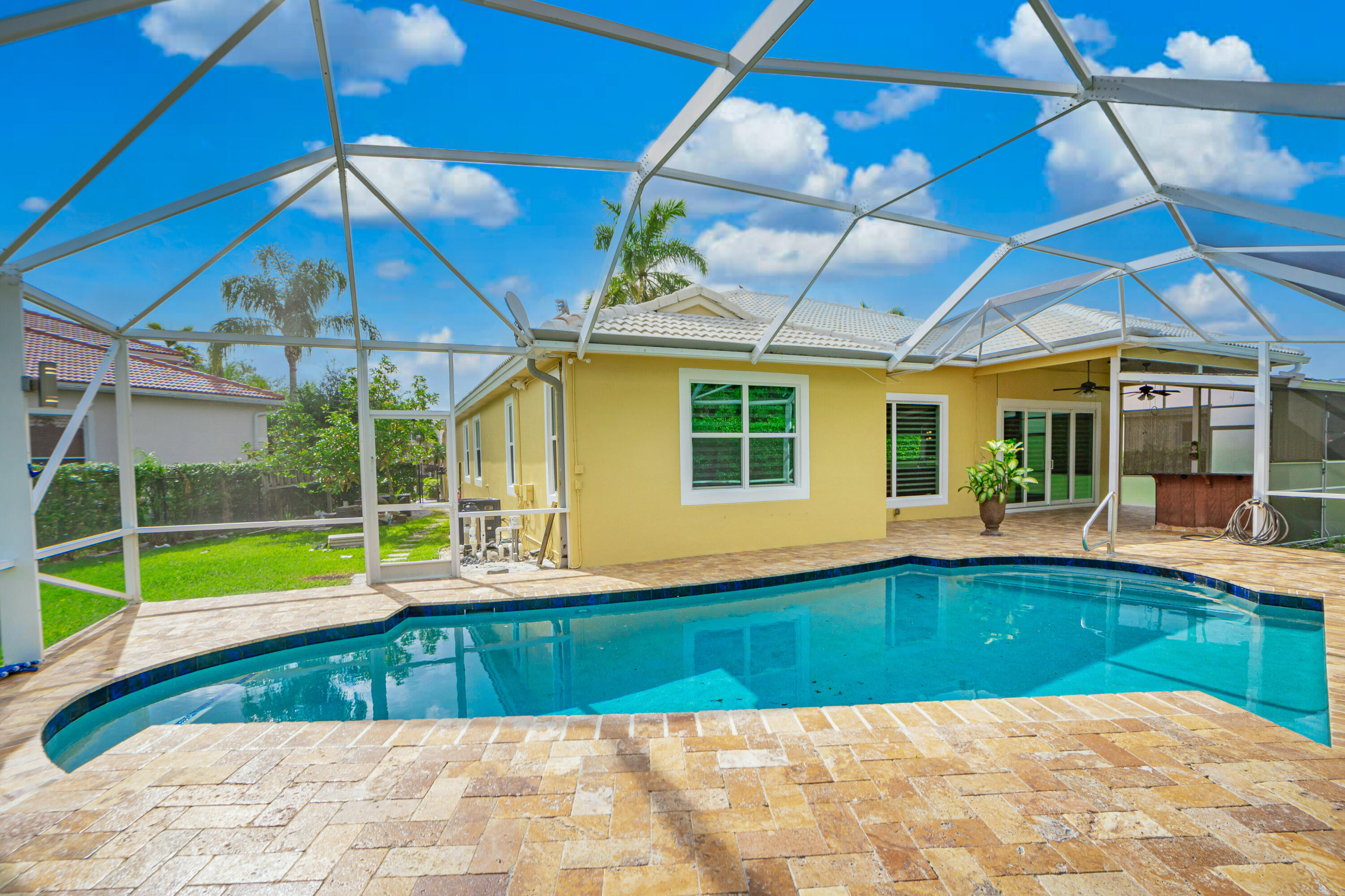 THIS HOME IS A SHOW STOPPER! NEW ROOF MAY 2022 with warranty. A Cul de Sac with 4 Bedrooms and 2 and a half bath with its own private salt water pool with LED lights. With its 3-way Split Plan, covered patio, outdoor kitchen with wine cooler, charcoal oven and sink, jacuzzi tub in updated bathroom and central vacuum. The 4th bedroom can be a flex room. The house has a very good storm protection with its impact windows, a His and Hers Closet and a totally updated Master Bath and CCTV camera around the premises. It's also conveniently located by the schools and within the highly desired Boca Winds Community.