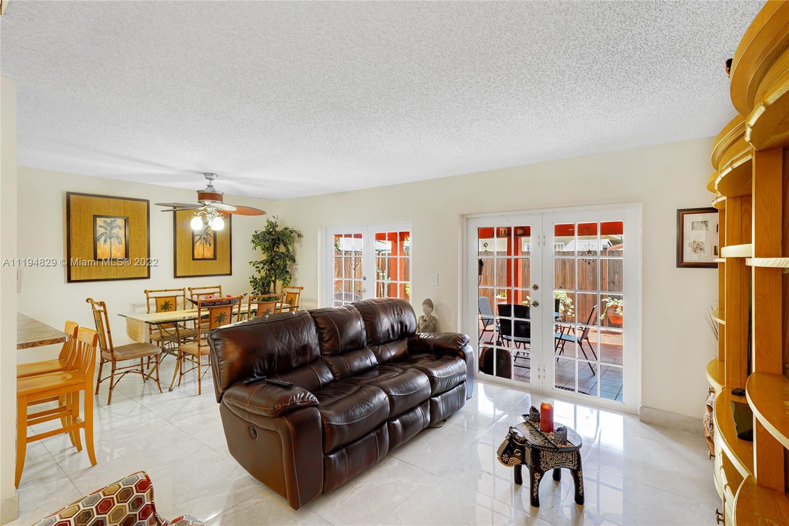 Prepare to fall in love with this beautiful townhouse! Located on a corner unit this lovely abode offers a front courtyard and charming entrance. On the first floor you have a full bathroom, charming open concept kitchen overlooking the living quarters with plenty of natural light coming from the French doors that lead you to the back patio. Large den with 4 skylights and high ceilings. This space can be used as an office, children's playroom or additional bedroom/family room. Upstairs you have 1 full bathroom and 3 bedrooms including the primary suite where you have an additional personal restroom. Private fenced backyard with great space for entertaining or simply enjoy the wonderful year-round weather. Impact windows and porcelain tiles throughout. Community offers pool and clubhouse.
