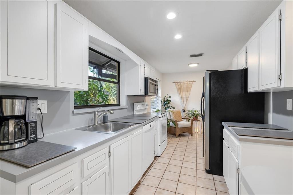 Adorable 3BD/2BTH located in Guardian Estates! This ranch home is a welcoming open concept with a modern color palette. Large great room is perfect for any family and there is an adjacent dining area. Kitchen features a dining nook, breakfast bar, plenty of white cabinets for storage, SS Appliances, and recessed lighting. Flex space off kitchen can be used as additional family room or office space. Master bed features a master bath and Spacious walk-in closet. Both bathrooms have updated vanities, and there are ceiling fans throughout for warm Florida days. You'll find TONS of natural light throughout, and love enjoying coffee on the peaceful screened-in porch surrounded by mature landscaping. There is also an extended grill pad to park your grill. Schedule your showing before it’s gone!