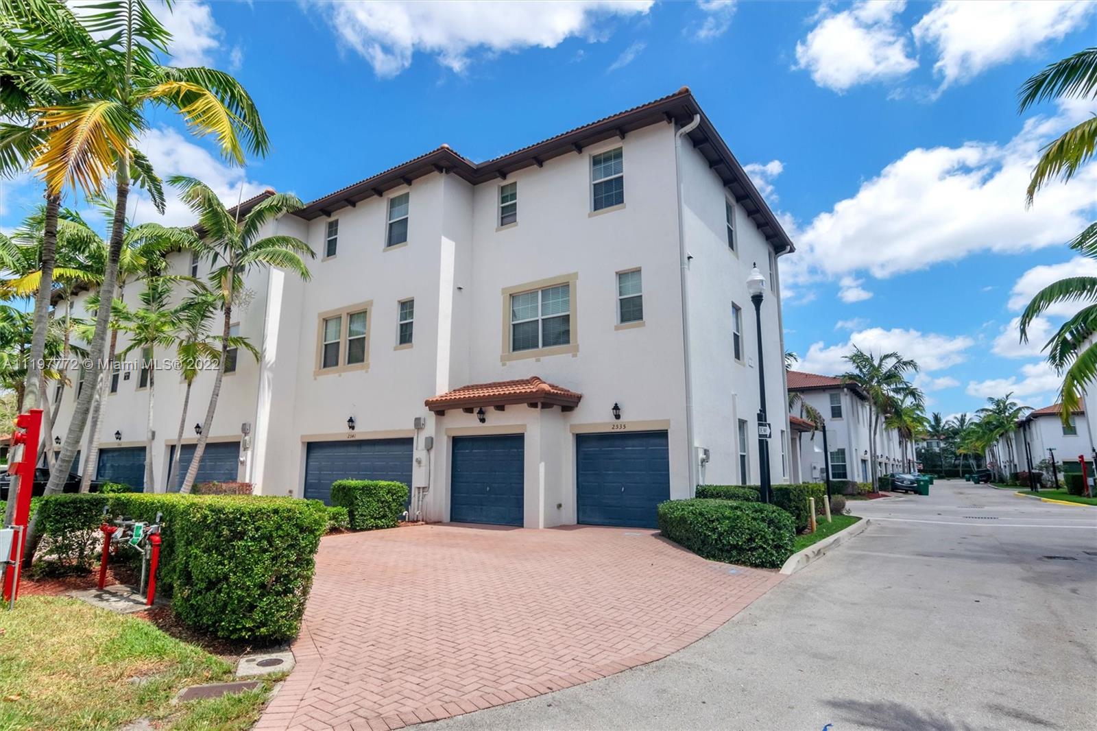 Beautiful Corner Unit in Montclair at Miramar! Built in 2013, One Bedroom One Bath on First Floor, Master Bedroom with master Bath and Third bedroom with its own bathroom on third floor. Impact Windows. 2 Car Garage + Driveway for 2 cars. Playground in front of unit and many guest parking in front as well.Centrally located community, close to shopping centers, hospital, schools and parks. Community offers Swimming Pool, Fitness Center , 3 Playgrounds and Jogging Path around lake. Association includes Cable, internet , Building exterior maintenance and amenities.