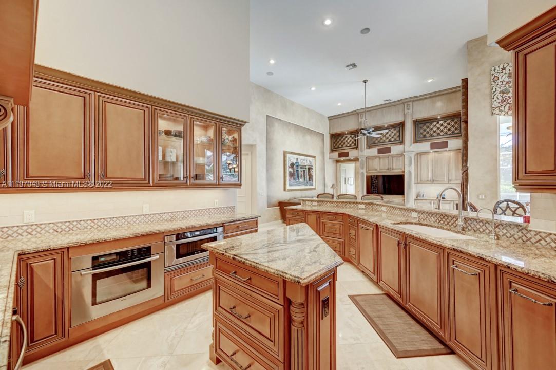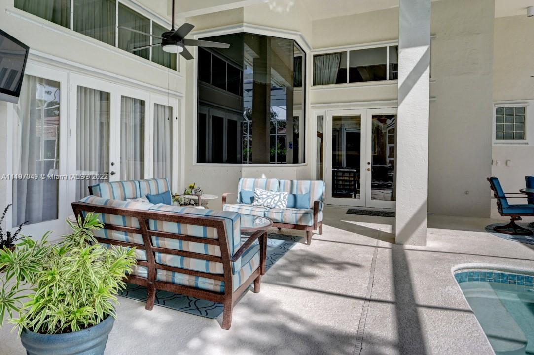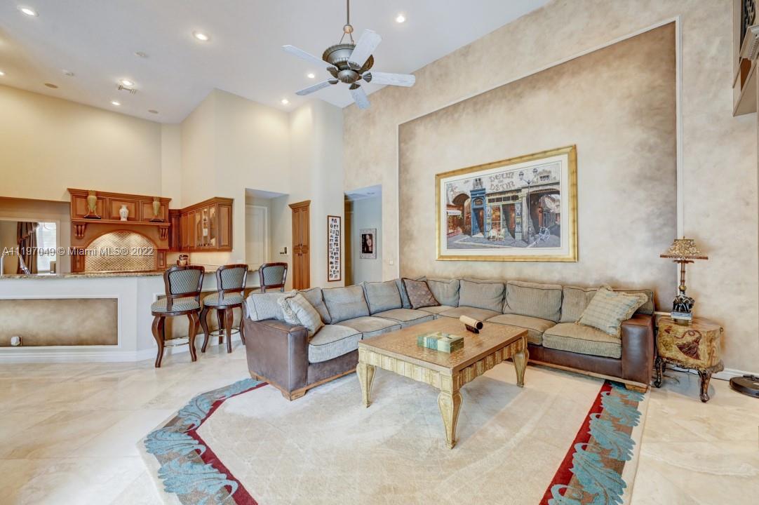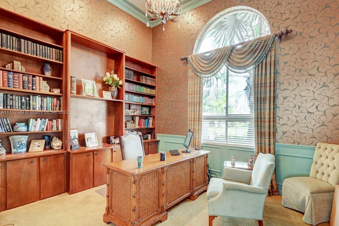 Wonderful opportunity to own this 4 bedroom 4 bath home in the guard gated golf community of Eagle Trace. This 3-car garage gem has approx. 3600 sf under air and is situated on a double cul-de-sac on one of the largest lots in Eagle Trace! Extensive renovations, upgrades and designer finishes throughout. In addition to 4 bedrooms and 4 full baths, there's an office/library, a loft, and a large enclosed pool and patio. Marble floors and 16' ceilings throughout the main living areas. Granite kitchen with Wolf cooktop, Bosch appliances, Sub-zero refrigerator. Furnishings available.