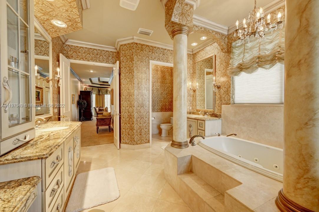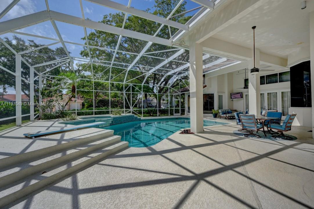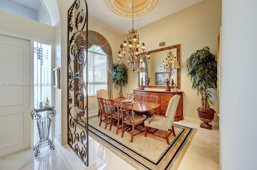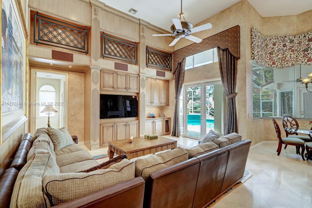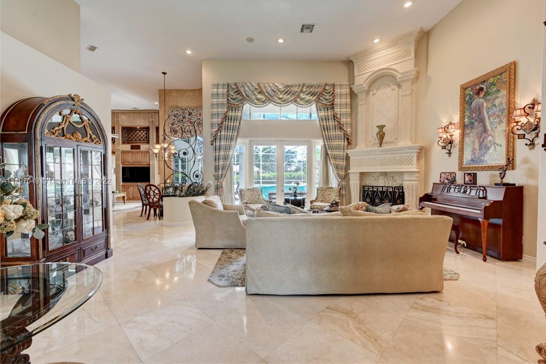 Wonderful opportunity to own this 4 bedroom 4 bath home in the guard gated golf community of Eagle Trace. This 3-car garage gem has approx. 3600 sf under air and is situated on a double cul-de-sac on one of the largest lots in Eagle Trace! Extensive renovations, upgrades and designer finishes throughout. In addition to 4 bedrooms and 4 full baths, there's an office/library, a loft, and a large enclosed pool and patio. Marble floors and 16' ceilings throughout the main living areas. Granite kitchen with Wolf cooktop, Bosch appliances, Sub-zero refrigerator. Furnishings available.
