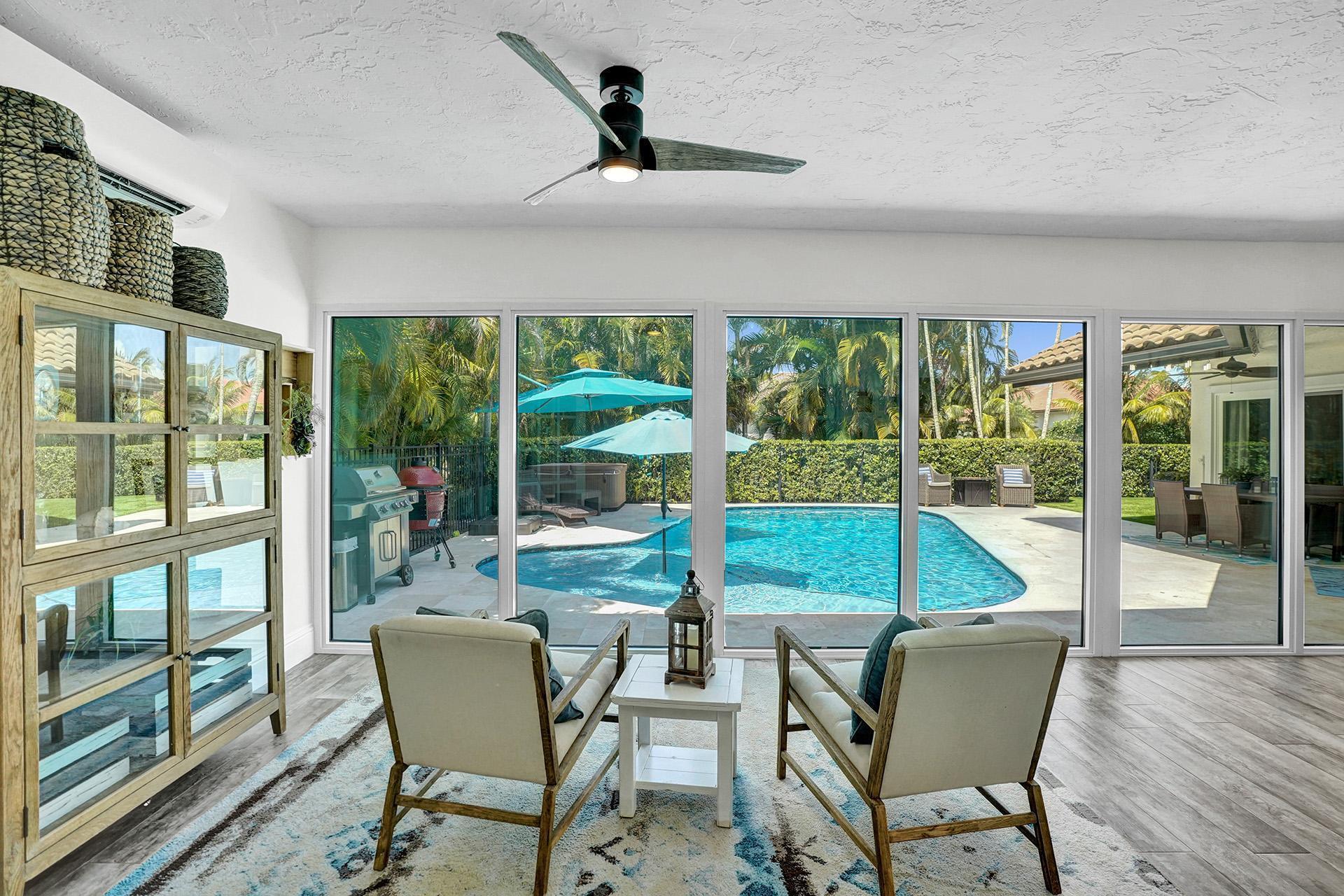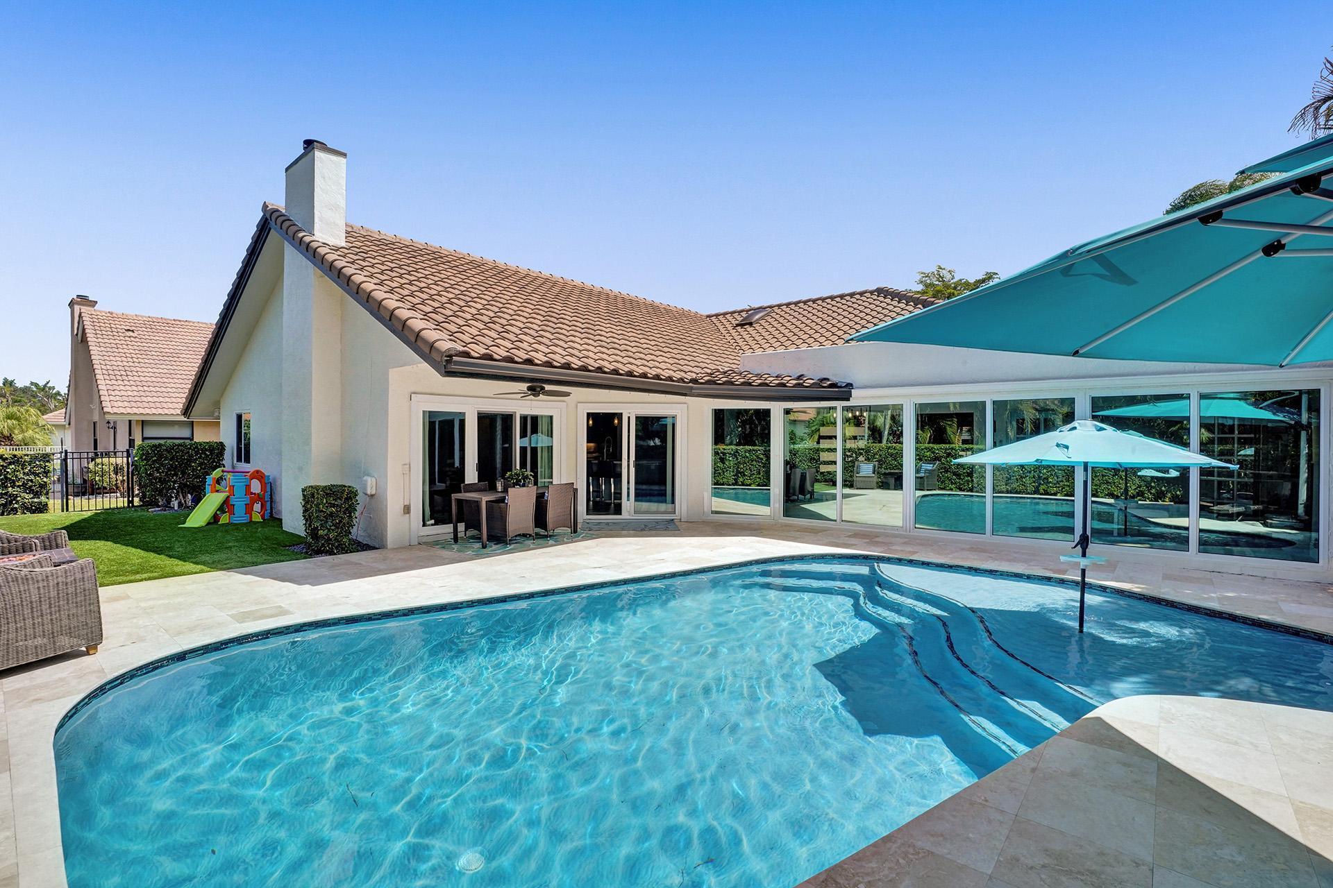 Updated from top to bottom, new roof to gorgeous new Italian floors and everything in-between. Located in the coveted tree-lined gated community of Parkside, newly zoned for East Boca's Addison Mizner K-8 school. Upon arrival, guests are instantly captivated by the beautiful volume ceilings and sparkling pool views. Home is completely hurricane impact protected with the highest grade windows and doors. Newly resurfaced heated pool with sundeck and turf yard, perfect for backyard gatherings. Fresh ultra-modern primary bathroom is complete with steam shower, marble tile, elegant stone tub, private covered patio, sauna, designer master closet and a custom glass linen closet that will leave you speechless. Gourmet kitchen with quartz counters. Showing Wednesday & Thursday by appointment.
