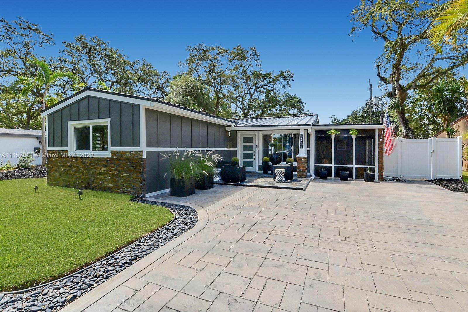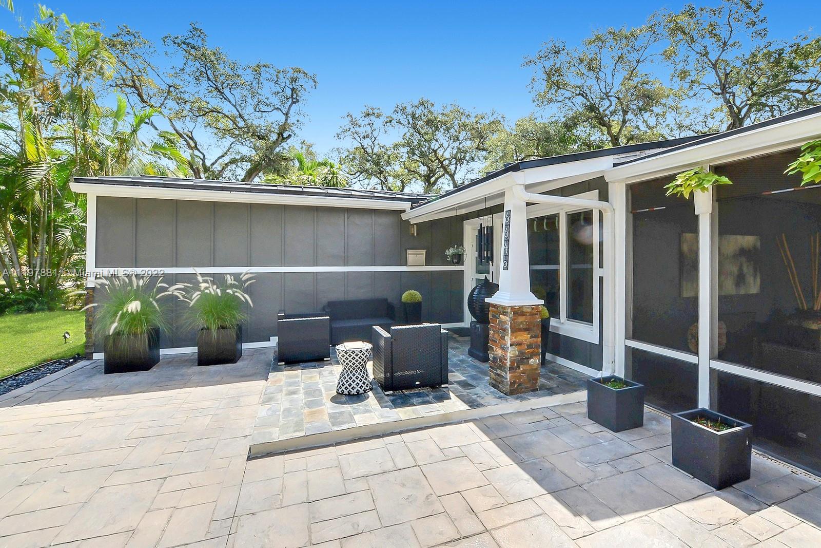 ONE OF A KIND MODERN HOME HAS BEEN COMPLETELY UPDATED INSIDE & OUT WITH OVER $165,000 OF IMPROVEMENTS. STUNNING EXTERIOR EXUDES STYLE COMPLETE W A BRAND NEW METAL ROOF, STACKED STONE & BOARD & BATTEN DETAIL & FABULOUS SCREENED COURTYARD LOUNGE W STUNNING SLATE TILE FLOORING. GORGEOUS KITCHEN OFFERS WOOD CABINETS, GRANITE COUNTERTOPS, STAINLESS STEEL APPLIANCES & FRENCH DOORS TO THE BACKYARD PERFECT FOR ENTERTAINING. ROOMS ARE BRIGHT & AIRY W PLENTY OF LIGHT RADIATING ALL AROUND. SPECTACULAR LAUNDRY ROOM IS SO DREAMY, YOU'LL WANT TO DO LAUNDRY. PRIVATE FENCED YARD IS AN ENTERTAINER'S PARADISE FEATURING FIRE PITS, BUNGALOW & SCREENED PRIVATE PATIO ALL SURROUNDED BY LUSH LANDSCAPING. IMPACT WINDOWS, LONG OVERSIZED STAMPED CONCRETE DRIVEWAY FITS MANY CARS. WALK TO HOUSES OF WORSHIP. NO HOA.