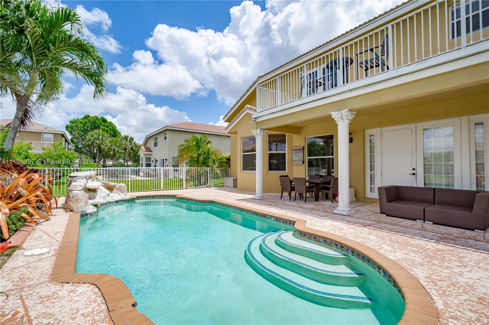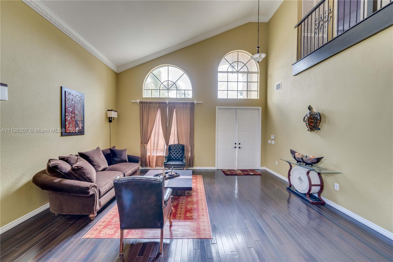 Beautiful 4/3 two story home in sought after guard gated Silver Isles! This home boasts volume ceilings, beautiful hardwood floors, and a bedroom and full bath on the first floor! The first floor offers expansive living areas ideal for any entertainer! Gourmet kitchen with granite counter tops and stainless steel appliances with views of the pool area and lake! Expansive master suite featuring his and hers bathroom , walk-in closets, and a private balcony overlooking lake and pool.