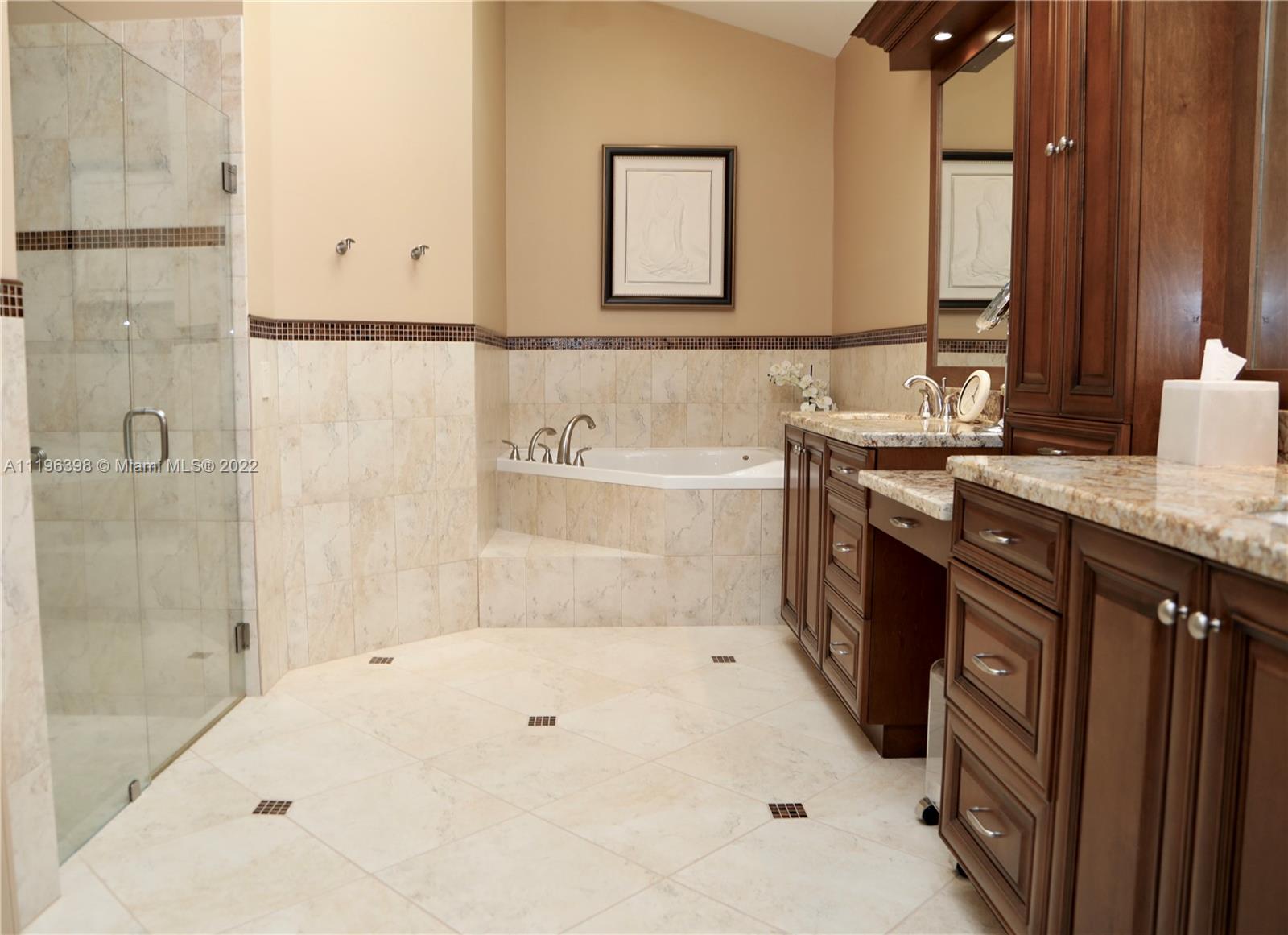 Amazing Resort Living in Grand Palms Golf Community - La Costa Subdivision. 4 Bedroom 3.5 Bathroom 2 Story Spa Lake home. Large open bright airy split bedroom floor plan. Master bedroom on the first floor and has access to a beautiful in ground spa hot tub with lake view. Home is move in ready and immaculate condition. Gorgeous custom kitchen with top notch custom cabinets granite and appliances. Master bedroom upgraded spa bathroom with custom cabinets & jacuzzi. Huge custom walk-in closets. Tile floors on lower level. Custom office builtin furniture. Great for anyone that needs a professional home office. This home has tons of upgrades to include plantation shutters, accordian shutters, remote controlled sun awnings, skylights, A must see in person before gone.