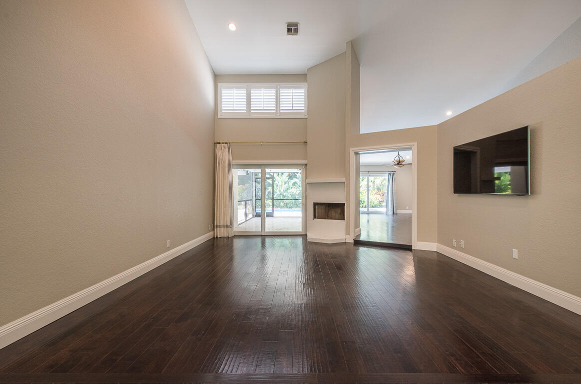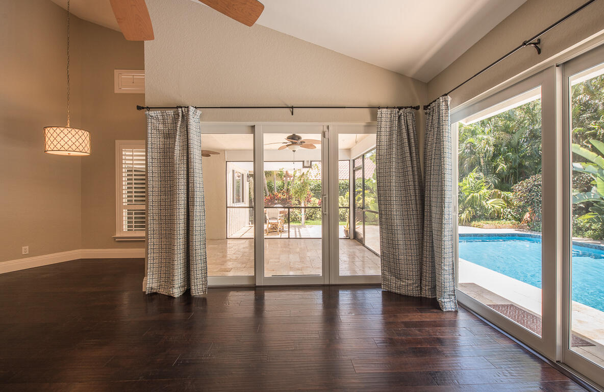 This impressive 4 bedroom 3 bath home comes complete with a heated pool and a 2 car garage as well as wood floors and plantation shutters throughout. Elegant vaulted ceilings meet you as you walk through the foyer. Recently remodeled this home is move in ready! Impact windows except for cabana bath door and block window. Roof 2012, A/C 2015, and updated outside electrical panel. Recently screened in back patio as well as stunning new landscaping around the pool. Enjoy the well manicured subdivision of Parkside along with the tree lined streets and manned gated community. Amenities include clubhouse, tennis courts, basketball courts, pickle ball courts and recently added volleyball courts. Great school district and near I-95, shopping, fine dining, beaches, Sugar Sand Park and more!