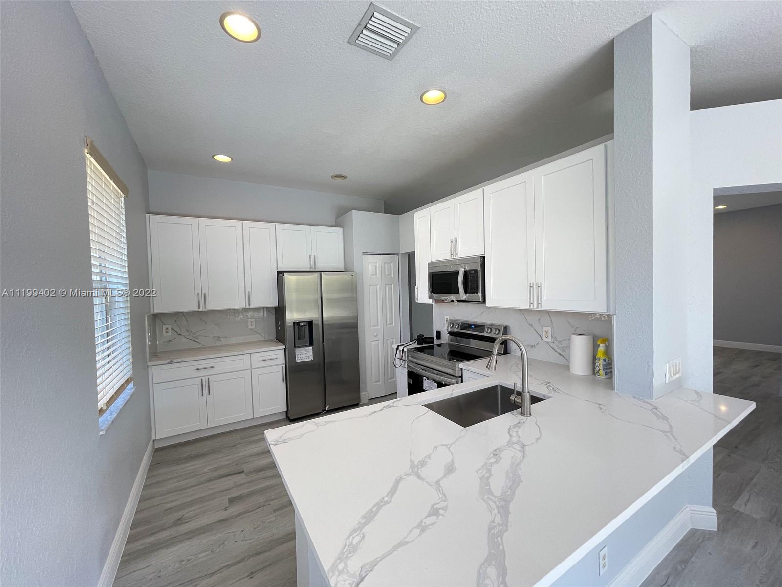 Just updated almost everything! Brand new kitchen and appliances, White solid wood cabinet and quartz countertop. New Vinyl floor, New Bathrooms, fresh painting. Beautiful 4/2 house located in a gated community in Weston, great schools. cul-de-sac lot with room for a pool. Savanna community with state of the art clubhouse with pools, water slide, kiddie water structure, miniature golf, patio, party pavilion area, playground, soccer field, basketball court and much more.
