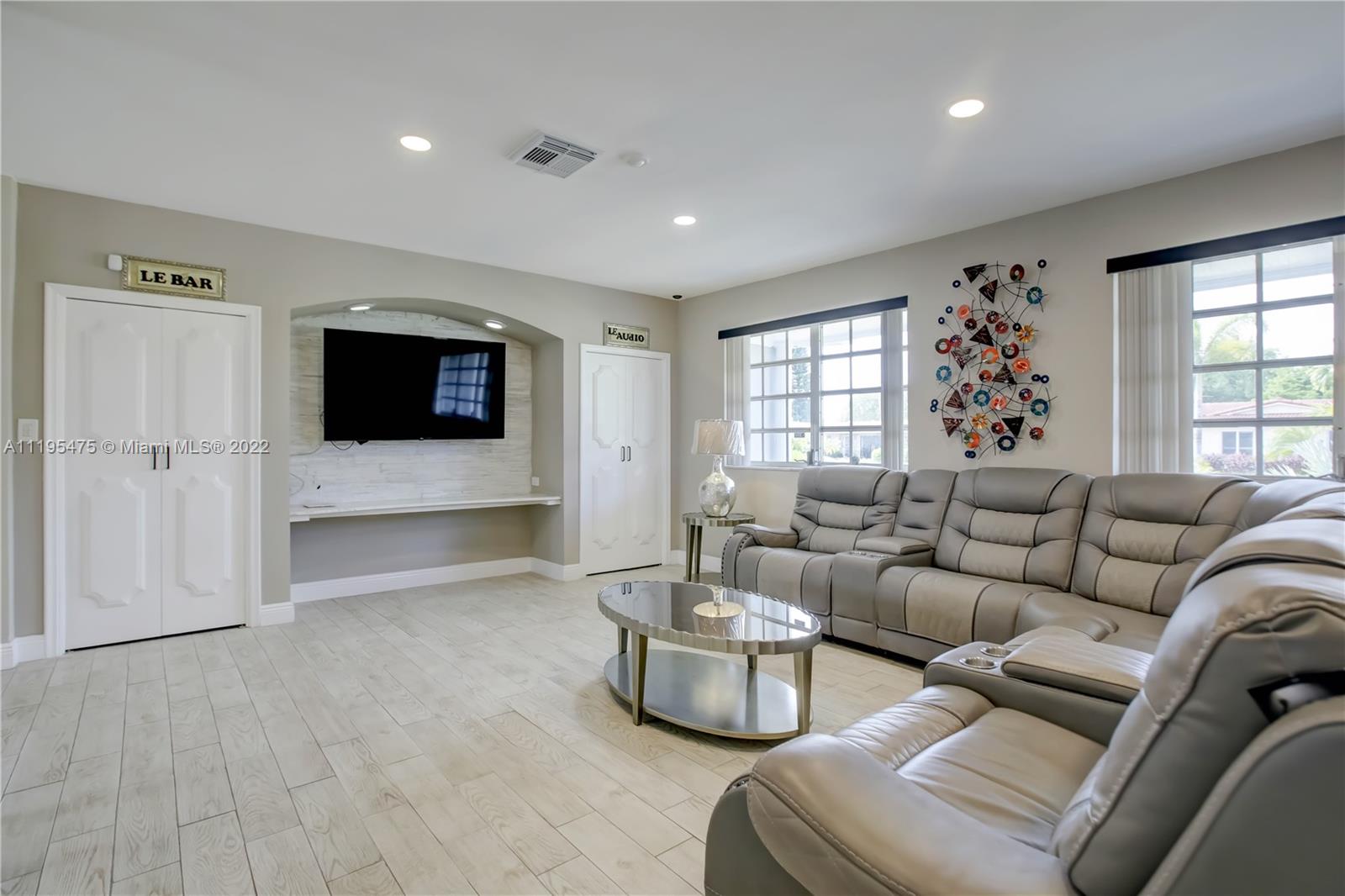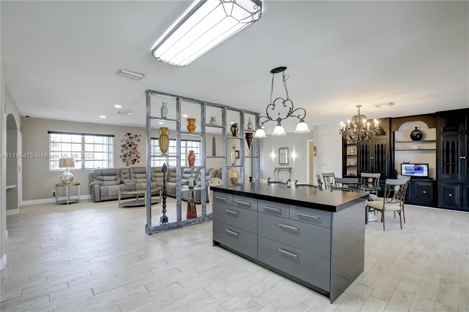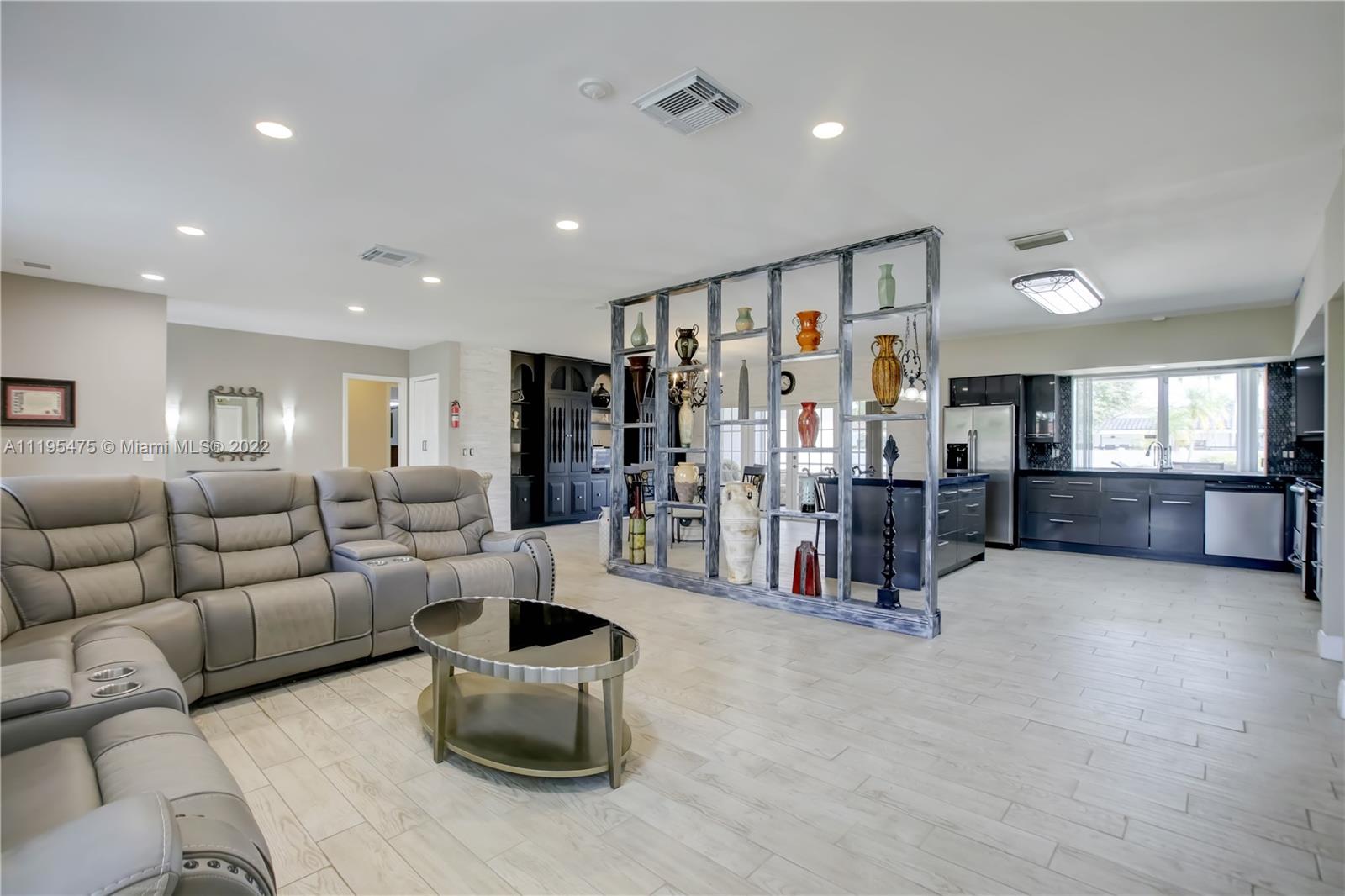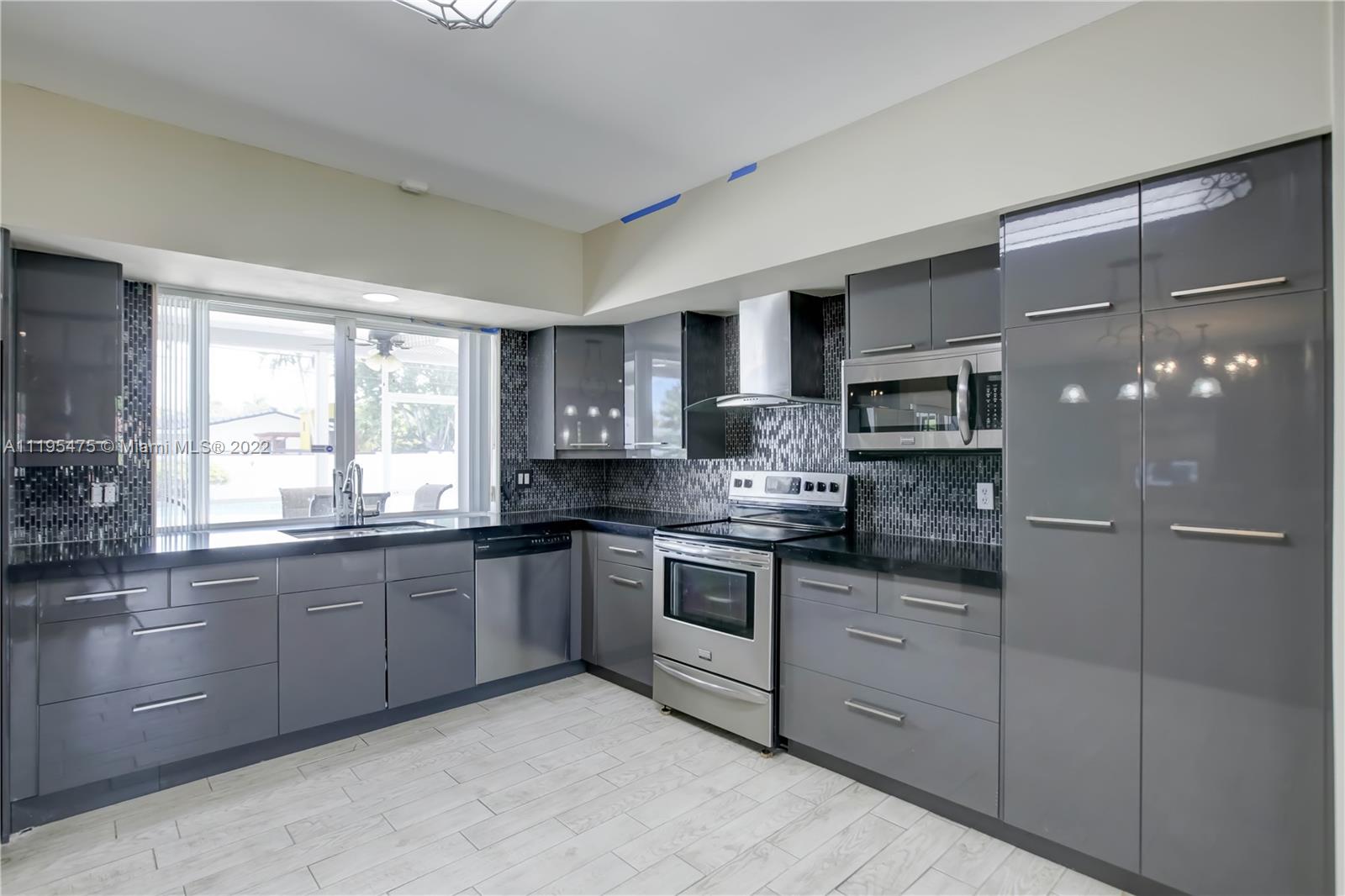 Gorgeous Modern Open Floor Plan as soon as you open the door. Kitchen, Family Room, Dining Area, Living Area are all in 1 open space. Amazing home to entertain with your Family and Friends. You will love this large backyard with new pool deck 2022 and oversized screen porch. Porcelain Tile Throughout, New Kitchen 2013, All new bathrooms 2022, New Flat Roof 2021, New AC 2020, New Tankless Water Heater 2019. Bar area, electronic closet, Cabana Bath, Circular Driveway, Hurricane Panels. Close to all restaurants, turnpike, 95. One of the nicest homes in the area. No HOA. Perfect for AIRBnb and Vacation rentals.
