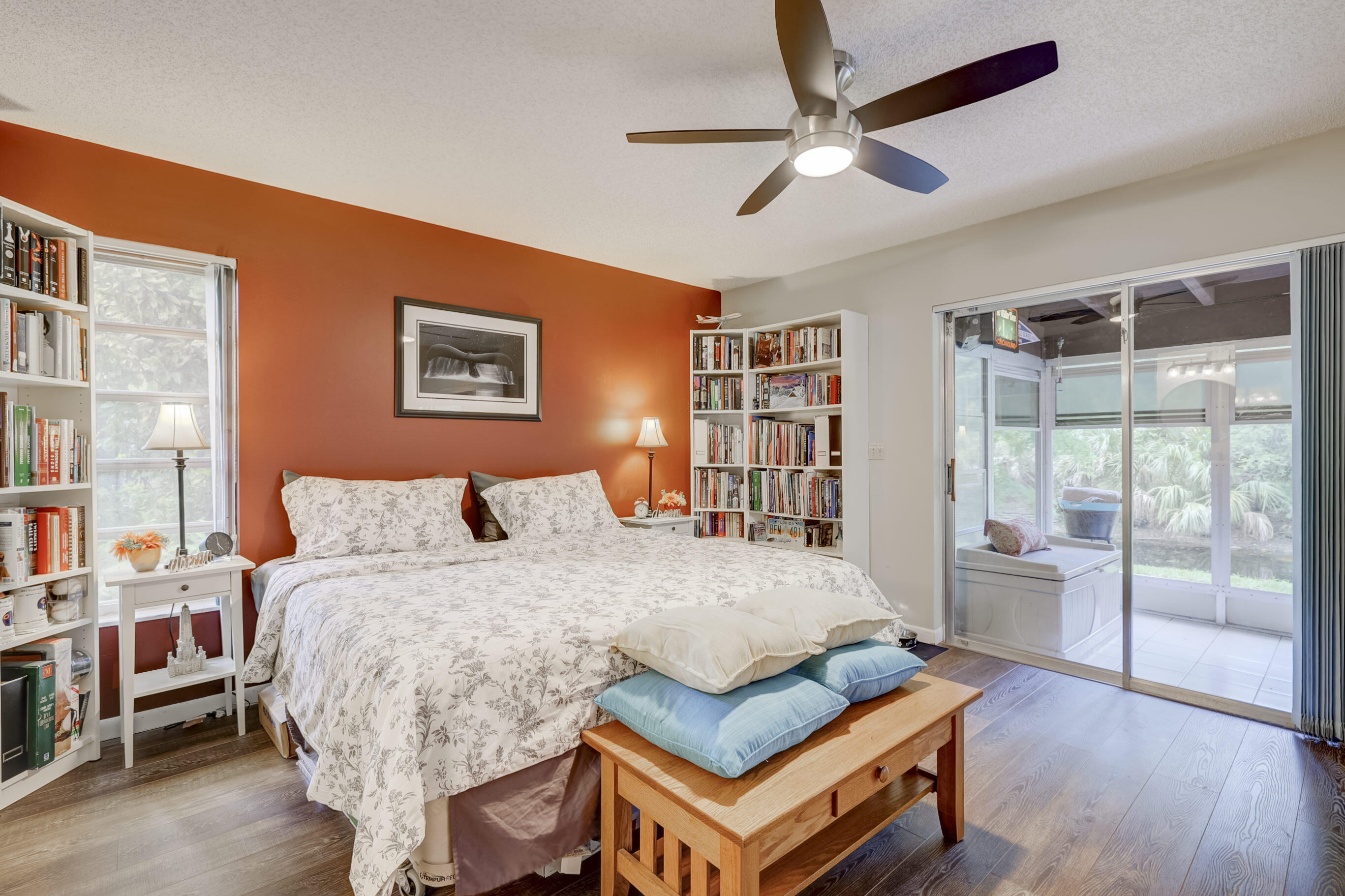 Welcome to this unique and rarely available 2 bed/2 bath/2 car garage home , with magnificent preserve and water views and low HOA . This house features Barrel tile roof replaced June 2006 . 3 ton AC compressor and air handler replaced 2016 Hot water heater replaced 2019 Vaulted ceiling in living room New ceiling fans .Bright and large living area opens to a generos size screened patio overlooking the canal and wooded preserve (very private). Luxury Vinyl Plank flooring throughout. Upgraded baseboards in living room and kitchen Porcelain plank tile flooring in kitchen Breakfast nook in kitchen Solid wood kitchen cabinets with crown molding and pantry. Soft close drawers and doors, new kitchen faucet Stainless Steel Appliances.