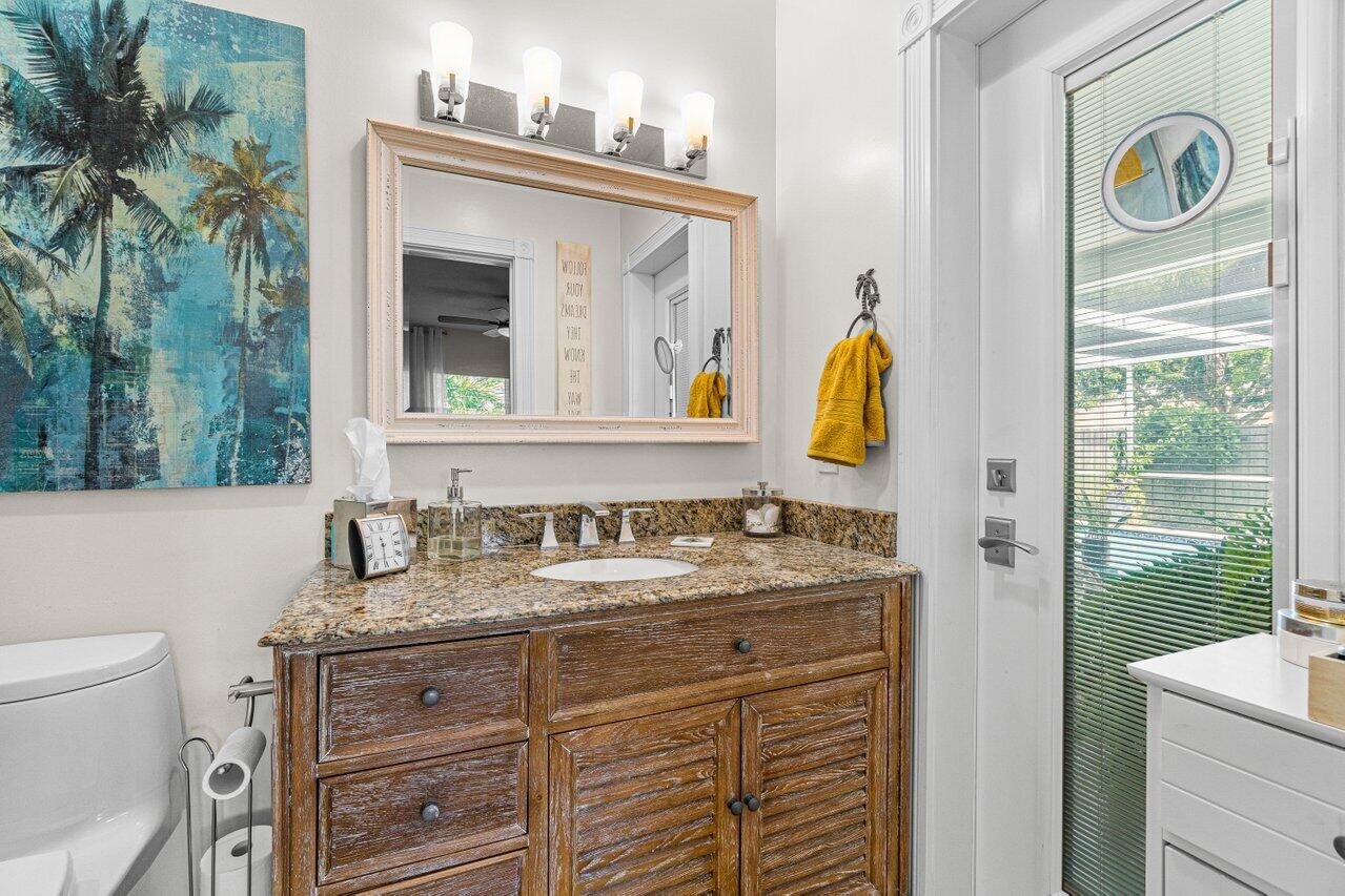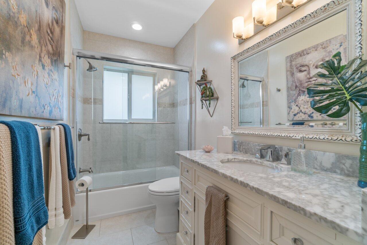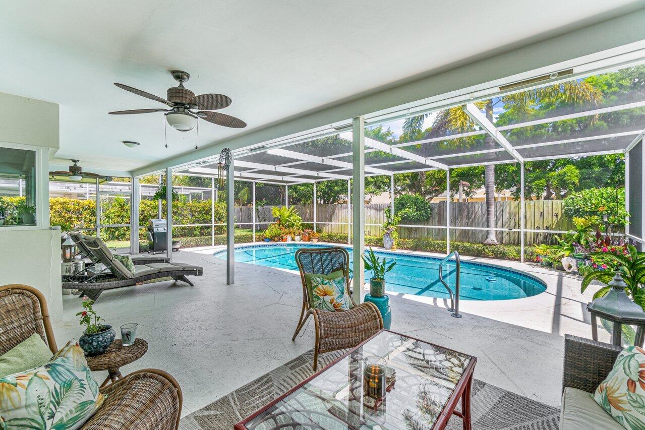 This spacious 2 bedroom home with additional office-den-family room in Camino Gardens is charming, renovated and move-in ready! Situated on a quiet street with no through traffic, mature landscaping, and great neighbors. Home features porcelain tile flooring throughout, remodeled kitchen with stainless steel appliances, updated bathrooms, and impact windows and doors. Primary bedroom boasts a custom closet and en-suite bathroom that doubles as a cabana bath. Spacious backyard with a screened in pool and expansive patio are perfect for entertaining, playing, or relaxing in your private oasis. Camino Gardens is a manicured and sought-after East Boca neighborhood in close proximity to A-Rated schools, beaches, shopping, restaurants, parks, golf and tennis.