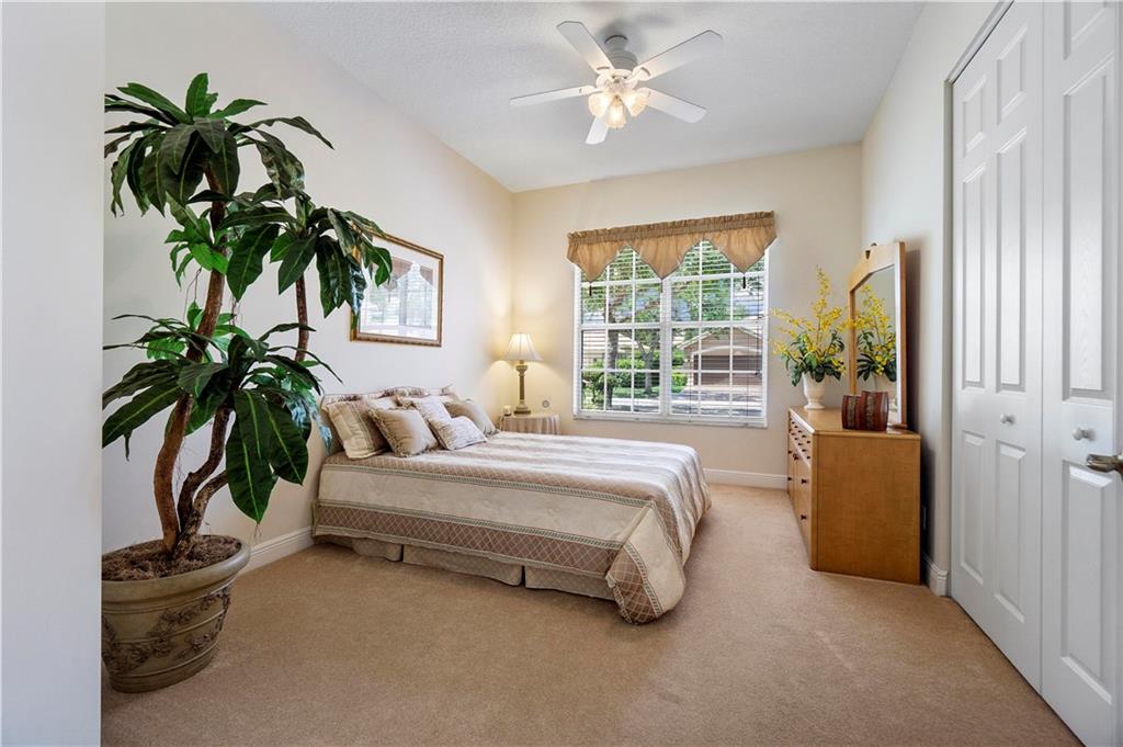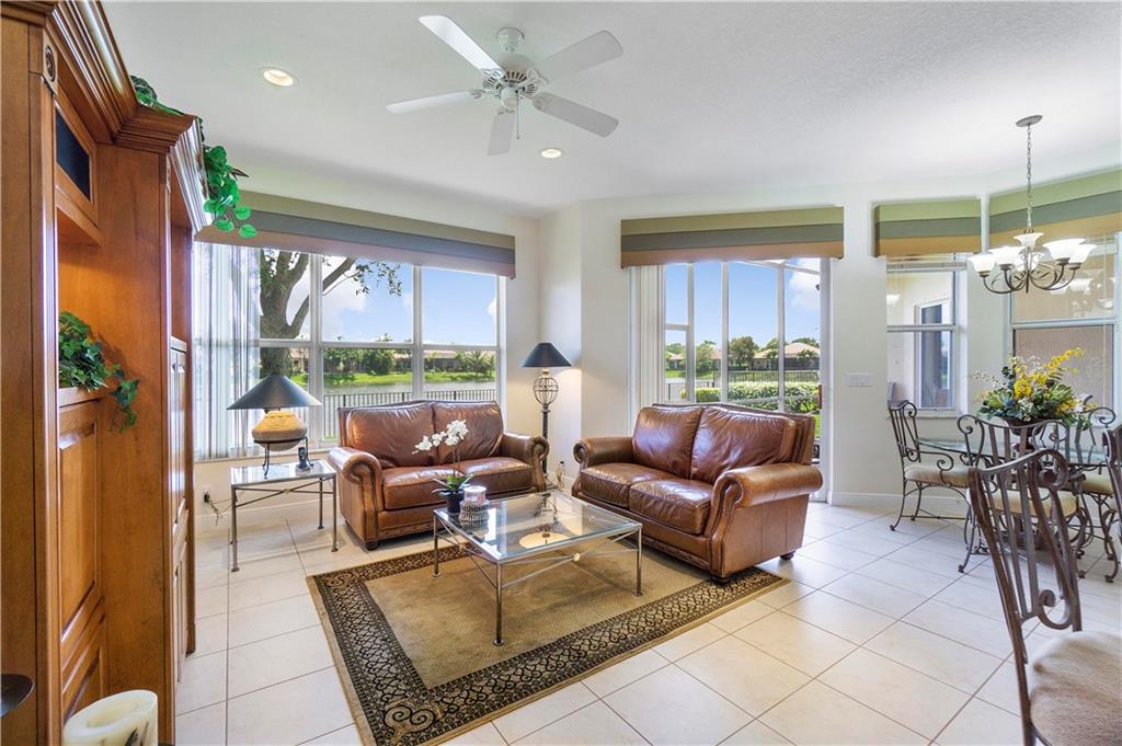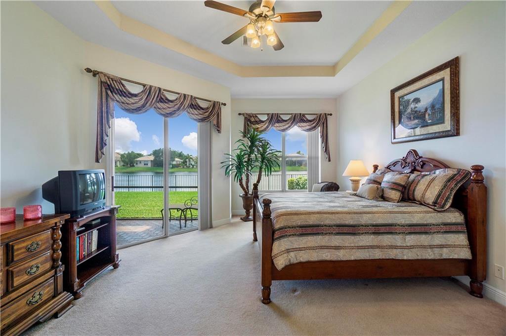 DESIRABLE GULFSTREAM MODEL FEATURES 4 BEDROOMS AND 3 FULL BATHS ON FABULOUS WIDE WATER. KITCHEN WITH WOOD CABINITS, GRANITE COUNTERTOPS AND BREAKFAST BAR THAT OVERLOOKS SPACIOUS FAMILY ROOM. HIGH VOLUME CEILINGS THROUGHOUT. CERAMIC TILE FLOORS IN LIVING AREAS AND UPGRADED NEUTRAL CARPETING IN BEDROOMS. VIEWS OF WIDE FLOWING WATERWAY FROM ALMOST EVERY ROOM! LUXURIOUS MASTER SUITE WITH TRAY CEILING AND WALK-IN CLOSETS WITH ORGANIZED CLOSET SYSTEM. MASTER BATH WITH WHITE CABINETS, ROMAN TUB AND WALK-IN SHOWER. LARGE LAUNDRY ROOM HAS LOTS OF CABINETS FOR STORAGE AND LAUNDRY SINK. LUSH TROPICAL LANDSCAPING AND BIG BACKYARD WITH ROOM FOR A POOL. GUARD GATED COMMUNITY WITH LOTS OF AMENITIES INCLUDING HEATED POOL/SPA, GYM, TENNIS, CLUBHOUSE, AND MORE.
