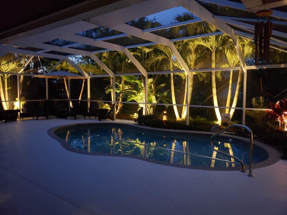 Immaculate 5bd 3.5ba 2 car garage CBS pool home 3,400sqft of living area! lushly landscaped pool home features smart home technology w/voice command, split flr plan, formal dining/living, large family room, spacious eat in kit w/island & breakfast bar, fireplace, large master suite w/2 walk in closets & office. Appliances 2022, roof 2013 Original floor plan had west side of house as a 775sqft guest house that was a 1 bedroom, living area & kitchen, w/private entrance. Outside features large cathedral (2013) screened pool patio, plus landscaped brick fire pit to enjoy starry nights on tropically landscape lot w/lighting.