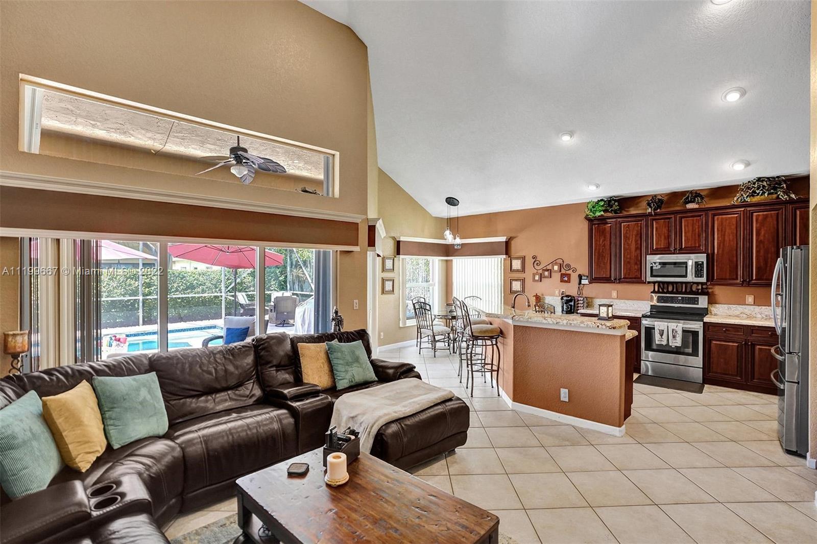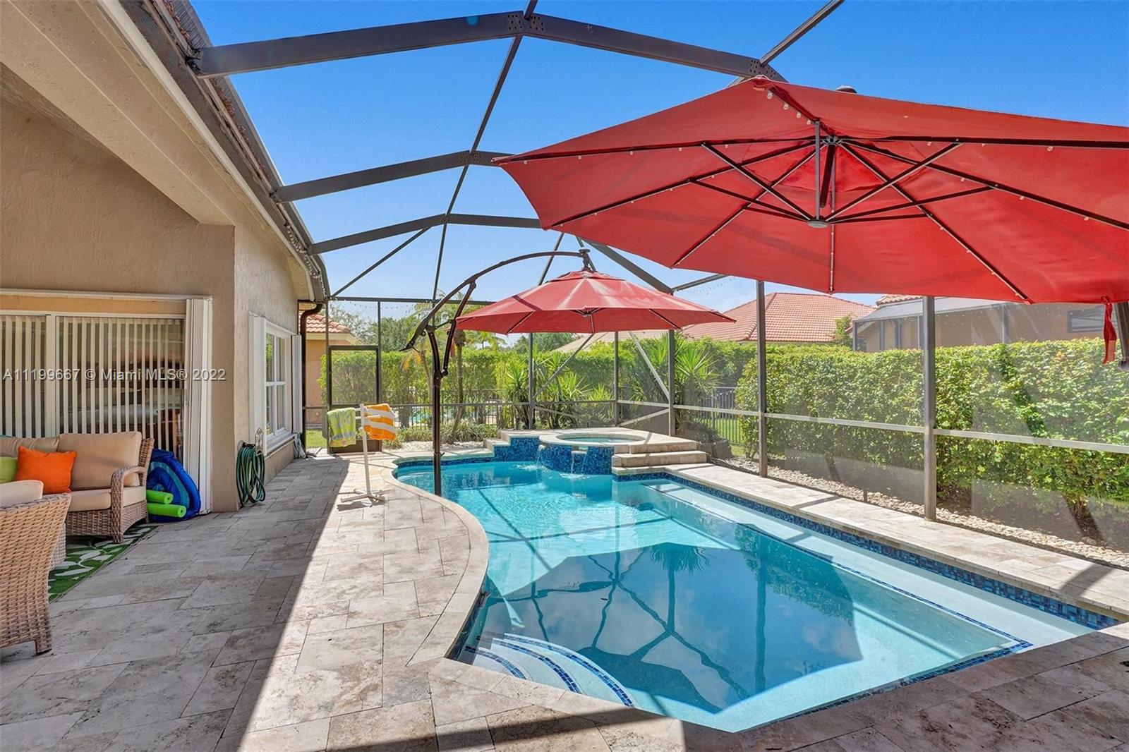 Wow! Beautiful Islamorada model featuring 4 bedrooms plus a loft with 3 full bathrooms with master suite downstairs located in Parkland Isles! Large screened patio with heated pool was just upgraded with travertine tile and a shelf around the entire pool to sit and relax. Tile & wood floors in living areas with carpet upstairs in the loft. High cathedral and vaulted ceilings. Newer air conditioners. Updated kitchen cabinets, granite, and newer stainless steel appliances in huge custom kitchen. Accordion hurricane shutters throughout. This is a must see! HOA includes comcast cable, high speed internet, ADT alarm monitoring, community pool, exercise room, teen room, tennis, plus much more. Walk to all A-rated schools!