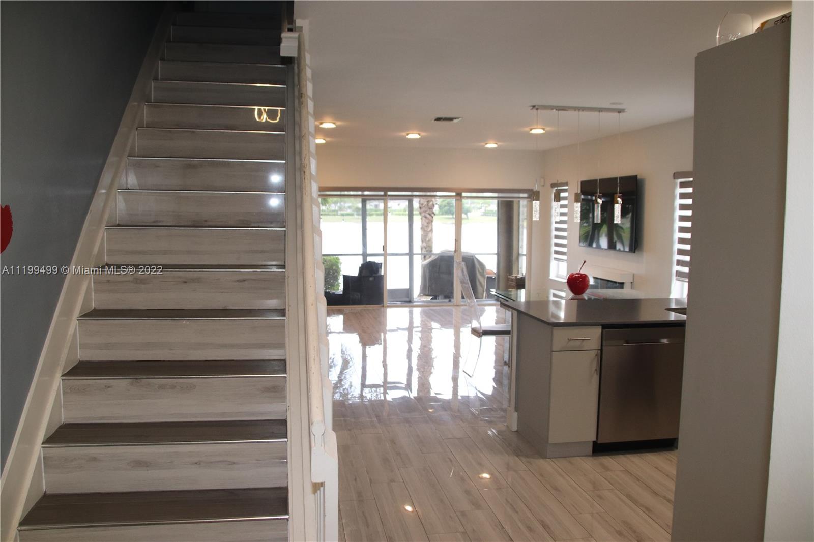 Lake view townhouse, corner unit, with 3 bedrooms, 2.5 baths with 1 car garage. Renovated kitchen, bathrooms and floor. Bright living and dining areas, open kitchen with quartz countertop and stainless steel appliances. Spacious master bedroom and walk in closets. Great lake views from rooms upstairs. Screened patio with amazing lake view. Blinds in all windows. Gated community which includes community pool, clubhouse, tennis court and gym. Lovely small pet room built under the staircase. Pets are welcome with some restrictions. AS IS ONLY. NOT SUBJECT TO APPRAISAL. CONTACT LISTING AGENT / APPOINTMENTS ONLY / 24 HR NOTICE REQUIRED.