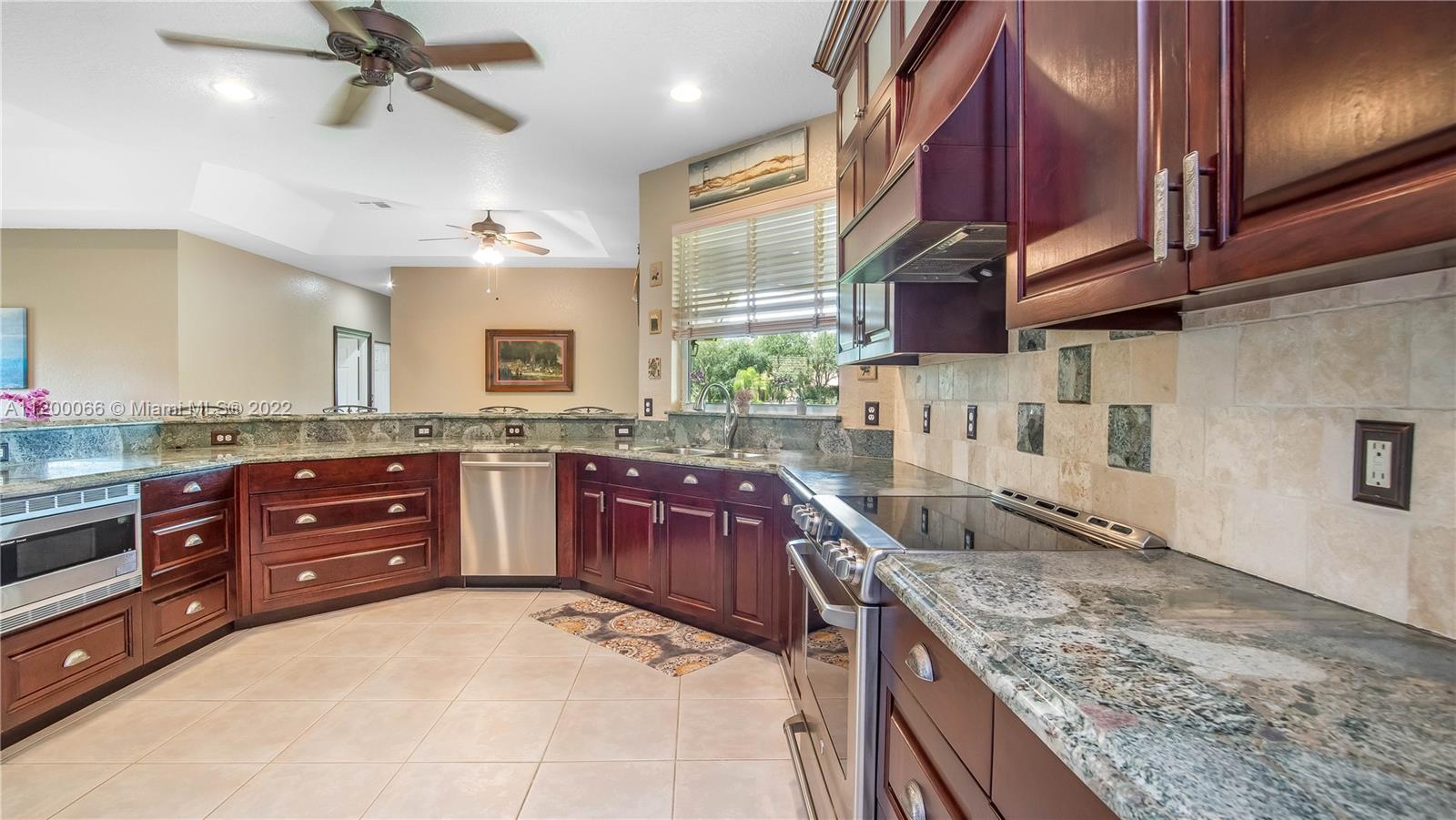 CALL THIS BEAUTIFUL home in Davie on 1.02 acres in desirable Kapok Estates HOME! Undeniable curb appeal when you pull up to this well maintained home. A fabulous floor plan allows flow from room to room making this PERFECT for entertaining with both living & family rooms. Split floor plan features 4 bedrooms & 3 baths. Large master with tray ceiling, built in shelving, 2 closets, hardwood floors & a beautiful master bath with his & hers vanities, soaking tub & separate shower! The granite kitchen is STUNNING with SS appliances, TONS of cabinetry, a huge snack bar & multiple pantries for even more storage! Kids & pets will love the fully fenced waterfront lot with room for a pool! IMPACT WINDOWS, NEWER ROOF & A/C's in an A+ SCHOOL SYSTEM located in a great neighborhood with just 38 homes!