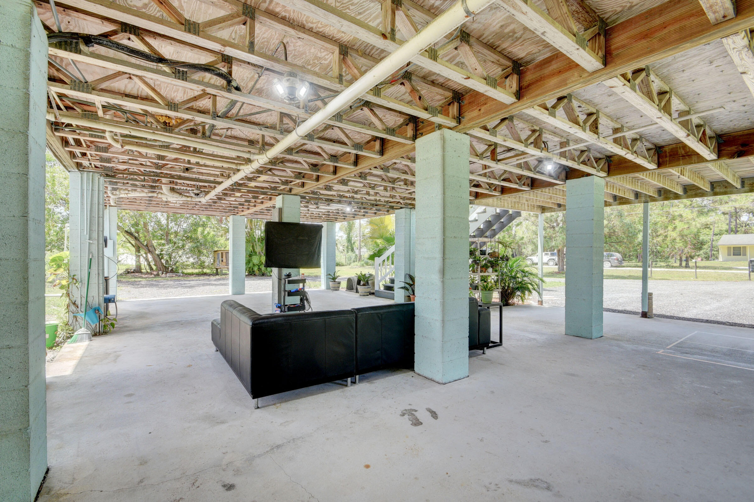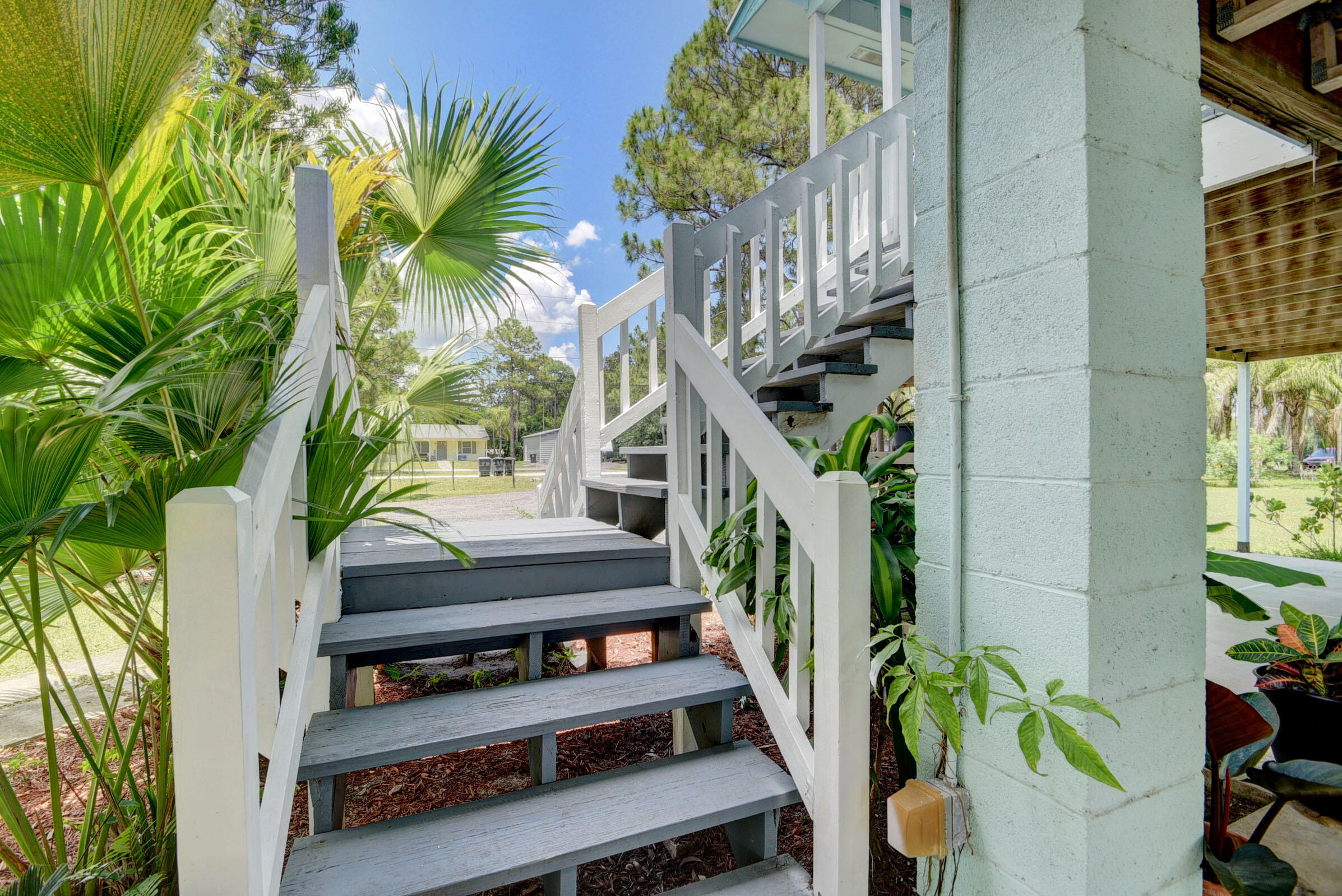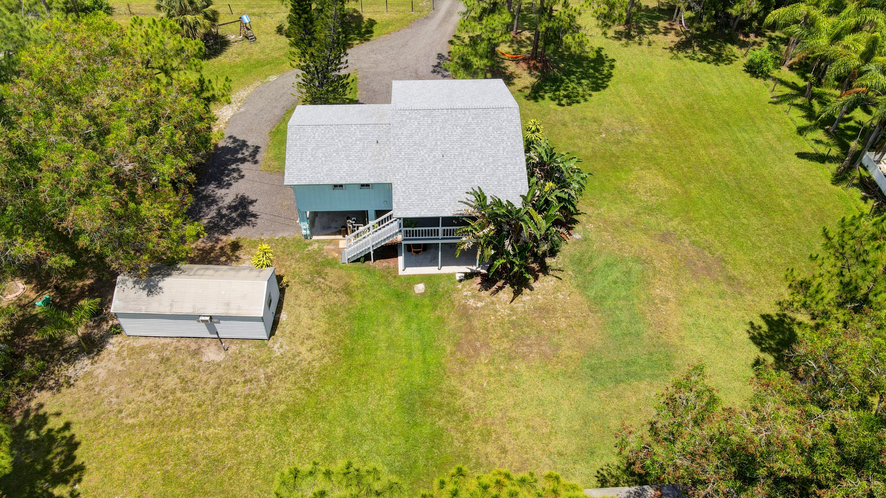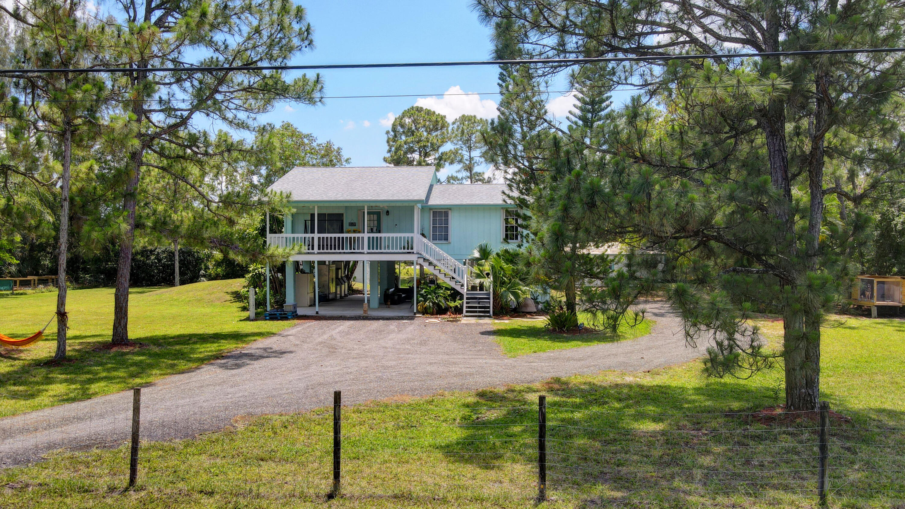 This diamond 2/2 built on stilts has unlimited possibilities and sits on 1.29 acres. Plenty of room for a pool or storage for your boat or RV. Natural light glistens throughout. The two balconies enhance and add to the homes charm. The roof was replaced in 2018, all windows and doors are hurricane protected, water is filtered thru a Puronics water filter (new), 2 shed are present; 1 could be your he/she shed, Appliances are stainless steel, Additionally there is a Pur-O- Max water filter in the kitchen,. There is an agreement in place for FP&L to bury the electrical lines at NO cost to home owner.