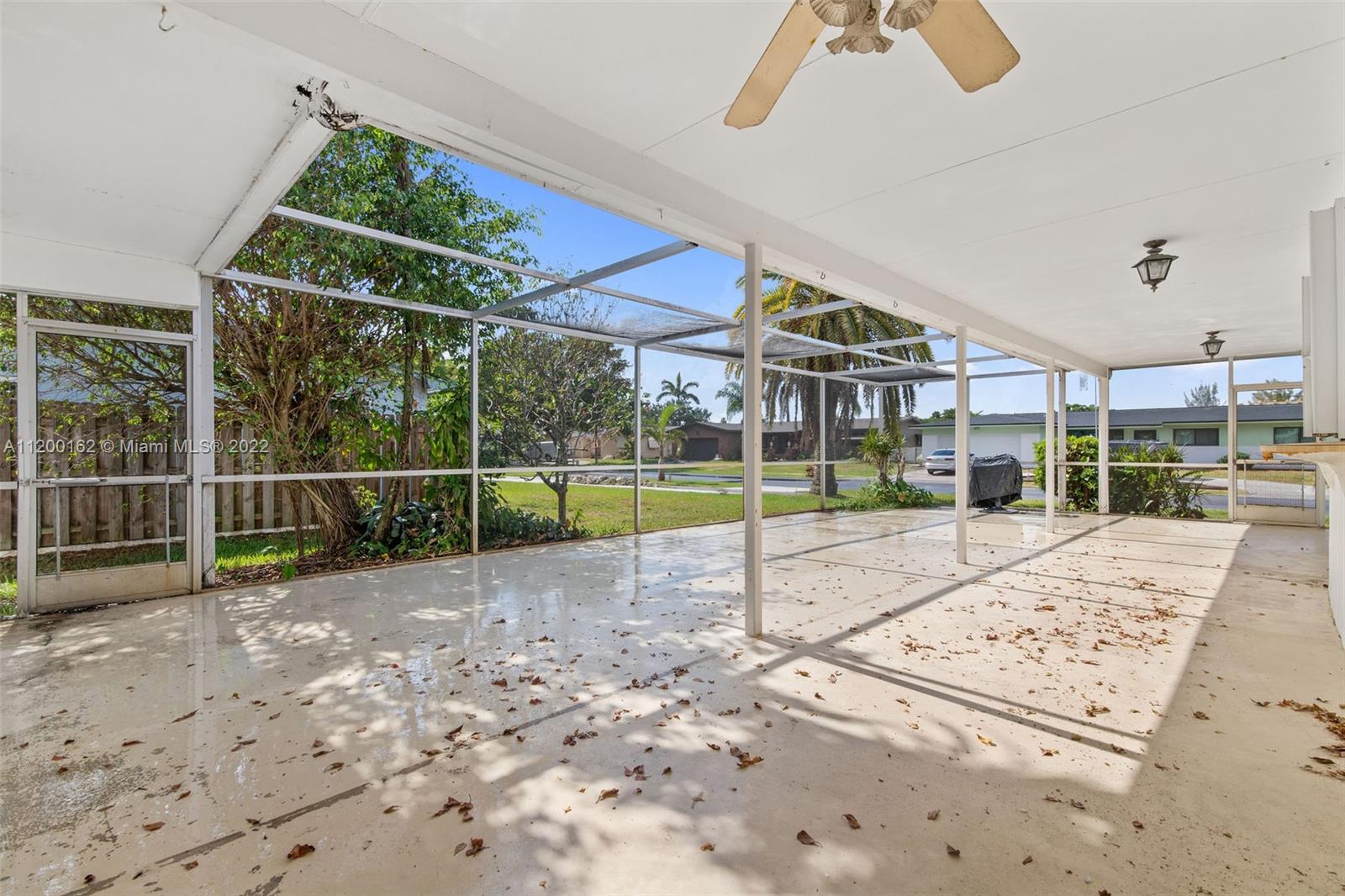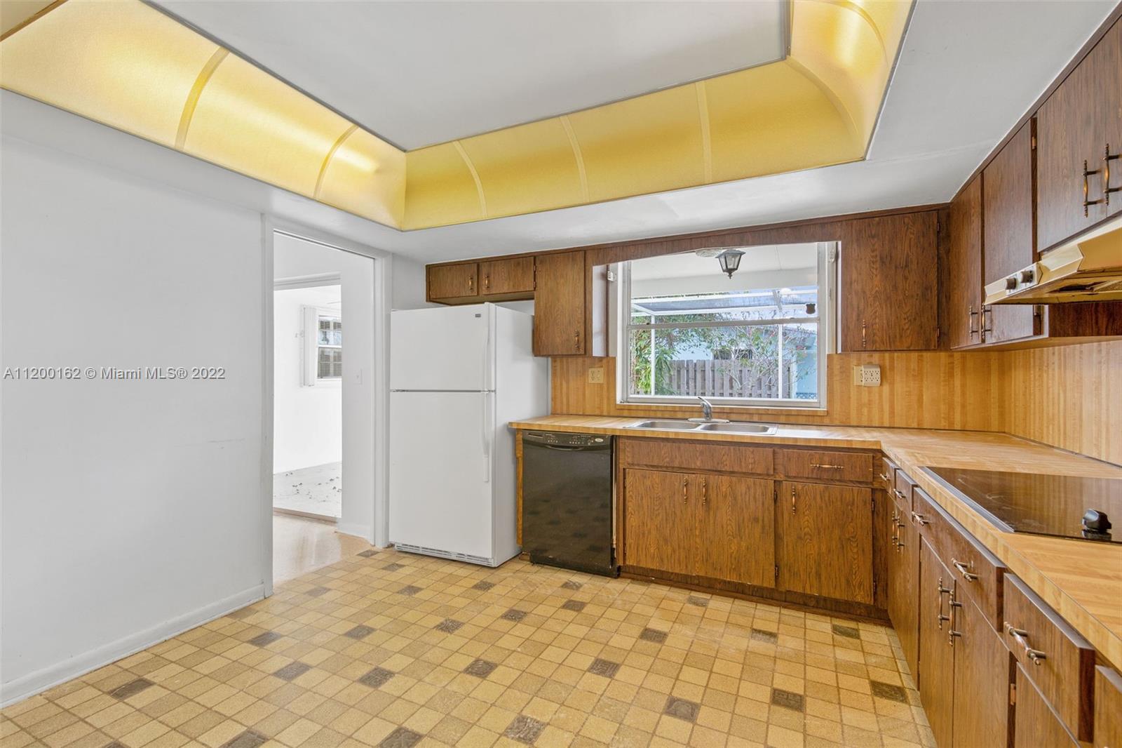 Charming 3 Bed/ 2 Bath house with additional 4th Bedroom used as a Family Room. 2 Car Oversized Garage with Laundry. All of the rooms are very Spacious! Formal Living Room and Dining Room off of the Large Kitchen. Beautiful Terrazzo floors throughout. Lots of Storage Closets. Needs some TLC. Accordion Hurricane Shutters! Corner Lot approx 8,800 sqft. The back patio is great for entertaining! No HOA fees! Easy to show!