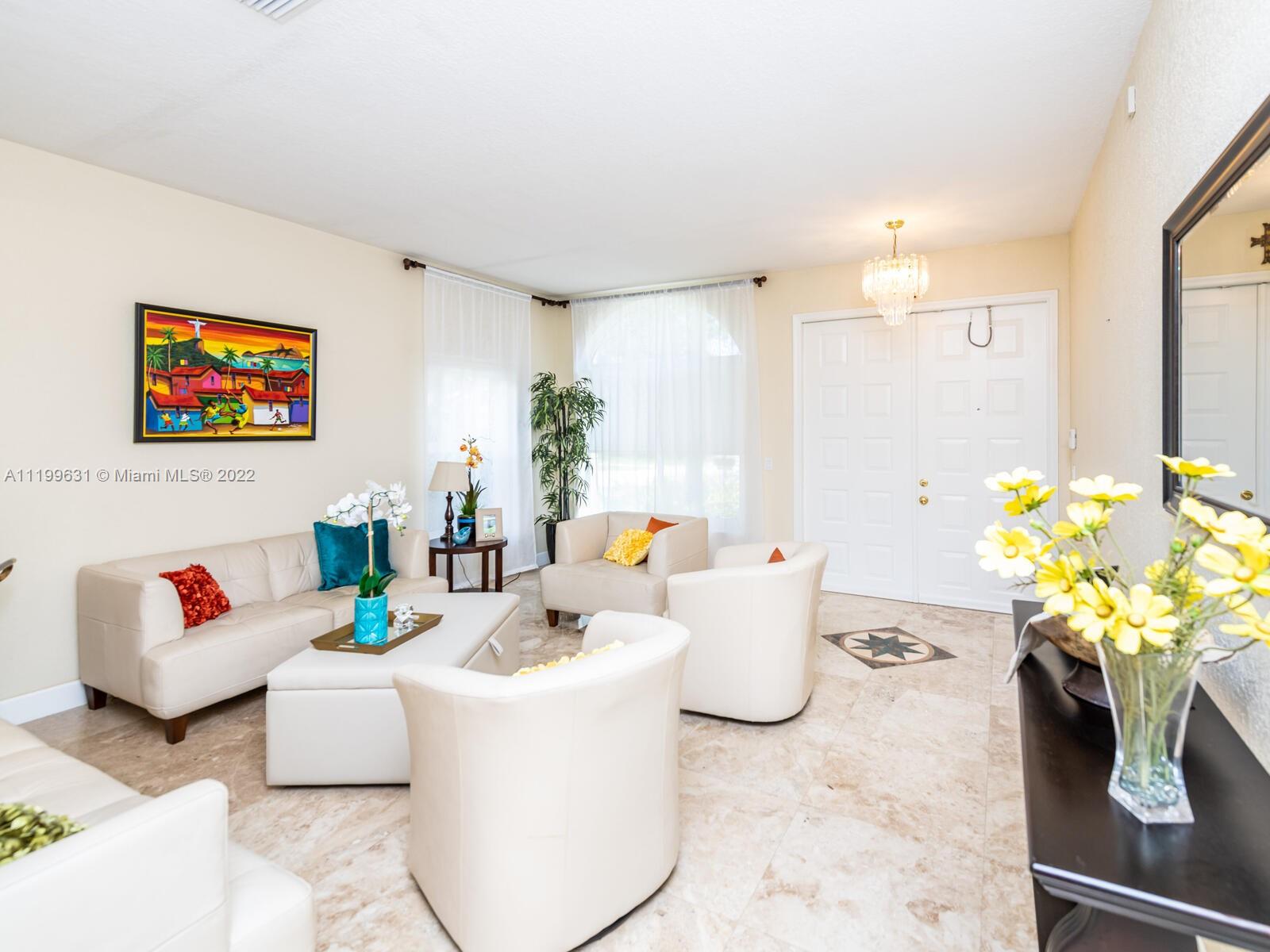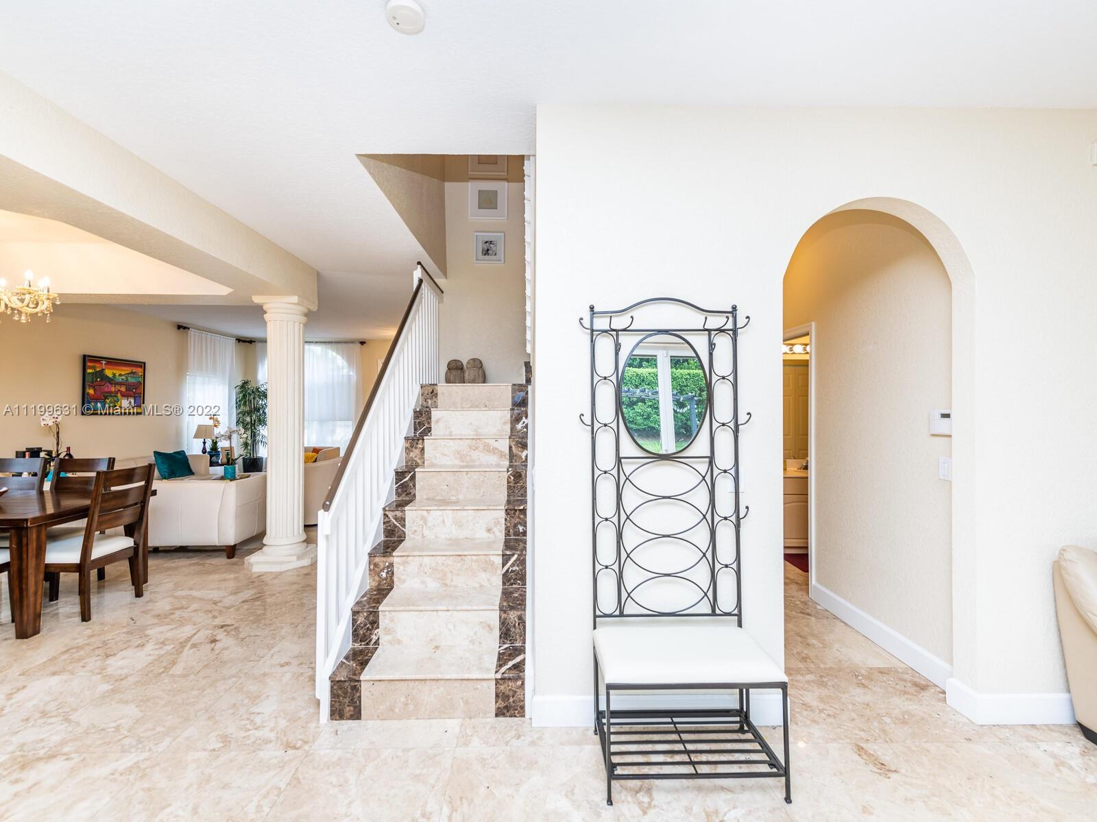 Spacious 2 story home in the desirable 24 hr gated community of Emerald Estates. This 4 bedroom/2.5 bathrooms features beautiful marble flooring downstairs, hurricane impact windows and doors throughout the house, newer air conditioner & hot water heater, kitchen has granite counter tiles w/stainless steel appliances. 2 car garage. Convenient to shopping, restaurants, and major highways. HOA fees include maintenance of lawn, tree trimming, fertilization, community pool, fitness center, kid's play area, basic cable & wifi. A+ Rated Schools.