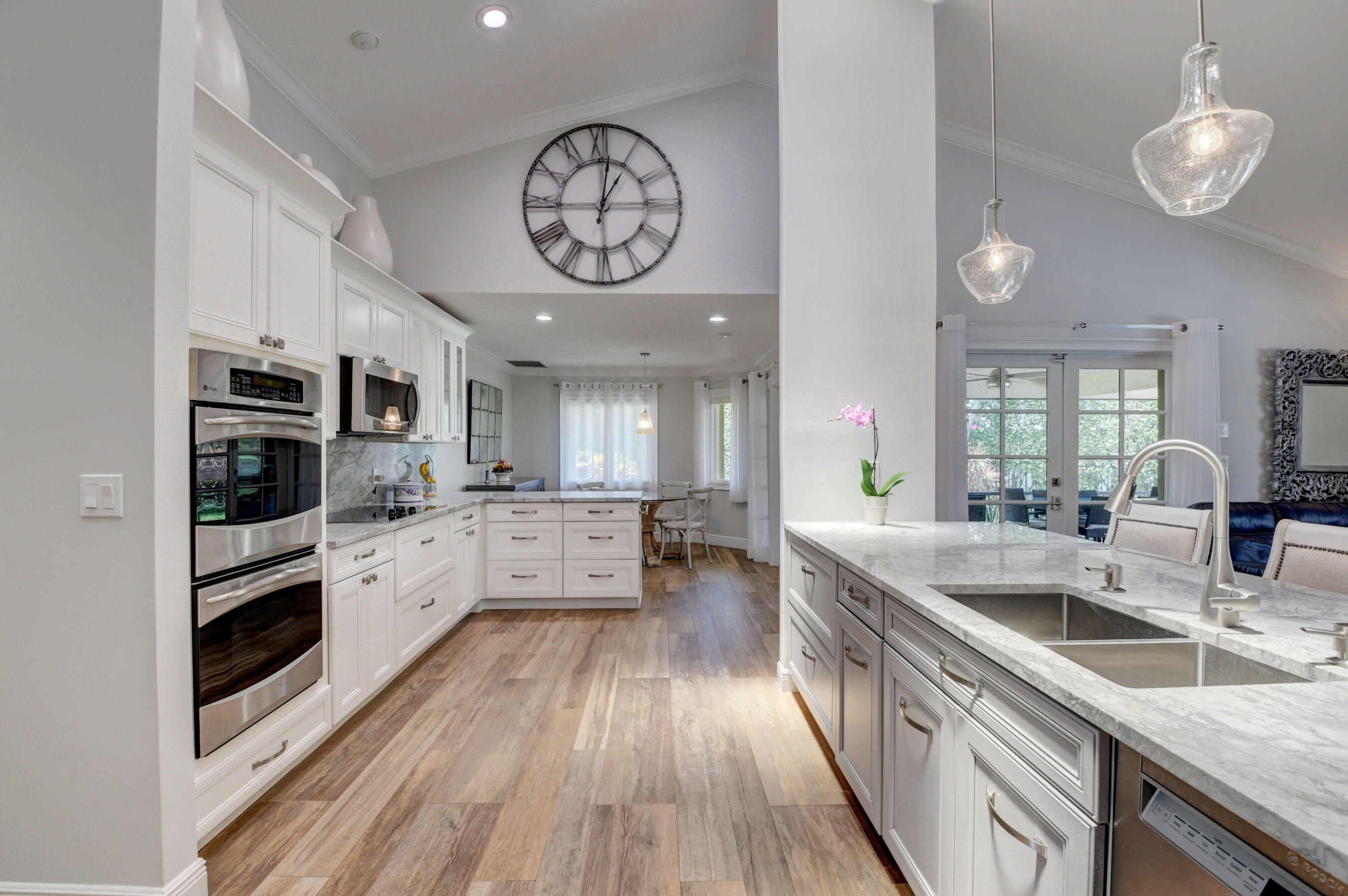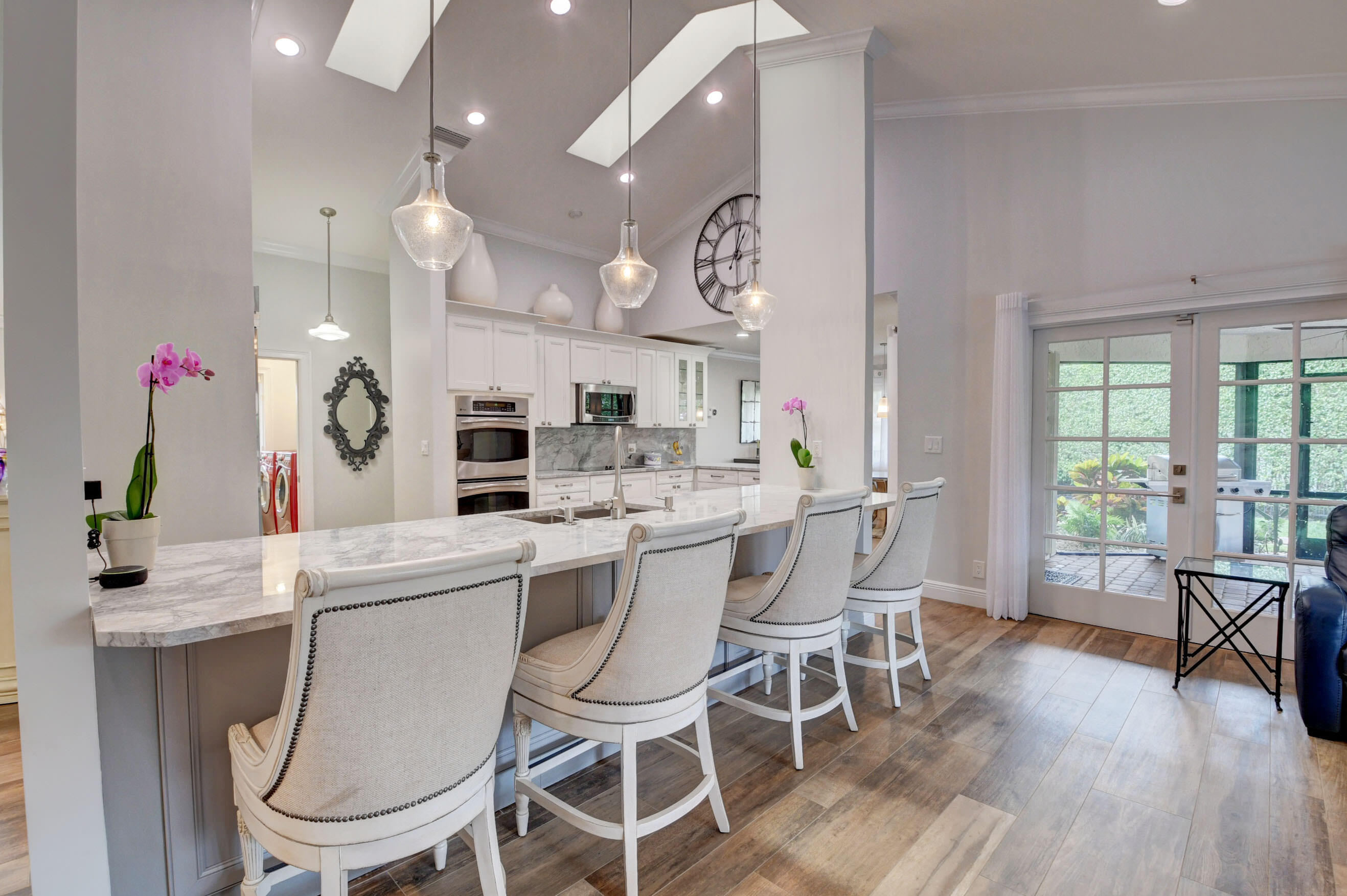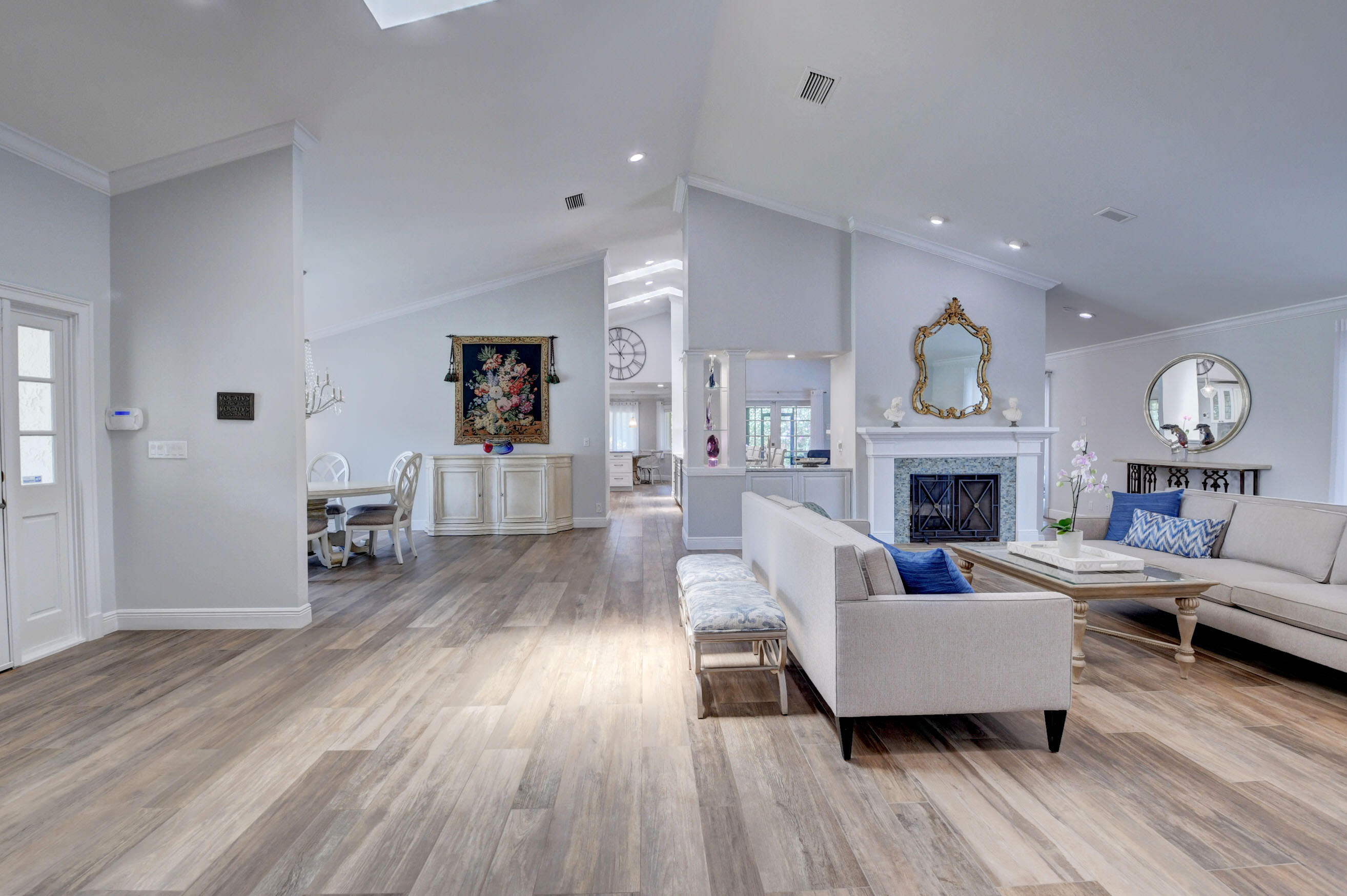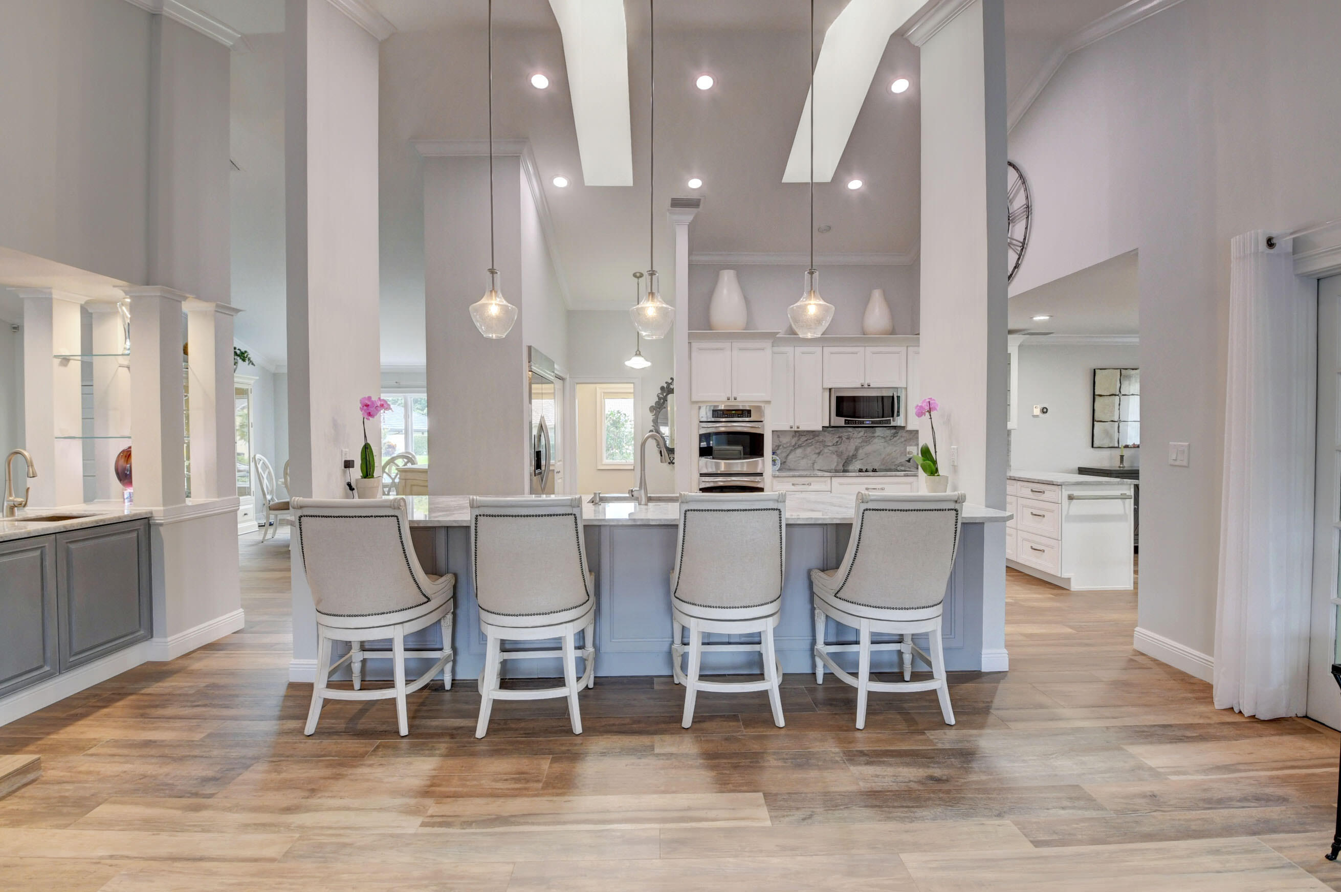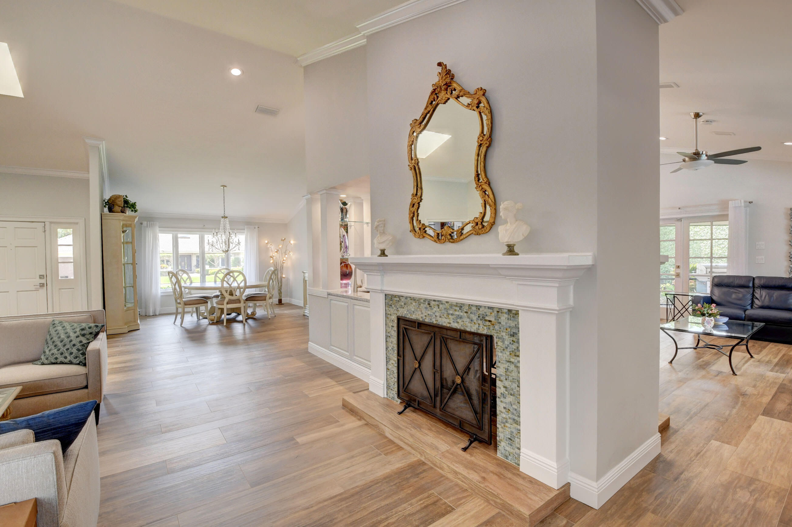 EXCLUSIVE WOODFIELD HUNT CLUB 4 BEDROOM , 3.5 BATH HOME . DESIGNER WHITE AND GREY OPEN KITCHEN. ALL STAINLESS STEEL APPLIANCES. HUGE CENTER ISLAND WITH QUARTZITE COUNTERTOPS AND GORGEOUS BACKSPLASH. ITALIAN PORCELAIN WOOD PLANK STYLE FLOORS THROUGHOUT. THE PRIMARY BATH COMPLETELY REMODELED WITH HIS AND HER BATHROOMS.MASTER BEDROOM HAS 2 WALK IN CLOSETS. ALL BEDROOMS HAVE ENSUITE BATHROOMS. 4TH BEDROOM COULD ALSO SERVE AS AN OFFICE OR PLAYROOM. DUAL WOOD BURNING FIREPLACES IN FAMILY ROOM AND LIVING ROOM. NEWER AC. COMPLETE OUTDOOR KITCHEN WITH NEWLY LANDSCAPED OVERSIZED BACKYARD.. LARGE POOL AND SPA AND ROOM FOR SWING SET. EXTERIOR NEWLY PAINTED. COMPLETE ACCORDIAN HURRICANE SHUTTERS.