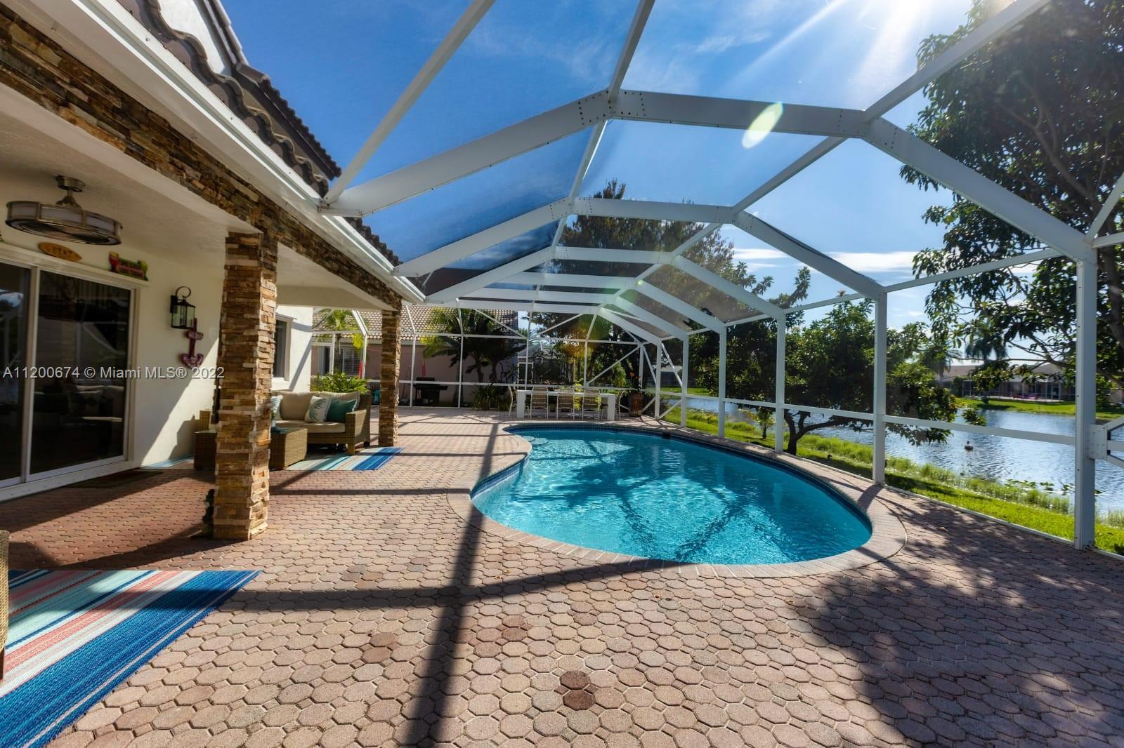 Turn Key Waterfront/Pool Estate in Gated Chapel Trail!! New Barrel Tile Roof, New Appliances, New Washer & Dryer, New updated Kitchen, 5BD, 3BA,3 GAR, POOL, SPA, BIDETT, Newer A/C, Thermador Sub-zero fridge, wine fridge, Hydro Quad Commercial Water Processor, and Alarm. Spacious Vaulted Ceilings, Cast Iron Chandeliers, Elegant Marble & Wood Flooring. Handcrafted Cypress Entrance doors opens to scenic water views. Mediterranean staircase, Surround Sound. Enjoy Resort style Master Suite. Jacuzzi tub, Spa style shower. Jack & Jill BTH Dual Sink. Saltwater Pool W/ Solar Screen Enclosure, relax under the Lanai & Pick Mango & Avocado Trees in the yard. Walk to "A" Rated Schools. Walk 450-Acre Chapel Trail Preserve. Near renowned Memorial Hospital West, Pembroke Pines Mall & 10 Min to Miami.