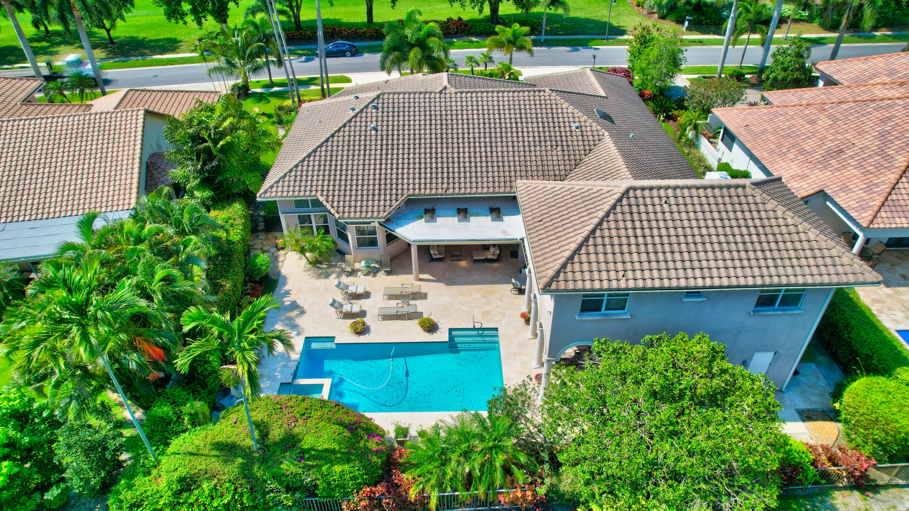 Amazing! Over 5000 square feet with 6 bedrooms overlooking the serene 2nd hole in the back and 1st hole in the front! Main floor has 4 bedrooms (one used as an office)six bathrooms and two family rooms. Another two bedrooms & bathroom on second floor. NEW Impact windows & 14 foot high ceilings. Split bedrooms. Additional room off of laundry for exercise. Primary boasts two bathrooms and large custom closets. Stunning library. Perfect home for entertaining & easy living. Gorgeous huge backyard -NEW patio, and driveway, covered & open patio & grassy yard! Bocaire CC mandatory membership - 239 homes boasts resort style amenities, championship golf course, tennis, fitness, high end dining, small friendly community, A rated schools, close to beach, restaurants, shopping, houses of worship.