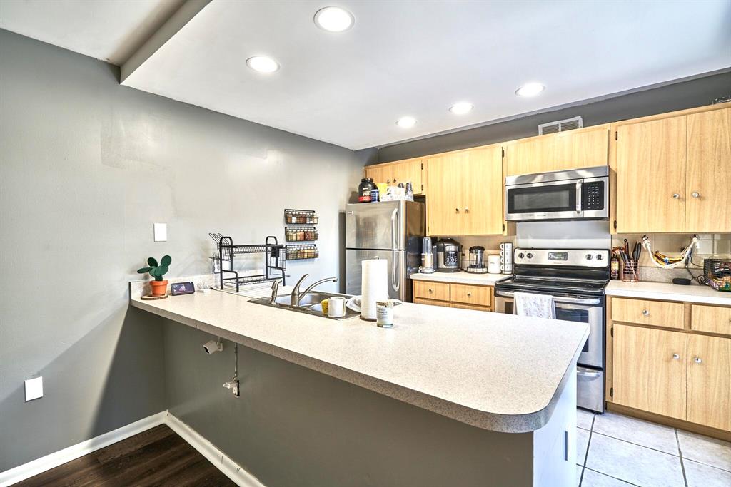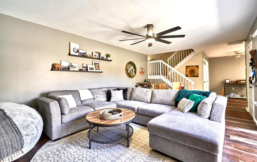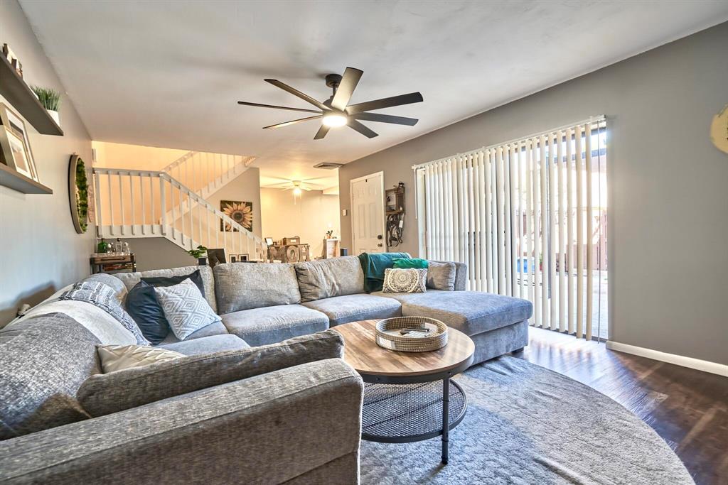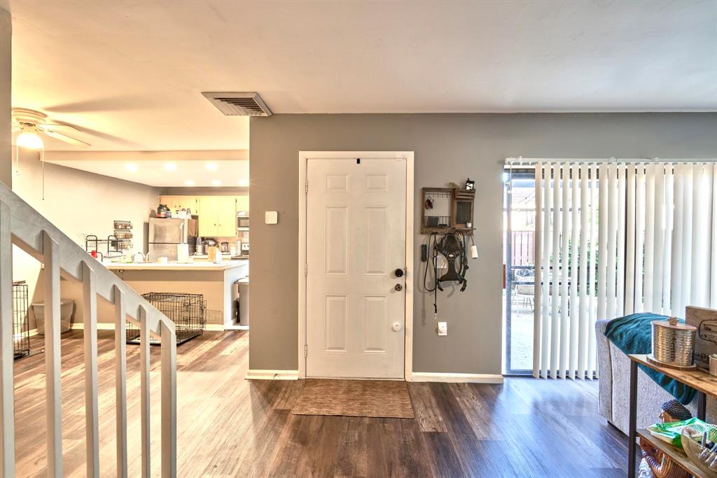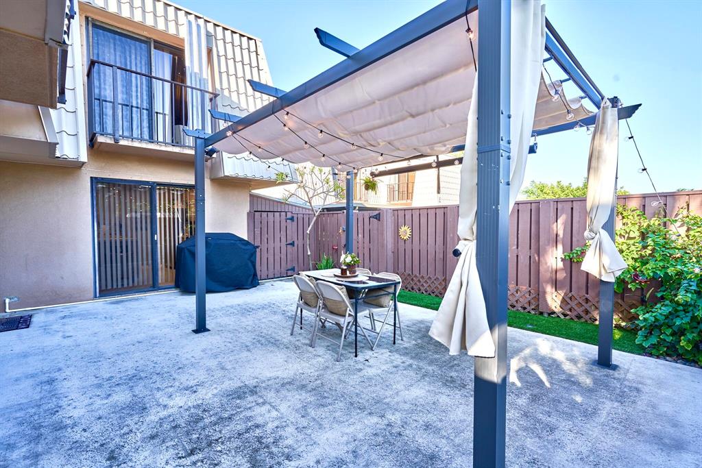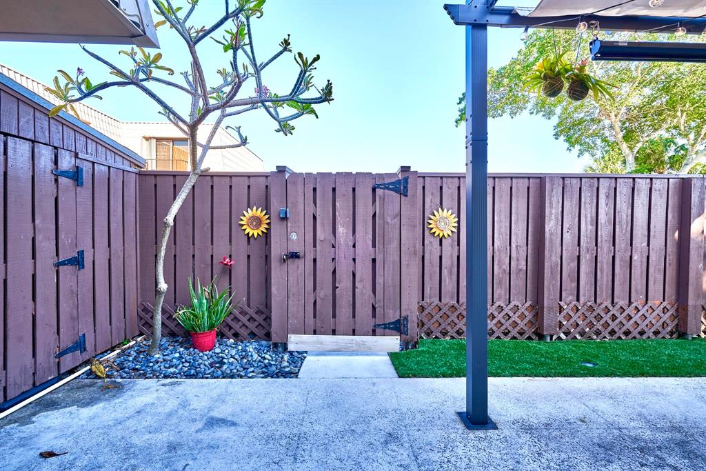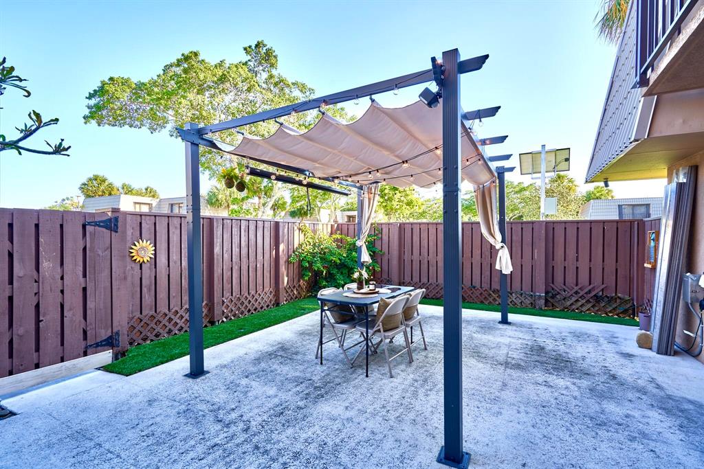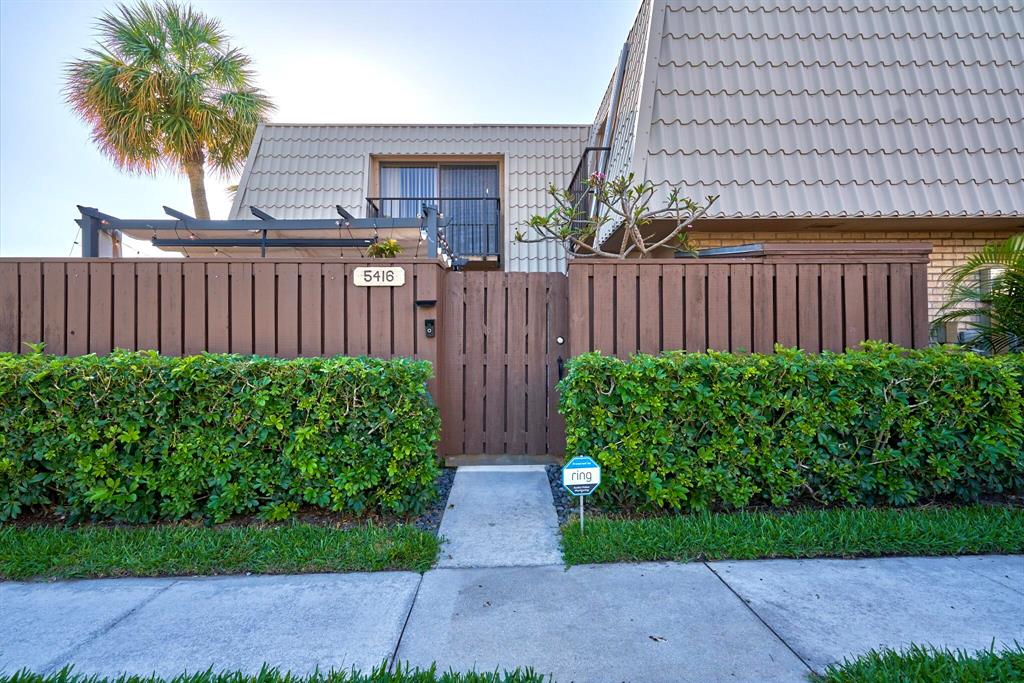 A well-maintained and loved townhome in a quiet neighborhood of West Palm Beach, secluded but close to restaurants and shops. Townhome is located near a large lake and fountain with a beautiful walking path. Gated oversized courtyard with Pergola and turf, perfect for privacy and entertaining. Two large sets of sliding doors bring in lots of natural light into the living room and kitchen. New flooring in living spaces and new painting throughout. Half bathroom downstairs along with washer and dryer. SS Appliances and added recessed lighting and brand new light fixtures. 2 Large Split bedrooms upstairs with their own full bathrooms and balconies. Newer roof, painted fence, indoor/outdoor storage. Pet friendly and wonderful starter home!
