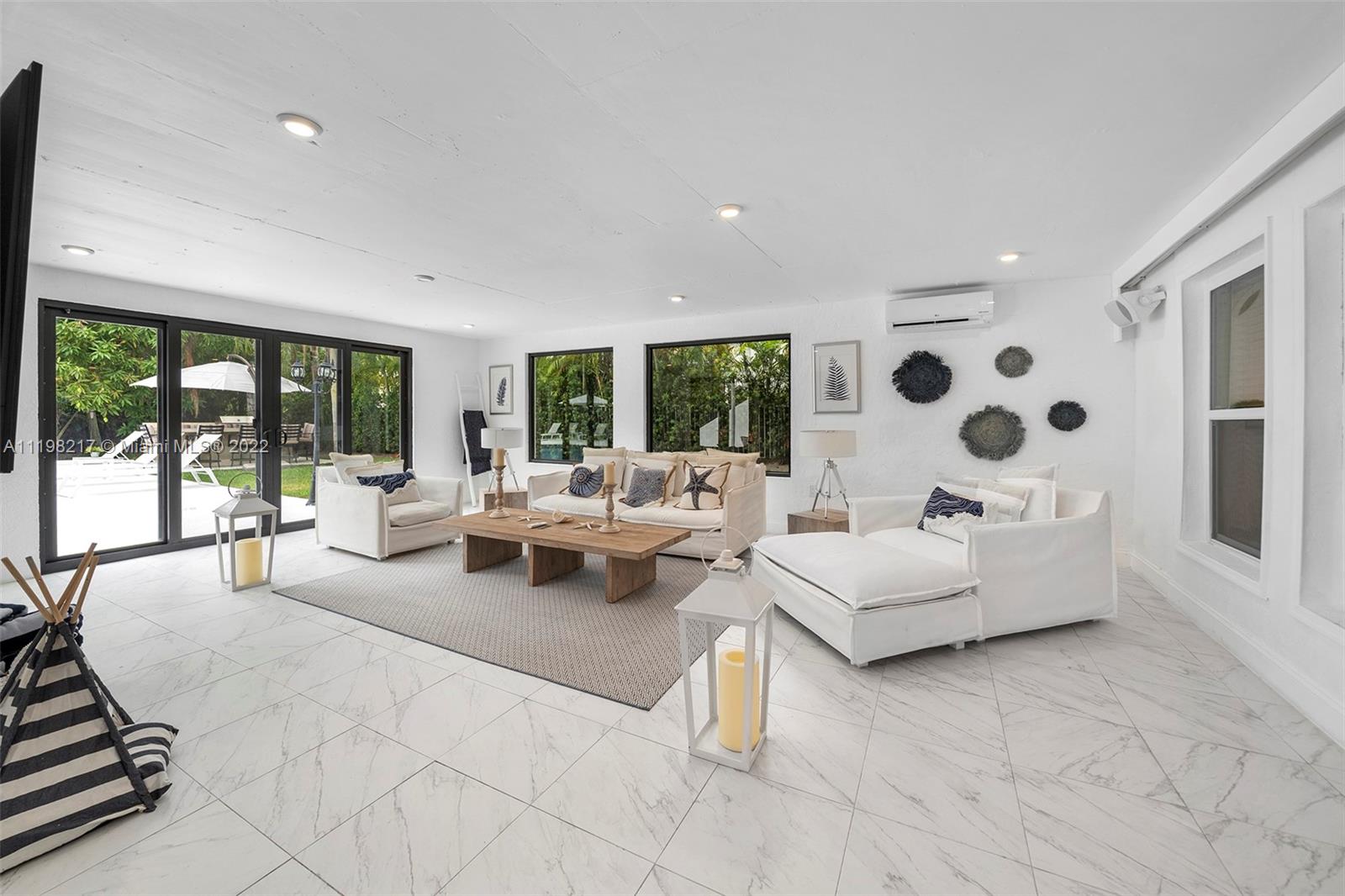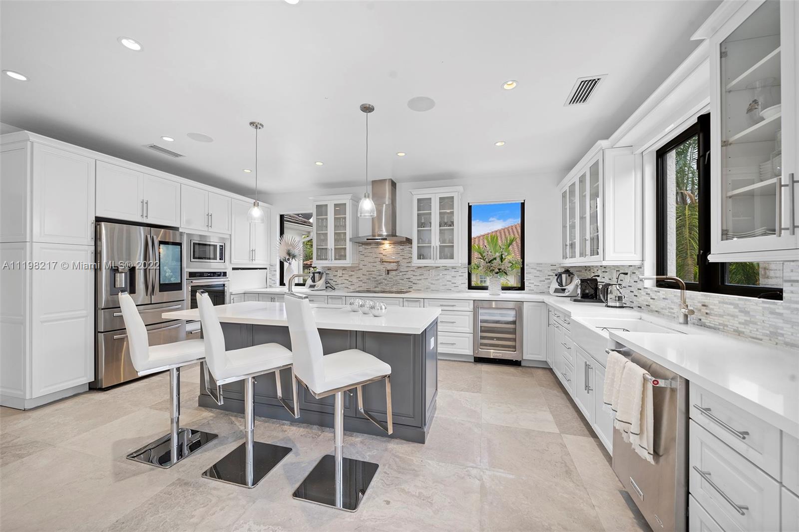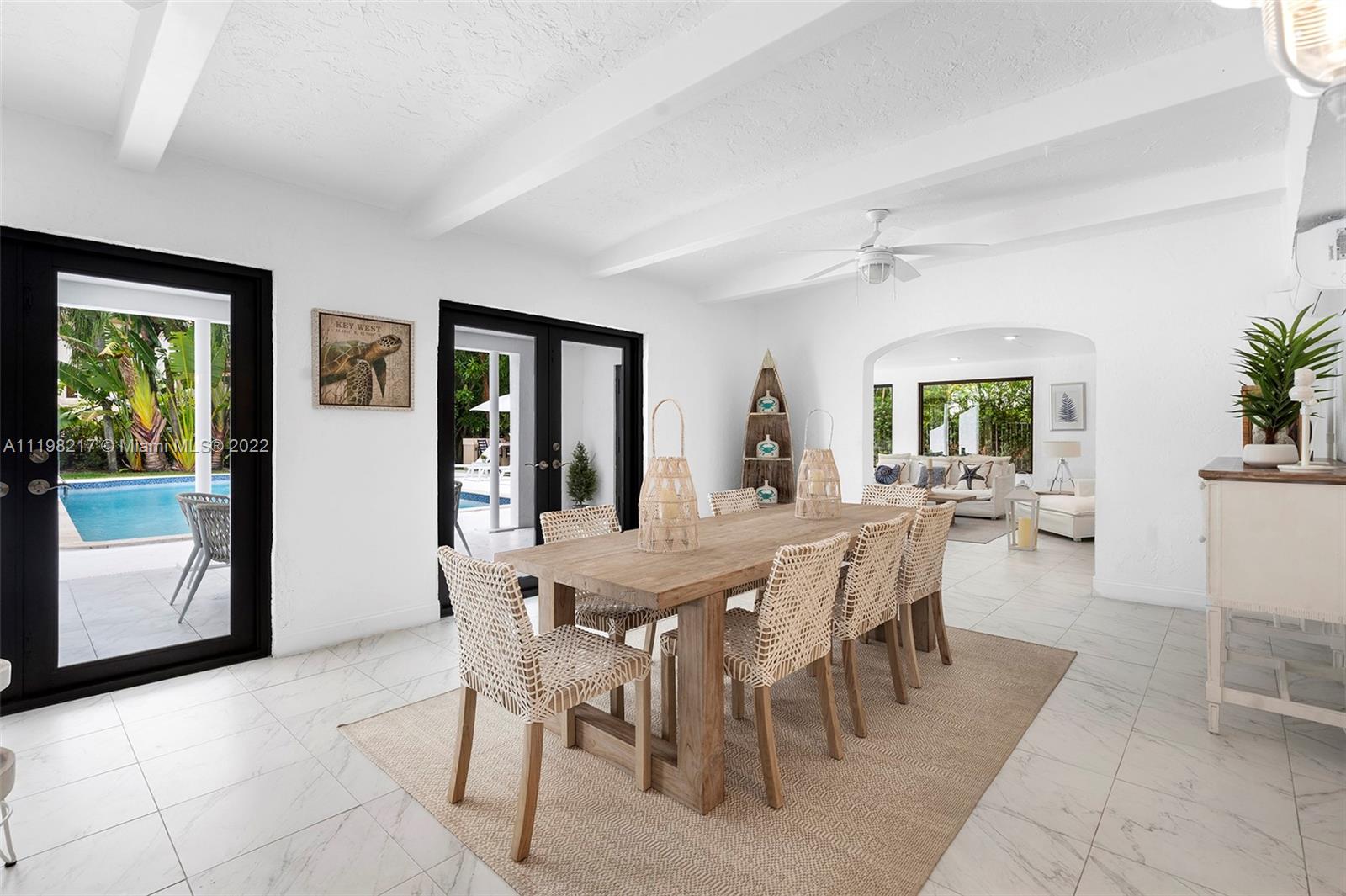 Contemporary 5 bedroom, 4/1 bath home in the exclusive Islands of Cocoplum. Expansive living areas overlooking the pool and outdoor terrace. Beautiful, large kitchen opens to the family room as well as formal dining room. Primary suite features a private balcony, 2 large closets, oversize bathroom with double shower, 2 vanities and free – standing tub. Two additional en-suite bedroom and family room complete the upstairs. Gorgeous pool area with covered terrac, expansive space for entertaining and 2 full cabana baths. Impact resistant doors, elevator, electrical, plumbing, A/Cs and roof updated in 2017.