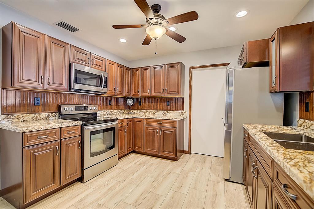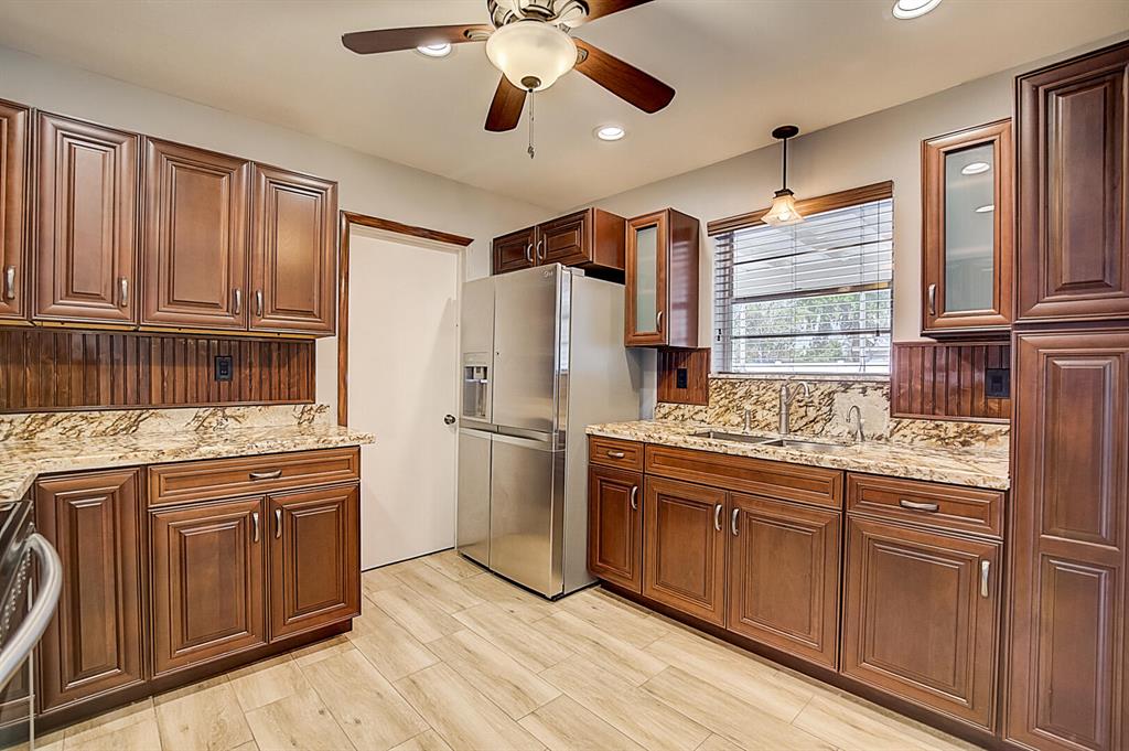 This Miramar one-story home offers granite countertops.