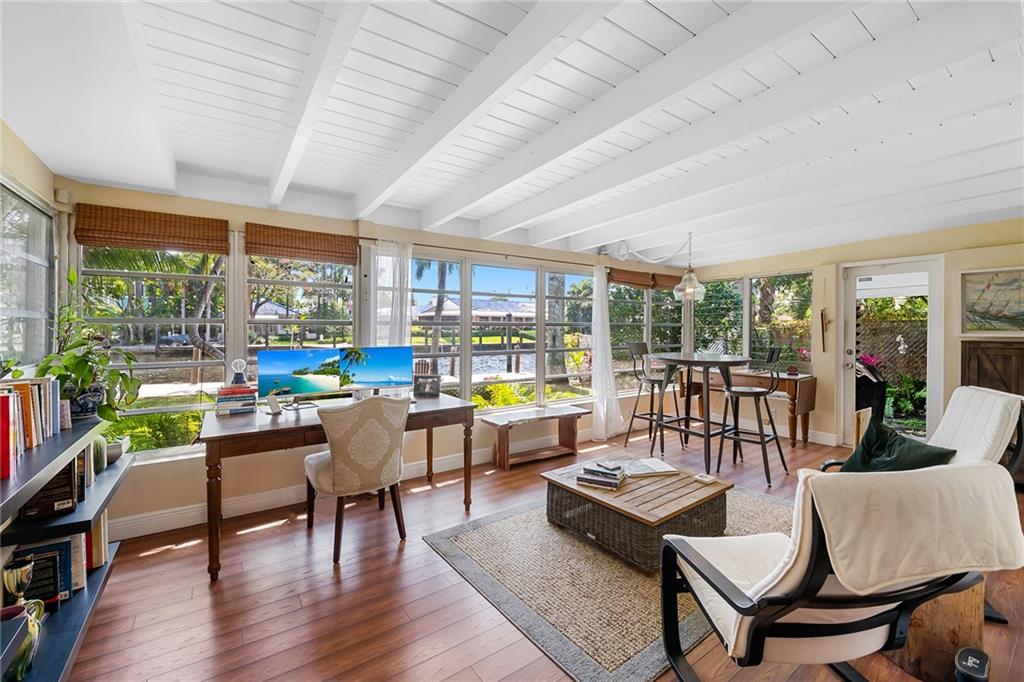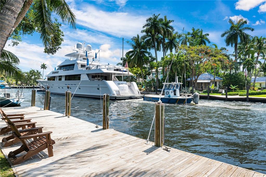 Nestled on a beautiful portion of the New River with views East, South and winding down the river to the north is this unique property.Huge 12,000+ sf lot that is almost 250 ft in depth.Charming 2 bedroom 1 bath home with views of the river from most rooms.Incredibly charming with soaring wood beam ceilings,updated kitchen with stone counters,wood cabinetry and stainless appliances.The home has beautiful flooring and updated marble bathroom.There is a secluded one bedroom guest cottage which also boasts tons of charm and character.Located on a very charming tree lined street. 54' of Deep water dockage and plenty of room for a pool.Eight blocks to Las Olas shops and restaurants.You will never grow tired of the boat parade every day.A truly rare opportunity for air bb or to make it your own.